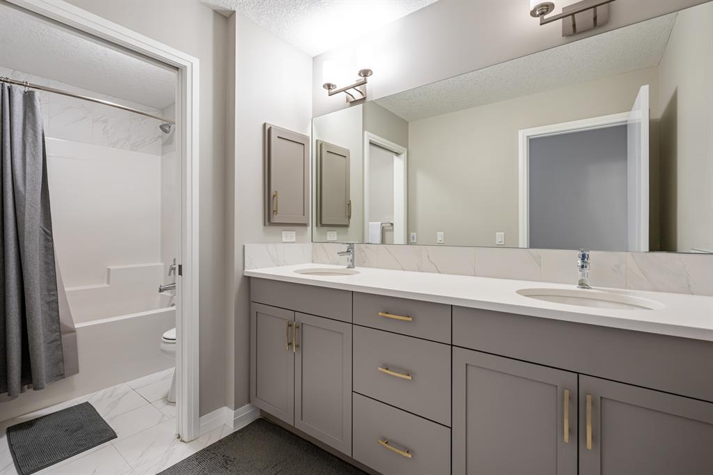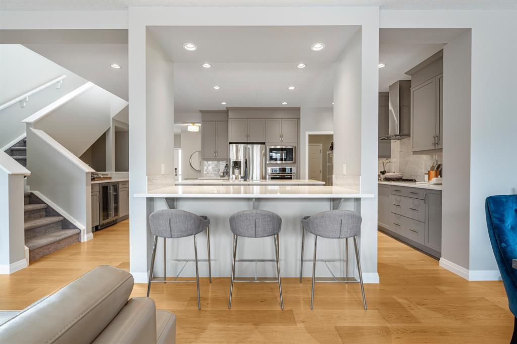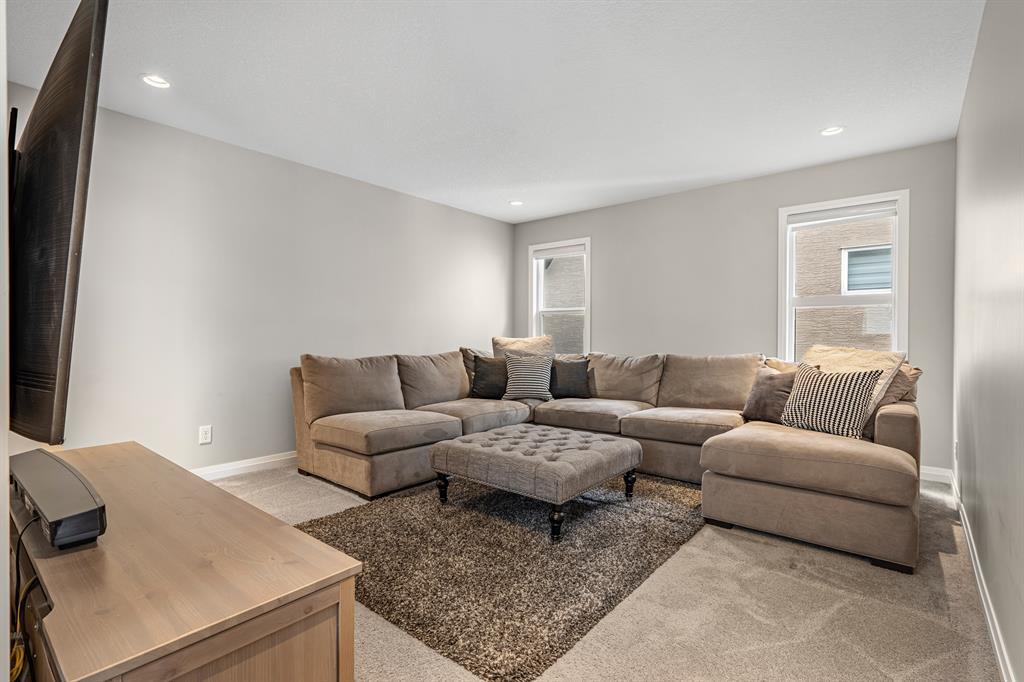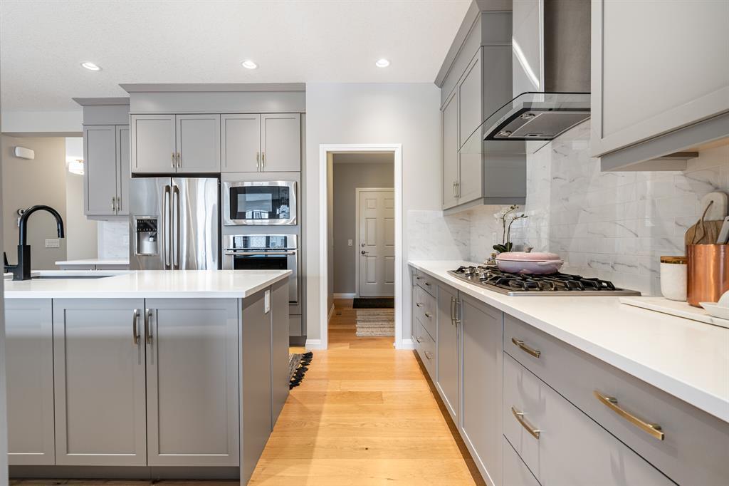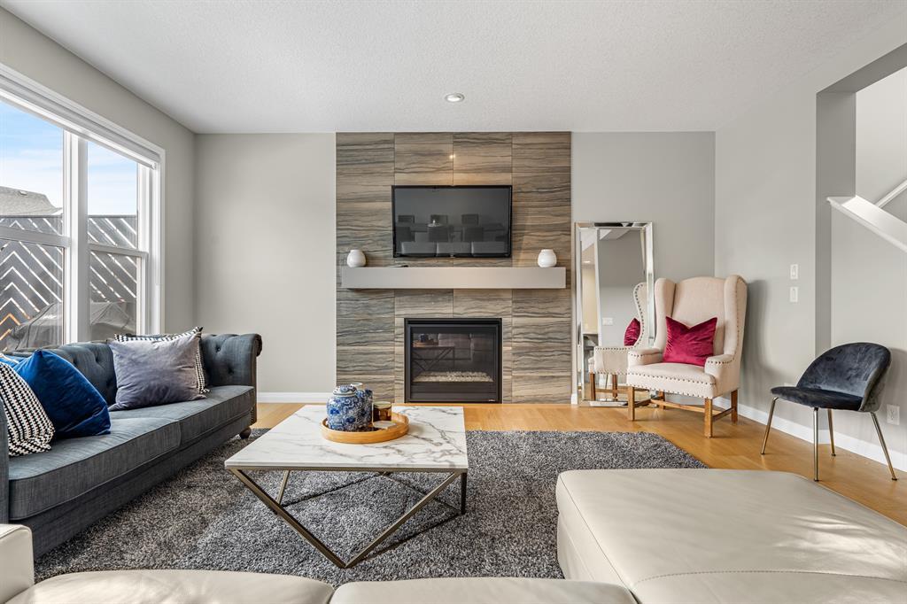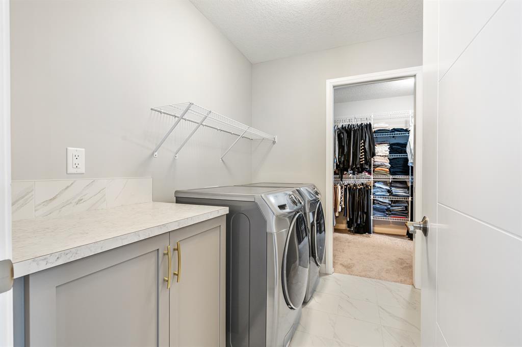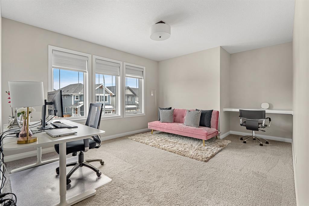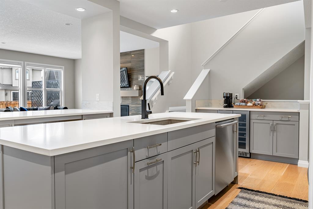 Welcome to 10 Masters Place SE, an immaculate Jayman Built Lauren model home, offering 3 bedrooms and 2.5 bathrooms in the beloved community of Mahogany. Get ready to spend your summer by the lake once you call this one home! Offering 2,637 square feet, you are sure to be impressed by the luxury and elegance found throughout this well designed home. The kitchen is truly the heart of this home, featuring dual islands, built-in appliances, and a dry bar/beverage centre, all perfect for entertaining. High-end finishings include quartz countertops, designer backsplash tile, silgranit sink and ceiling height cabinets. The dining and living room areas are spacious and bright, with the living area featuring a gas fireplace with floor to ceiling tile as the focal point of the room. Engineered hardwood floors and 9 foot ceilings flow throughout the main floor. This level also includes a 2 piece bathroom tucked away from the living space, a large entryway, and walk-through mudroom and pantry. Upstairs, the primary suite is truly a 5 star retreat. The ensuite features separate his and hers vanities and walk-in closets, meaning no more fighting over counter or closet space! There is also a separate designated makeup vanity. The larger walk-in closet connects to the laundry room for the ultimate convenience. Enjoy the spa-like feel of the bathroom while you soak away the stress of the week in your freestanding tub. The two secondary bedrooms are spacious and located at the front of the upper level, sharing a 5 piece bathroom. The central bonus room is the perfect spot to gather for family movie night! Outside, you will appreciate the low maintenance landscaping so you have more time to savor the warm evenings on your back deck and backyard. Be sure to check out the 3-D tour for the full experience! Mahogany Lake offers true recreation all year round, including kayaking and paddle boarding in the summer, and skating and ice hockey in the winter. Come and be a part of Cal gary’s best lake community in this perfect family home! Close to shopping, restaurants, schools. (id:22211)