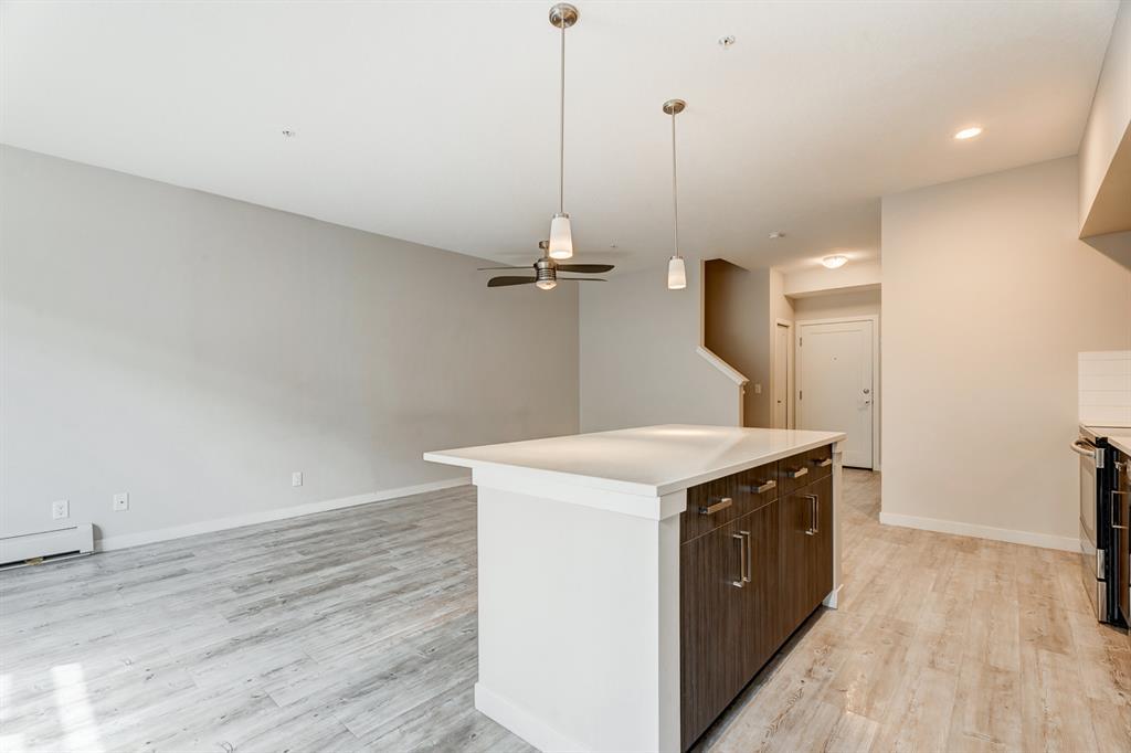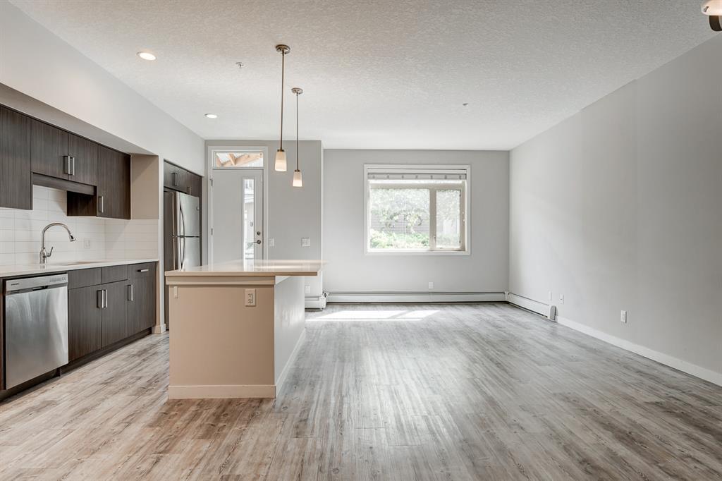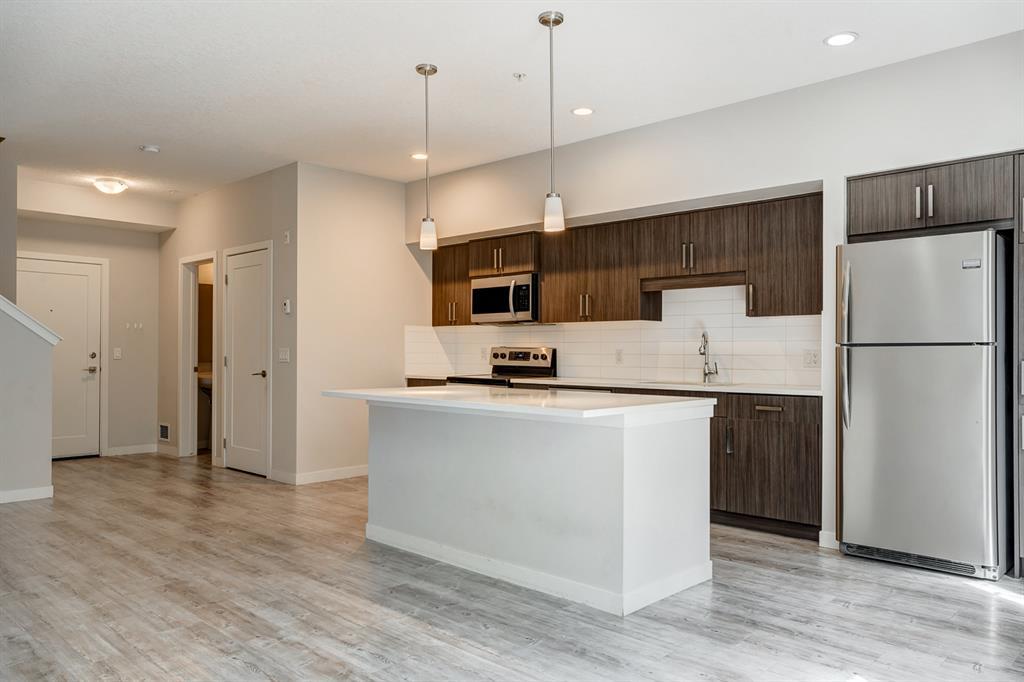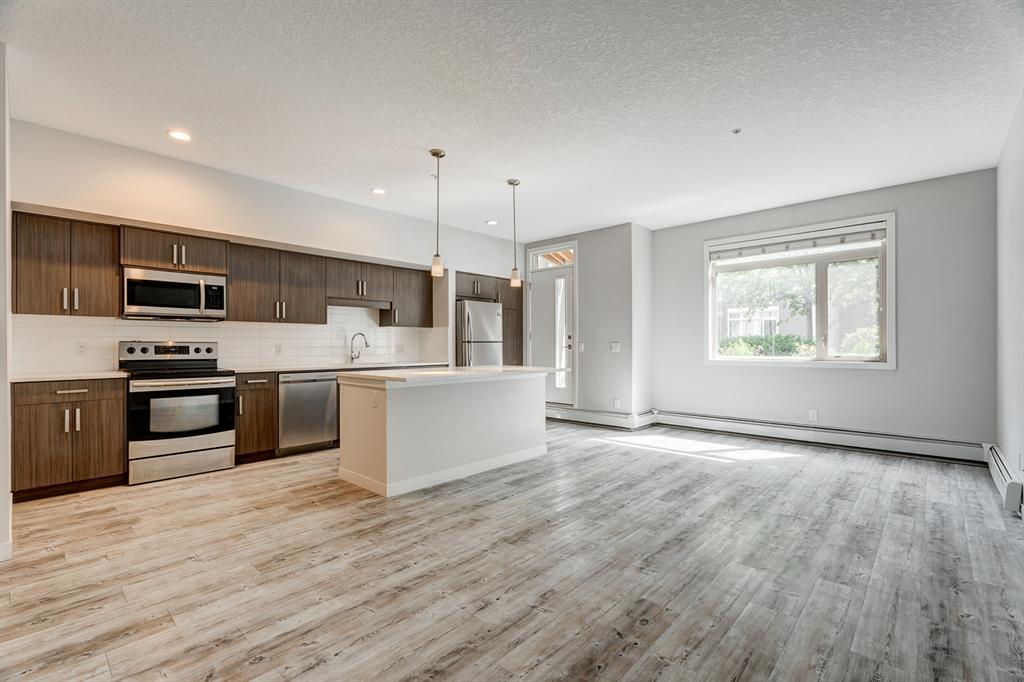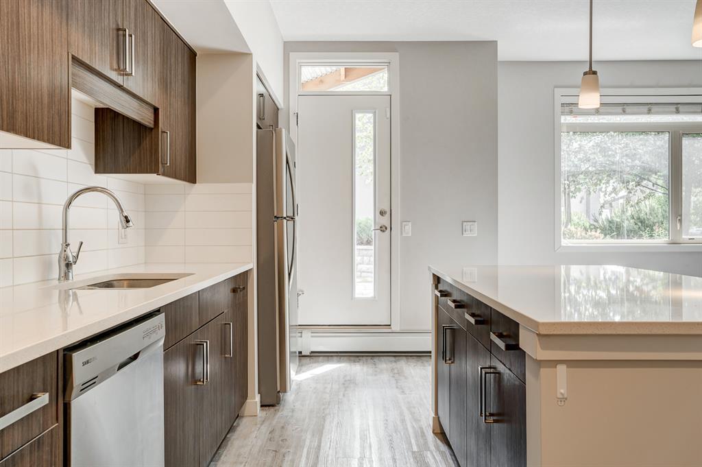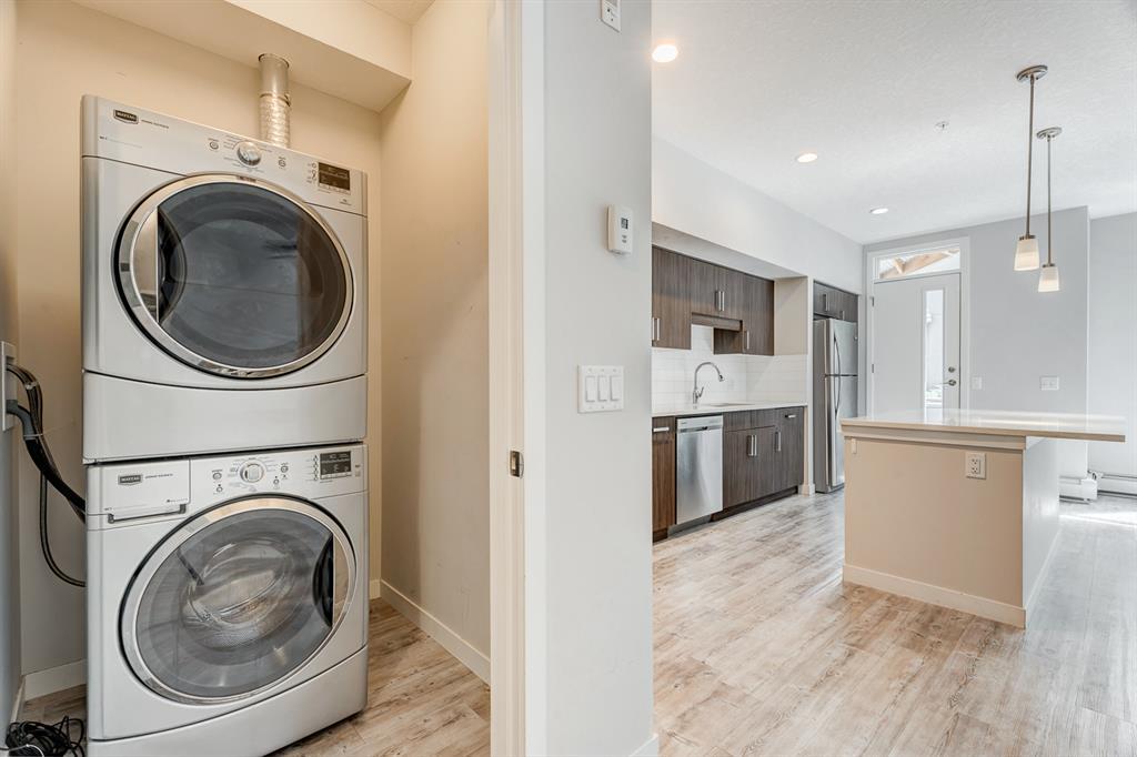 LOCATION-LOCATION-LOCATION!!! | MODERN & CHIC 1122 SQ FT 2-STOREY CONDO | 2 BEDS + 2.5 BATHS + A FLEX ROOM | VERY DESIRED OPEN LAYOUT | NEUTRAL WARM PALETTE | TWO TITLED & HEATED PARKING STALLS + BIKE STORAGE | PERFECT FOR 1st TIME HOME BUYER, DOWNSIZER, OR INVESTOR--GREAT RENTAL!** | Beautiful FRESHLY PAINTED metropolitan 2-STOREY condo unit located in the heart of the TRENDY & UPSCALE location of WEST SPRINGS. Spacious and stylish with 9’ ceiling height on the main, chic high-end finishes + large windows offering tons of NATURAL sunlight that FLOODS your generously sized ENTERTAINMENT zone. The spacious GENEROUS SIZED kitchen boasts a MODERN color palette, white QUARTZ countertops, an OVERSIZED ISLAND, soft-close cabinetry + beautiful MODERN LAMINATE! The welcoming dining area can easily accommodate seating for six and is ideal for entertaining as it connects with ease to the LARGE living area, and private patio area. A convenient laundry room with a FULL stackable washer/dryer, and a 2-piece powder room complete the main floor. The upper level offers 2 good sized bedrooms, 2 full spa-like bathrooms with QUARTZ countertops, and an OPEN FLEX/bonus room area that could be used as an office/workout/storage area or even a small guest room as it could accommodate a small pullout/bunk bed. The primary bedroom accommodates good sized furniture & offers a large closet that connect you through to the ensuite. You'll be impressed by your SPA-LIKE ensuite featuring quartz countertops, plenty of counter and storage space, and a LARGE stand-alone glass shower. The second bedroom is also quite spacious & offers LARGE windows overlooking the WELL KEPT courtyard. Stepping out from the kitchen is your BEAUTIFULLY LANDSCAPED sunny patio area which connects to the OPEN courtyard - equipped with your own private gas hook up for year-round barbecuing. Your courtyard can be enjoyed for evening and weekend summer gatherings with friends & family. CONVENIENCE IS LITERALLY RIGHT O UTSIDE YOUR DOOR - a 15 min commute to downtown, 5 min drive to Aspen LRT, a short 3 minute walk to get your daily coffee at Starbucks, or enjoy a short evening stroll for a beautiful dinner & a glass of wine at the UPSCALE Vin Room or Mercato or take in the yummy food @ the popular Fergus & Bix Pub!! Your LOCATION is UNBEATABLE offering No Frills literally steps away, Shoppers Drug Mart, Co-op, fitness centres, doctors/dental offices, salons, daycares, and some of the BEST schools in the City! PLUS, a 5 minute drive to even more upscale shopping at the PRESTIGIOUS Aspen Landing! There are paved walking & bike paths right outside your patio door too! Enjoy the extra added convenience of being located 3 mins from Old Banff Coach Road that takes you to our stunning MAJESTIC ROCKY MOUNTAINS of Banff and Canmore! The VERY REASONABLE MONTHLY CONDO FEES of $506.00 per month INCLUDES EVERYTHING except for ELECTRICITY. This is a PET FRIENDLY building with board approval. You will LOVE this JEWEL of a condo!! (id:22211)