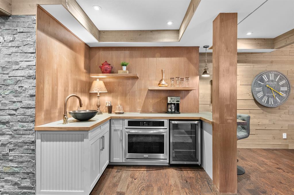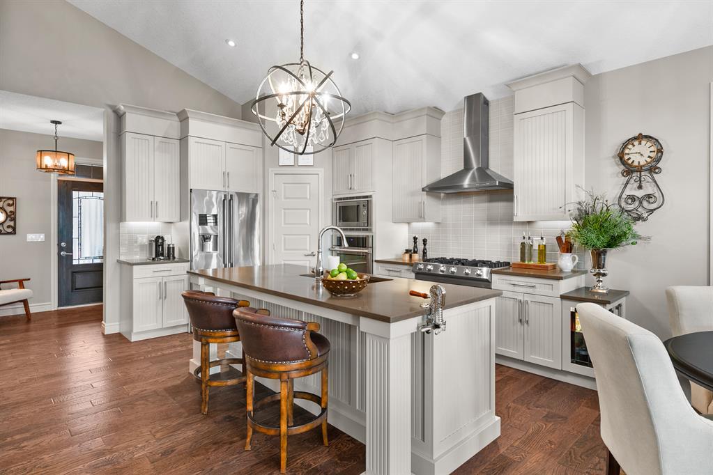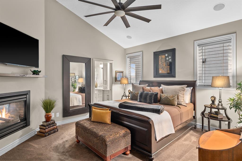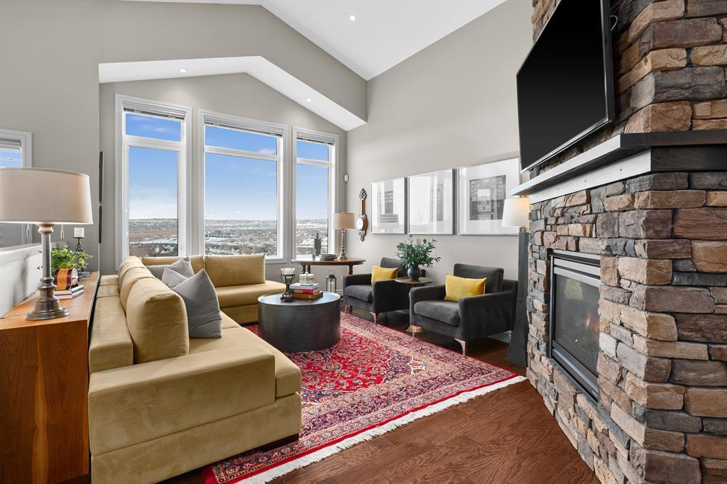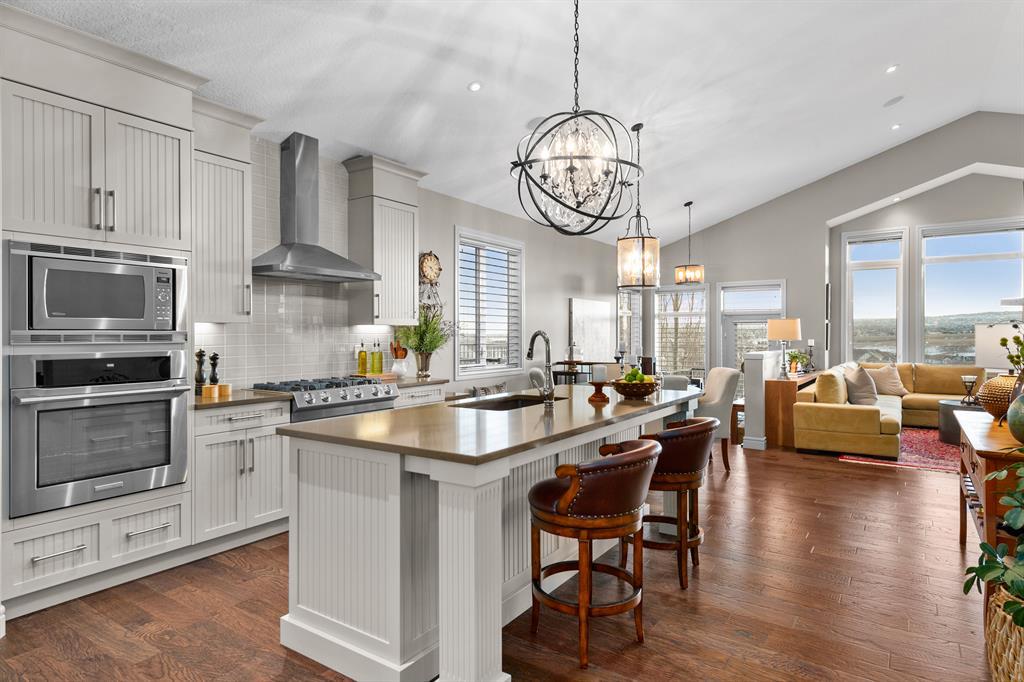 **OPEN HOUSE SATURDAY JUNE 17 FROM 1-4PM AND SUNDAY JUNE 18 FROM 12-3PM** Welcome to 100 Evansview Road! Located on the ridge looking out over the community of Evanston, this beautiful property offers the best of high-end bungalow living. Over 1,400 square feet of living space on the main floor and an additional 1,260 square feet of bright and open living space on the lower-level walkout (2,678 Sq.Ft total). As you enter the home you will notice the perfectly curated high-end finishes, like the engineered hardwood floors, custom shaker style cabinetry, quartz countertops and an upgraded Electrolux stainless steel appliance package featuring the beautiful 6 burner gas range. A stunning chefs kitchen overlooking the spacious open concept living and dining space, you will notice the high vaulted ceiling throughout. When you aren’t busy enjoying the views, you can sit and cozy up with the two-sided gas fireplace shared with your private primary retreat, complete with a spacious 5-piece ensuite. To complete the main floor, you have a functional den/office space at the front of the home, stunning private half bath and a functional laundry/mudroom off your attached double car garage. When you make your way to the lower level you will enjoy the perfect entertaining space, complete with two electric fireplaces, custom woodwork, full wet bar/kitchen complete with an additional oven and drinks fridge…and best of all a stunning wine wall with custom stonework to make for the perfect display. The large windows lead you out into the backyard which is professionally landscaped and lends itself to indoor/outdoor living and entertaining. The lower level features a full bathroom which is shared by two large bedrooms for guests or additional family members. Easy access to shopping, parks, playgrounds, schools, and a quick drive to the airport via Stoney Trail. This home is ideal for any stage of life and can truly grow with a family. Reach out to your favourite agent to book your priv ate tour today! (id:22211)