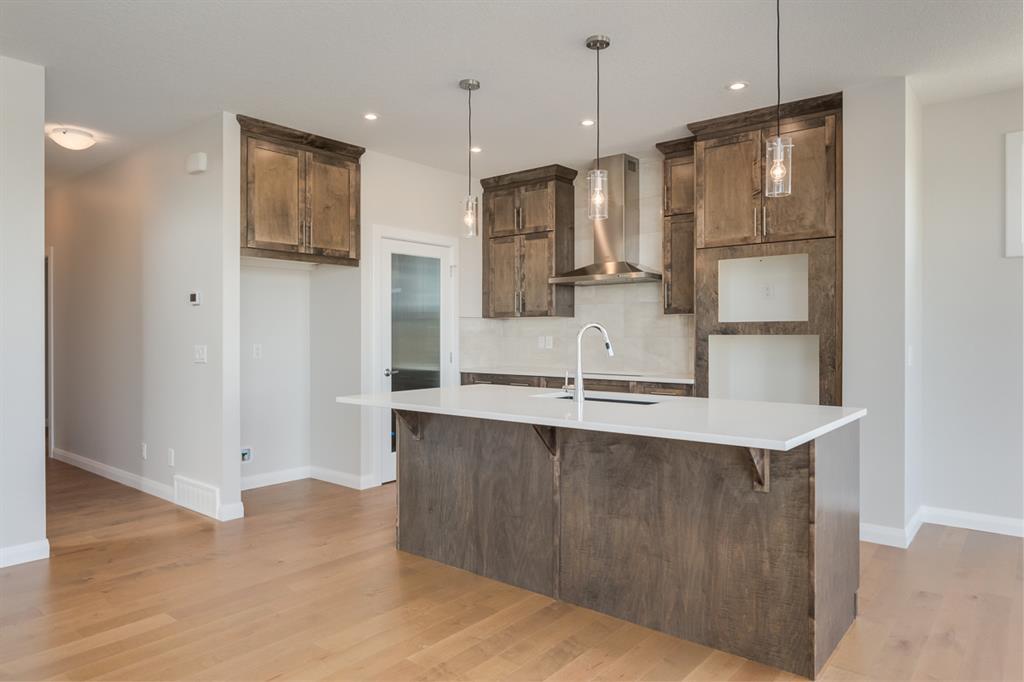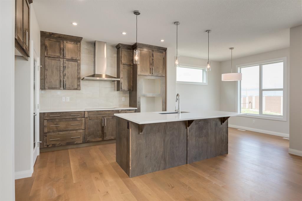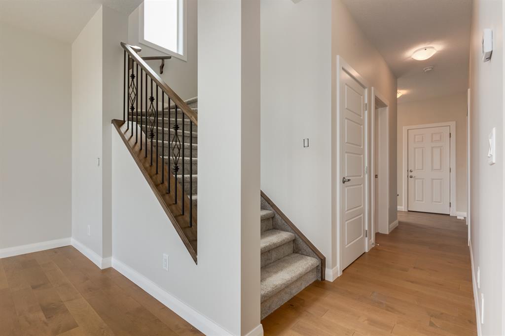 Welcome to The Savoy - A beautiful property by Broadview Homes - A Qualico Company, that boasts a spacious and bright open main floor, perfect for entertaining or relaxing with your family. The side entrance adds convenience to your daily routine, allowing you to come and go with ease. The LVP flooring throughout the main floor adds a touch of luxury while also being durable and easy to maintain. The soft-close cabinetry and pot lights in the kitchen create a cozy and inviting atmosphere, and the stainless-steel appliances add a modern touch to the space. The master bedroom features a luxurious 5-piece ensuite, perfect for relaxing after a long day. A full bathroom on the main floor adds convenience and practicality to the space. The convenient upper floor laundry room adds practicality to your daily routine, making laundry day a little easier. With 2 new school sites, multiple parks and pathways, and easy access to Stoney Trail, Redstone is the perfect community to call home. *Photos are representative* (id:22211)