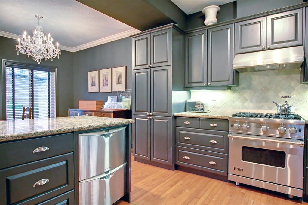 Stunning!!! This townhome creates a beautiful mood of European culture! As you enter this home you are welcomed by a large front foyer. Boutique style living area with marble surround gas fireplace and high ceilings set the mood. Gorgeous and spacious, the kitchen offers cabinets finished in Tanner Brown (Farrow & Ball) + large complimentary granite island. Some of the finest appliances.. Viking gas stove, Venta hood fan + Fisher & Paykel Dishwasher. Main floor - 2PC powder room, Cherry hardwood and deep rich walls. Fine natural wool carpet on stairs and throughout the upper floor. 2 bedrooms + family room/den/office. Grand Primary bedroom w/ luxury 5PC ensuite is fully surrounded with alluring Dark Emperador marble tile, elegant shower complimented with a subtle linear drain and frameless glass, dual sinks, walk-in closet + a huge south exposed balcony!!! Additional 4 PC bathroom in timeless white completely surrounded in tile. The basement is newly developed offering a timeless design in fresh white - family room, 3rd bedroom + 3PC bathroom, laundry room, storage and utility room. Nortiz tankless water heater, water softener, Air conditioning and double attached garage. Small outdoor space off the dining area, Gas BBQ hookup and privacy. A wonderful spacious layout! Beautiful home that must be seen to be appreciated! (id:22211)