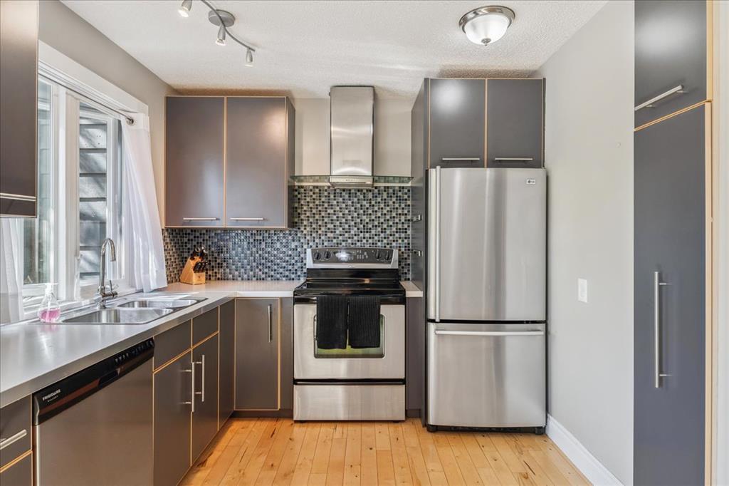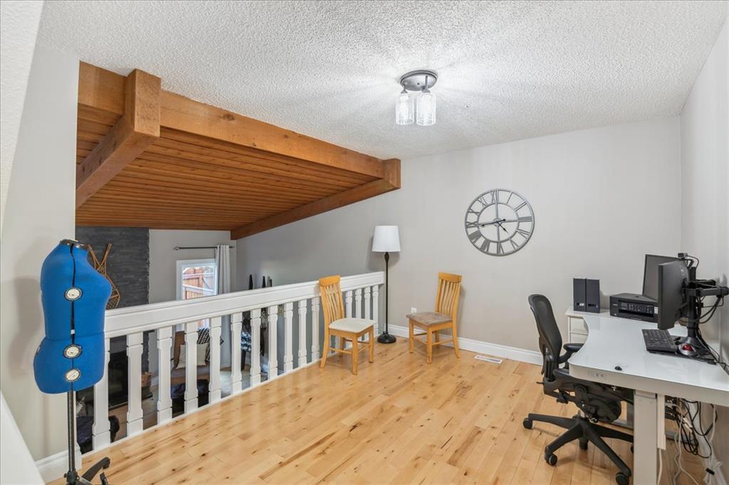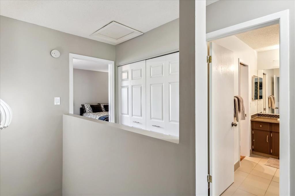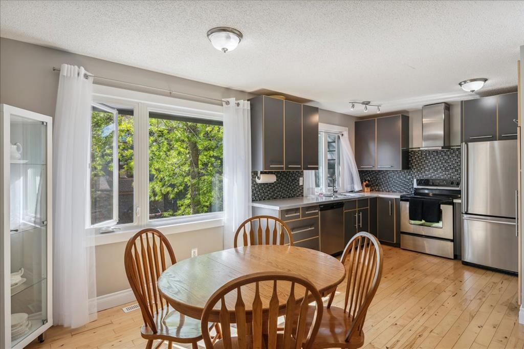 WOW, these homes do not come on the market often; Welcome to Oakmoor Lane! This 2 bedroom, 2 bathroom, 4 level split in the desirable community of Oakridge is waiting for the new owner. Boasting over 1500 sqft, the layout is extremely functional. Upon entering, you'll walk up into the spacious living room that features beautiful vaulted wood ceilings with exposed beams as well as a cozy gas/wood combination fireplace and BRAND NEW sliding doors that fill the room with an abundance of natural light from the WEST FACING exposure. There is direct access from the living room to a fantastic patio, great for entertaining in the fully fenced backyard large enough for all your furniture. Continuing inside, the dining room overlooks the living room and is also filled with natural light. The main level also includes a two pc bathroom. The large eating area with a fully updated kitchen, stainless steel appliances & ALL NEW WINDOWS. Upstairs, the primary suite has double closets, a NEW PATIO DOOR that goes out to a nice size balcony to enjoy your evening relax time, and 6 pc shared ensuite that is also accessible from the hallway. plus an additional good-sized bedroom completes this level. The finished basement offers great potential to shape up and offers a nice area for storage and a laundry room! This home also features an oversized heated single-car attached garage. Pride of ownership is apparent throughout with newer TRIPLE GLAZED WINDOWS & DOORS in ENTIRE HOME, NEW HOT WATER TANK, NEW FURNACE, HARDWOOD, FRESH PAINT, UPDATED ELECTRICAL OUTLETS AND Lots of care and attention to CLEANING AND MAINTENANCE Quick access out of the community and an easy commute to all quadrants of the city with the new ring road! Schools and amenities are nearby! This home truly is a must-see! **Check out the virtual tour** (id:22211)