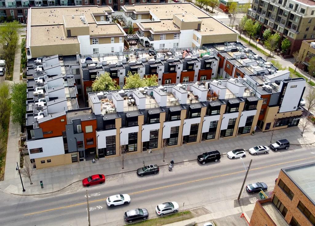 RARE LIVE & WORK OPPORTUNITY WITH EXCELLENT STREET EXPOSURE FOR YOUR BUSINESS! Welcome to this stunning multi-level condo located in the “The Olive” designed by award-winning architect Jeremy Sturgess in the heart of the trendy & sought-after community of Bridgeland! The main floor offers a fully functional, contemporary office/retail/commercial space with a huge social space & 2 piece bath. The 2nd floor comes complete with a gourmet kitchen (stainless steel appliances, gas range, granite countertops), cozy den/living/dining room, a 2 piece bath & a spacious living room featuring a Romeo & Juliet balcony & gas fireplace. The 3rd floor offers a huge primary bedroom, with a large walk-through closet and access to the lavish 5-piece bathroom which includes a chic soaker tub, stand-up shower & double vanity sink. Completing the third floor is a second bedroom/office with a large walk-in closet and private balcony. Also included is a spacious ROOFTOP PATIO (gas & water), 2 UNDERGROUND PARKING STALLS & a storage locker! This property is ideally located in the heart of Bridgeland and just steps from all major amenities including schools, shopping, coffee shops, restaurants, bars, walking/biking paths of the Bow River, and minutes to downtown Calgary. This amazing property needs to be seen to be truly appreciated! (id:22211)