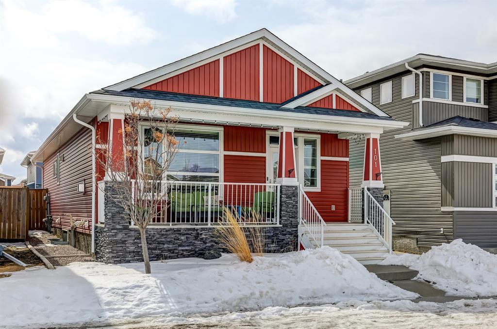 This LOCATION & HOME is a rare find! Welcome to this gorgeous Bungalow offering 3 bedrooms, 2.5 bathrooms, SOUTH facing backyard and over 2300 sq. ft. of developed Living Space, with an oversized Double Detached Garage in the desirable community of Redstone!. This Beautiful and modern bungalow is located on a quiet street, ACROSS from a PARK with playground nearby. Imagine sitting on your front porch facing the green space with your favourite drink and great company. This fabulous floor plan offers a spacious Family room upon entering, with a cozy stone faced centre fireplace & mantle making it a perfect space to enjoy with family and entertaining. The kitchen offers loads of cabinet & counter space, an island with breakfast bar , large walk in PANTRY, massive SKYLIGHT, and stainless steel appliances. The kitchen opens to a large dining area that can fit a 6-8 person table .The Primary bedroom is massive and can easily fit a King size bed with room for and sitting area, enjoy your spa like ensuite and exceptional walk in closet. Plenty of windows throughout that provides ample sunlight. The mud room features custom built ins, with access to your deck and south facing low maintenance backyard. This desirable open floor plan has 9ft ceilings, Vinyl Plank flooring throughout, office and half bath, completing the main floor. The fully finished basement has plenty of space with a recreation room, games room/reading area , laundry room ,plenty of storage , 2 spacious bedrooms with a walk in closet and full bath. Enjoy your sunny backyard with easy access to garage that opens up to allow extra space to entertain. This community provides new schools , amenities, transit, multiple parks and pathways and quick and easy access to downtown, Calgary International Airport, Stoney Trail & Deerfoot Trail. Redstone was designed with careful attention to what matters most and is the perfect community to call home. (id:22211)