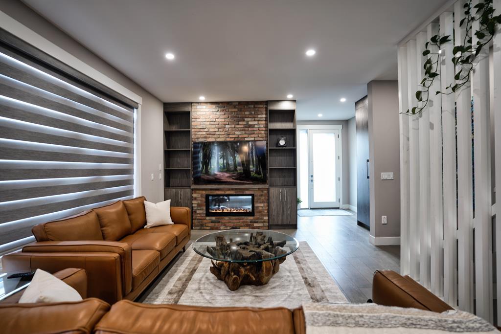 Inner city living at its finest! UNBEATABLE LOCATION SIDING ONTO A PARK!! Located In the heart of Kensington and a street away from the Peace Bridge & River. This custom contemperary 2 Storey home with 4 bedrooms and 3 and a Half bathrooms is sure to impress. As you enter you are greeted by an open Floor plan including a custom see through brick fireplace separating the living area and Office, Hardwood through-out, a spacious dining area leading to the massive kitchen with custom appliances, a waterfall island and Quartz counters and more then enough cabinet space.. The upper floor is absolutely stunning with a Large Master bedroom with beautiful downtown views, its own Fireplace, a walk-in closet and a lovely 5 piece ensuite. Also included on the upper level is two more spacious bedrooms, Laundry and a 3 piece bathroom. The lower level is fully finished with a theatre area, Wet Bar, A Fourth bedroom & 3-piece bathroom. The back Yard is fully landscaped and includes a large deck in the back that leads to the Double Garage. located conveniently within walking distance to downtown, the River and Kensington. Do not miss out!! (id:22211)