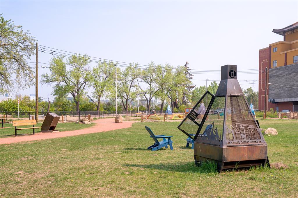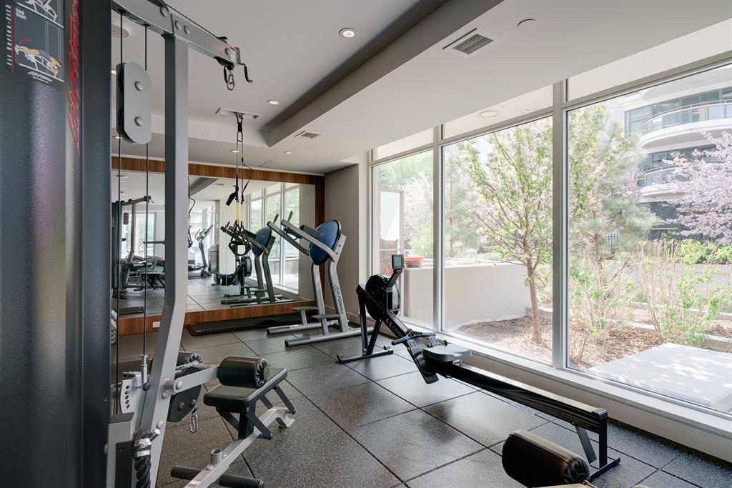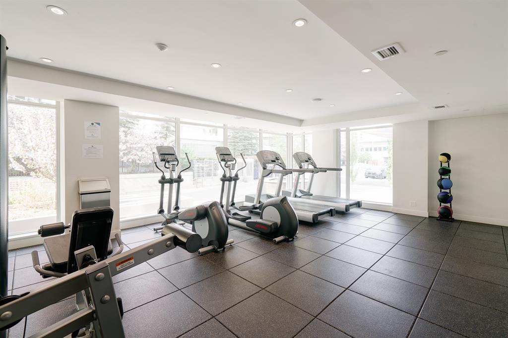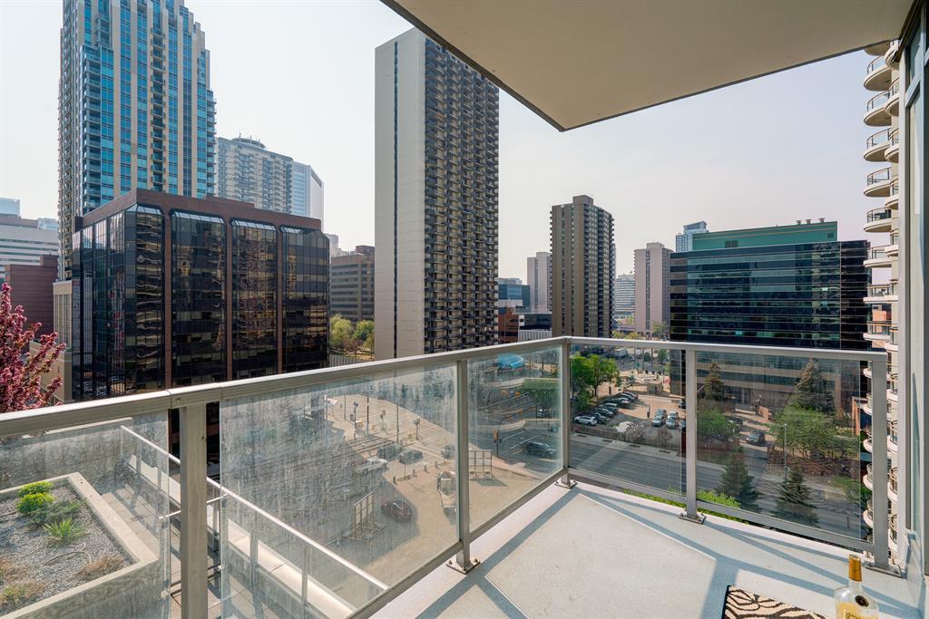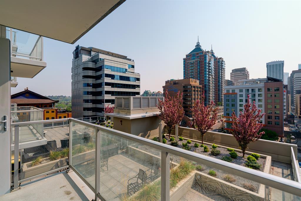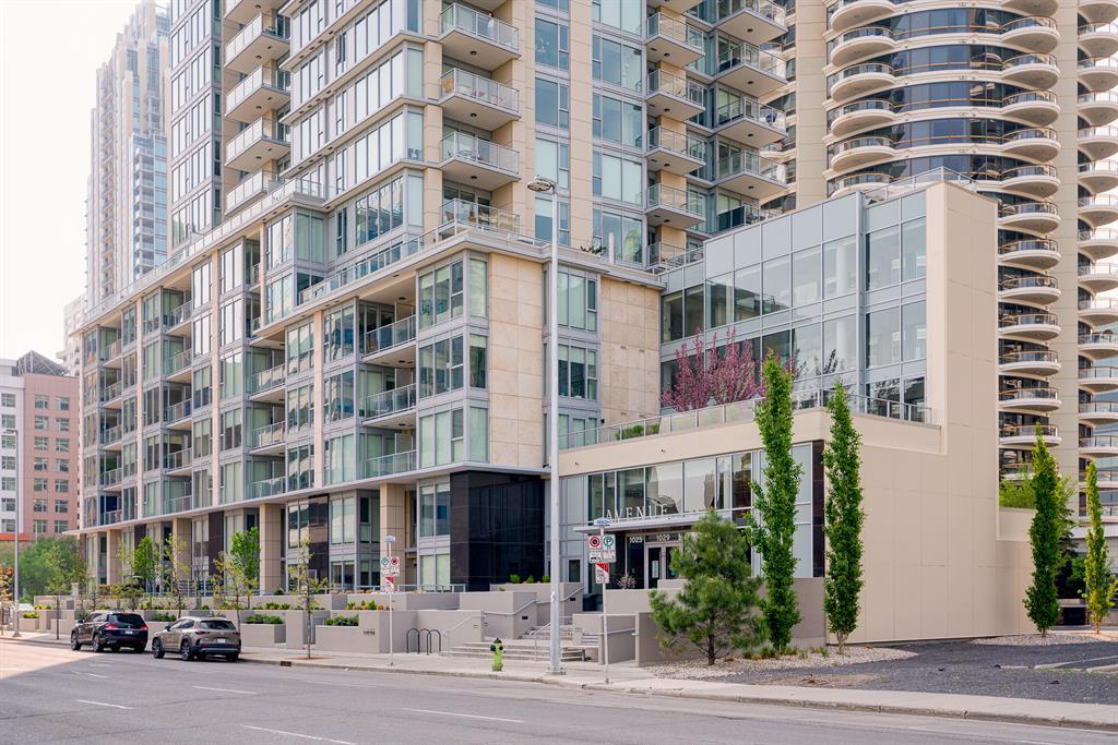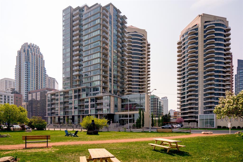 Maintenance-free living and spectacular views await in the amenity-rich Avenue Building in the heart of Downtown’s west end. Outdoor enthusiasts will love that the Bow River is mere steps away plus the well-equipped fitness room keeps you active in any weather. The floor to ceiling walls of windows expertly frame courtyard and city views from this gorgeous 9th floor corner unit. Rich hardwood floors and a neutral colour pallet grace the open and airy floor plan. The kitchen inspires culinary adventures featuring quartz countertops, double side-by-side fridge/ freezers, Stainless Steel gas cooktop, built-in oven and microwave, a peninsula island with seating and loads of full-height cabinets. Adjacently the inviting living room invites relaxation bathed in natural light and kept cool by central air conditioning. Host barbeques or simply unwind on the balcony with glass railings providing unobstructed views. The airy ambience is continued into the bedroom with full-height windows and a walk-in closet. In-floor heating in the bathroom keeps toes warm and toasty. In-suite laundry, titled underground parking and a separate, titled storage locker add to your comfort and convenience. Truly an exceptional condo in an unparalleled building that is an outdoor lover’s dream, walk or bike downtown, stroll along the river or visit the many shops, cafes and restaurants that this vibrant community has to offer. A green space and picnic area are directly across the street and the West-Kerby LRT Station and downtown free ride zone is a quick 3 minute walk away. This beautiful, contemporary unit ticks all the boxes, come see for yourself! (id:22211)