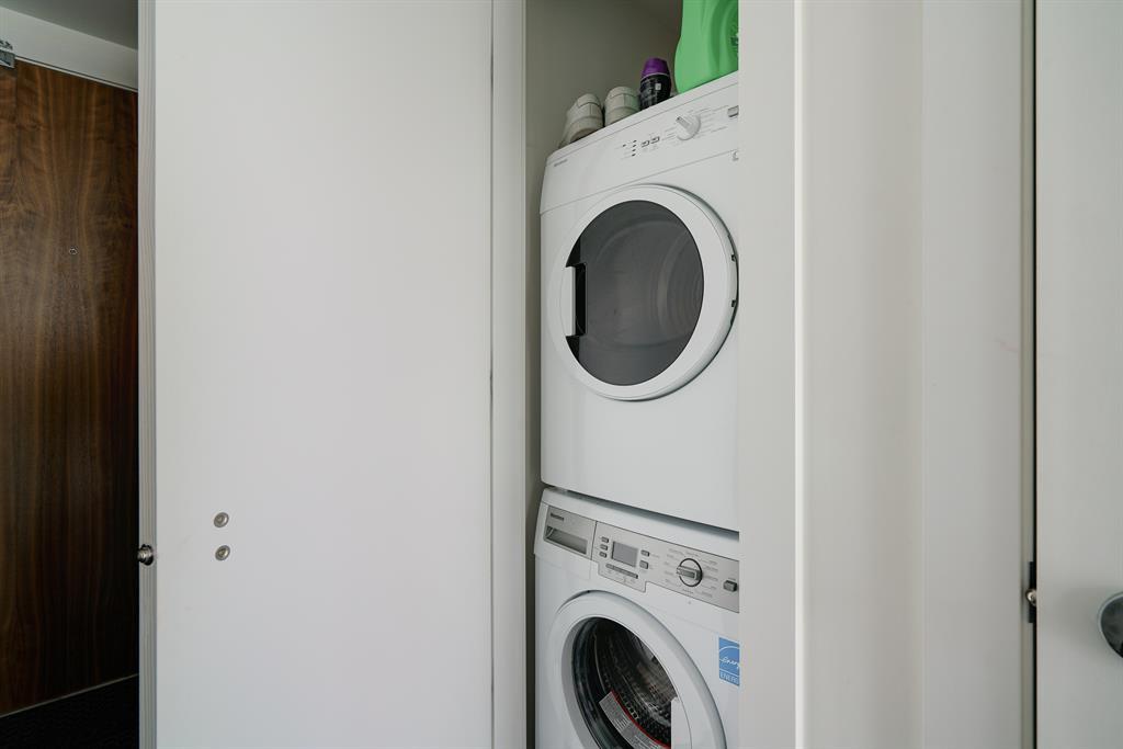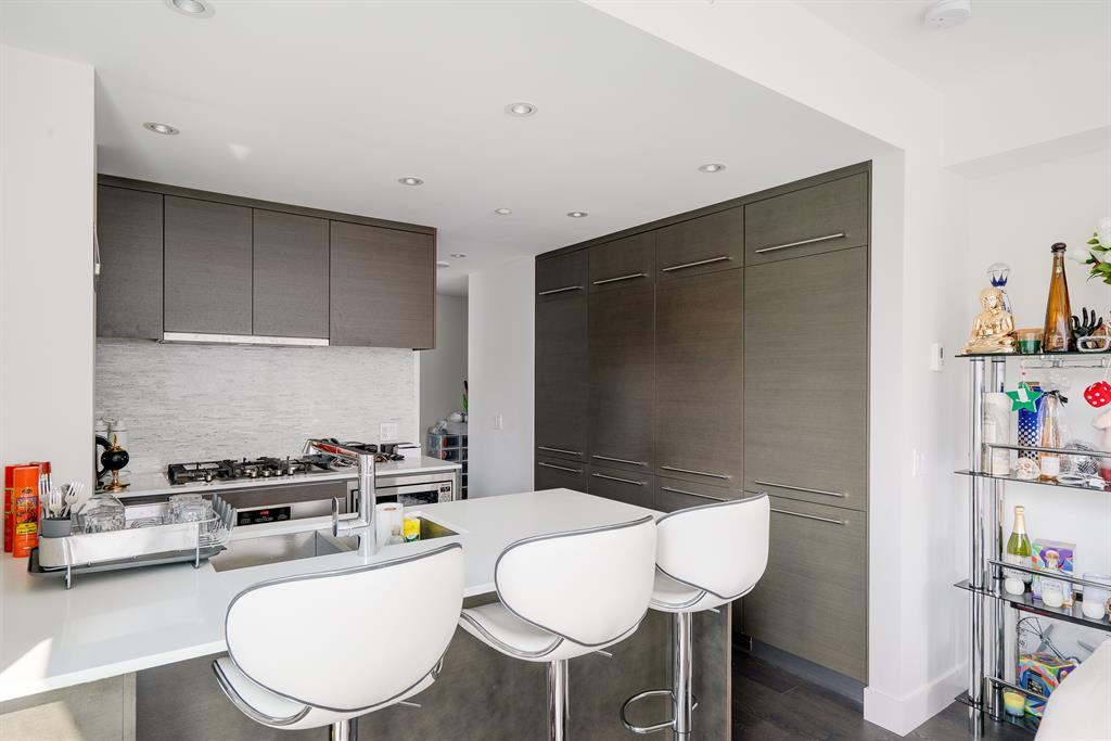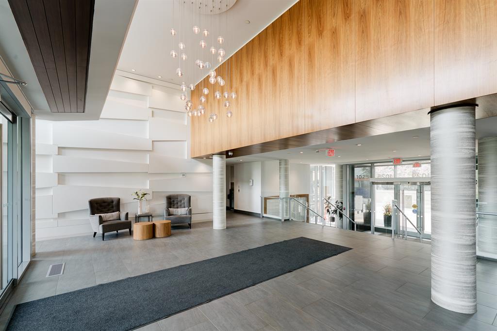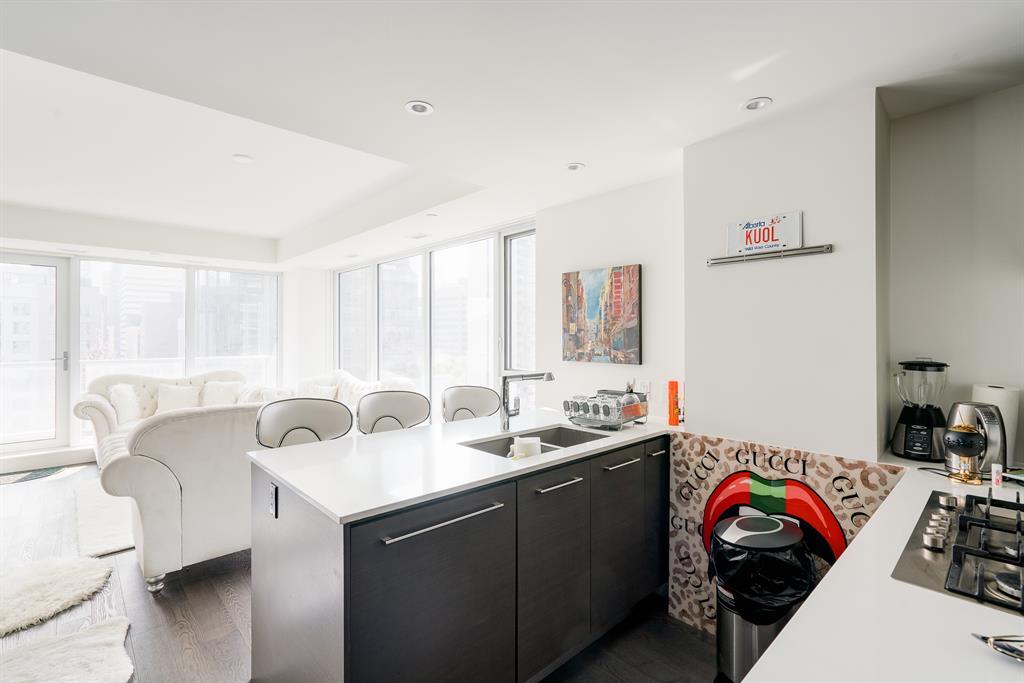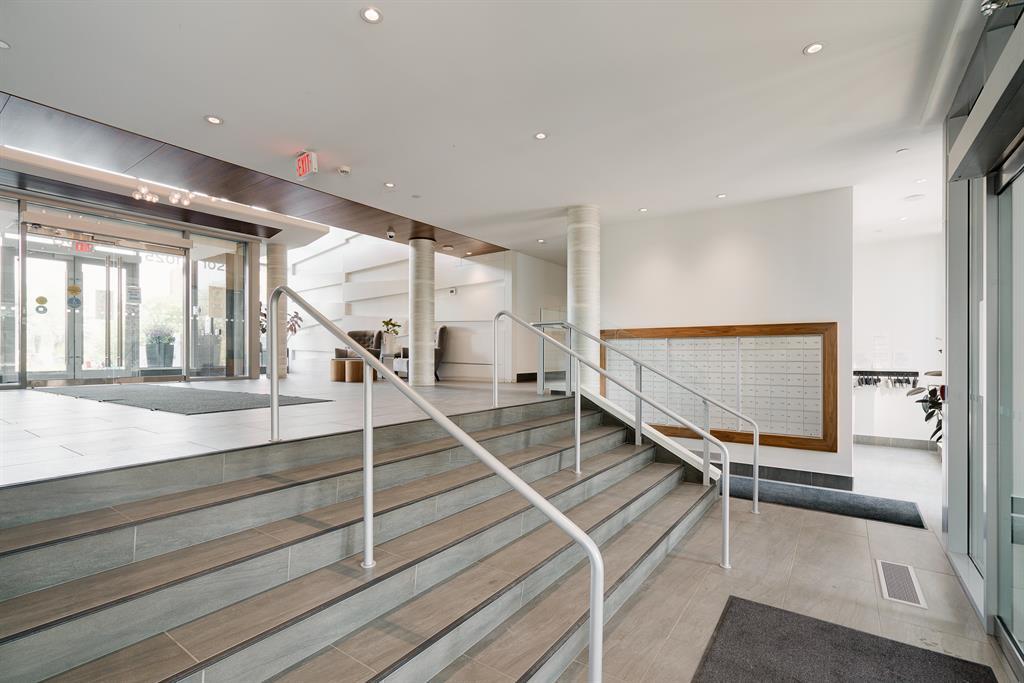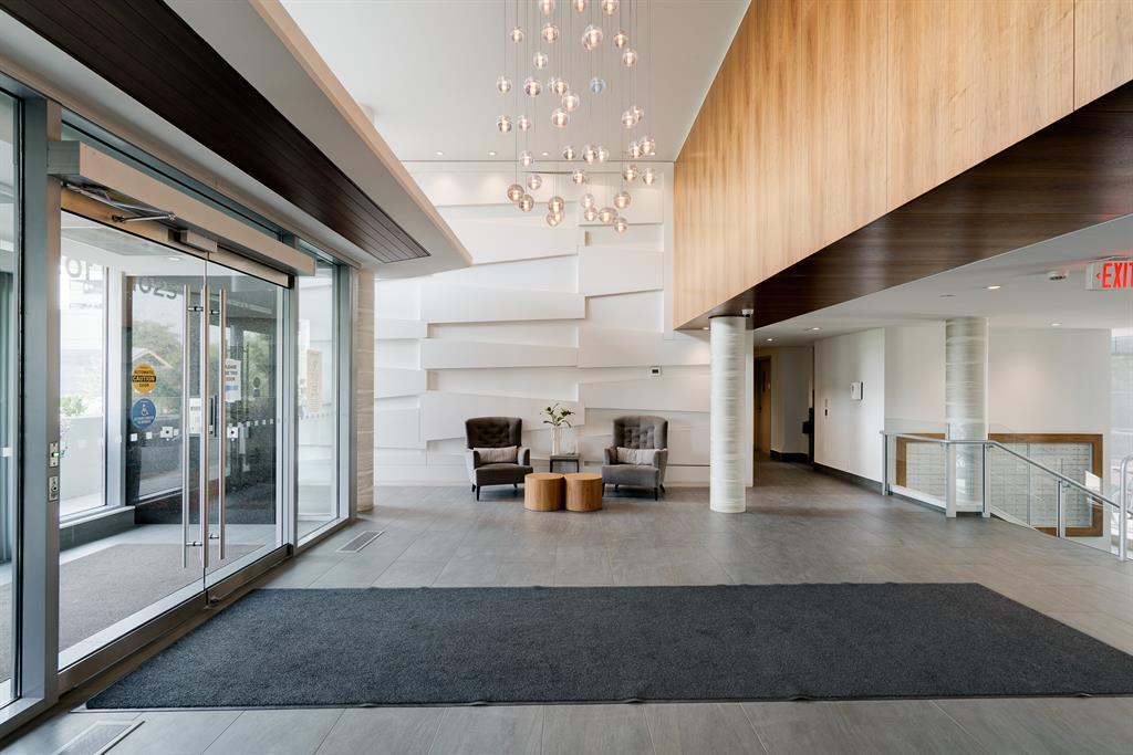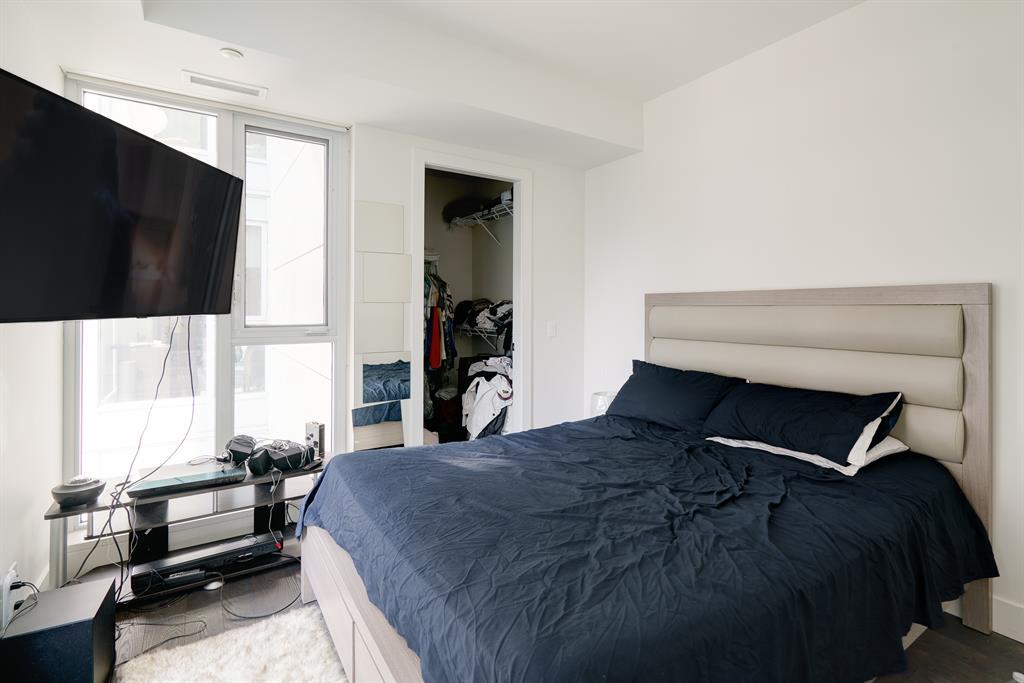 Maintenance-free living and spectacular views await in the amenity-rich Avenue Building in the heart of Downtown’s west end. Outdoor enthusiasts will love that the Bow River is mere steps away plus the well-equipped fitness room keeps you active in any weather. The floor to ceiling walls of windows expertly frame courtyard and city views from this gorgeous 9th floor corner unit. Rich hardwood floors and a neutral colour pallet grace the open and airy floor plan. The kitchen inspires culinary adventures featuring quartz countertops, double side-by-side fridge/ freezers, Stainless Steel gas cooktop, built-in oven and microwave, a peninsula island with seating and loads of full-height cabinets. Adjacently the inviting living room invites relaxation bathed in natural light and kept cool by central air conditioning. Host barbeques or simply unwind on the balcony with glass railings providing unobstructed views. The airy ambience is continued into the bedroom with full-height windows and a walk-in closet. In-floor heating in the bathroom keeps toes warm and toasty. In-suite laundry, titled underground parking and a separate, titled storage locker add to your comfort and convenience. Truly an exceptional condo in an unparalleled building that is an outdoor lover’s dream, walk or bike downtown, stroll along the river or visit the many shops, cafes and restaurants that this vibrant community has to offer. A green space and picnic area are directly across the street and the West-Kerby LRT Station and downtown free ride zone is a quick 3 minute walk away. This beautiful, contemporary unit ticks all the boxes, come see for yourself! (id:22211)