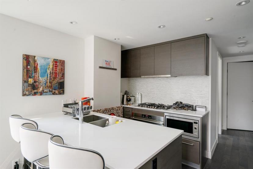 Maintenance-free living and spectacular views await in the amenity-rich Avenue Building in the heart of Downtown’s west end. Outdoor enthusiasts will love that the Bow River is mere steps away plus the well-equipped fitness room keeps you active in any weather. The floor to ceiling walls of windows expertly frame courtyard and city views from this gorgeous 9th floor corner unit. Rich hardwood floors and a neutral colour pallet grace the open and airy floor plan. The kitchen inspires culinary adventures featuring quartz countertops, double side-by-side fridge/ freezers, Stainless Steel gas cooktop, built-in oven and microwave, a peninsula island with seating and loads of full-height cabinets. Adjacently the inviting living room invites relaxation bathed in natural light and kept cool by central air conditioning. Host barbeques or simply unwind on the balcony with glass railings providing unobstructed views. The airy ambience is continued into the bedroom with full-height windows and a walk-in closet. In-floor heating in the bathroom keeps toes warm and toasty. In-suite laundry, titled underground parking and a separate, titled storage locker add to your comfort and convenience. Truly an exceptional condo in an unparalleled building that is an outdoor lover’s dream, walk or bike downtown, stroll along the river or visit the many shops, cafes and restaurants that this vibrant community has to offer. A green space and picnic area are directly across the street and the West-Kerby LRT Station and downtown free ride zone is a quick 3 minute walk away. This beautiful, contemporary unit ticks all the boxes, come see for yourself! (id:22211)