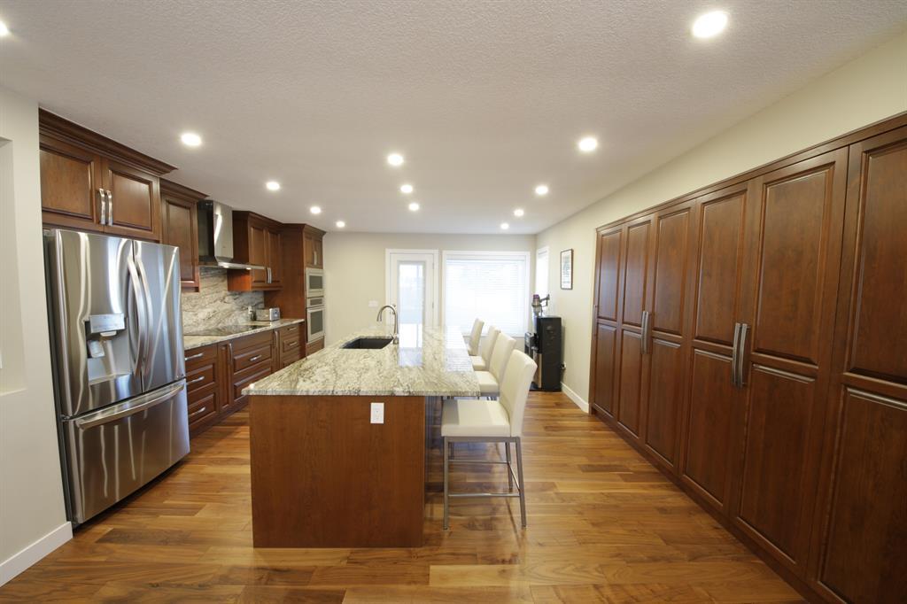Seller will consider house on trade! Phenomenal 5 bedroom, fully renovated bungalow located in Signal Hill within walking distance to transit, shopping and restaurants. Large corner lot with NO CITY SIDEWALK. Engineered walnut hardwood floors throughout the main level 15' vaulted ceilings in the living room and dining room. 60" linear fireplace in the living room with custom cherry mantle. The spacious kitchen is equipped with cherry cabinets, granite countertops, and granite backsplashes. 36" Bosh induction cooktop and range hood. Built in oven and microwave. 10' Island has storage on the back side, an oversized Blanco sink and Grohe touch tap. Primary Bedroom features a spacious walk in closet with organizers. Primary Bathroom is like your very own spa with heated tile floors, cherry cabinetry and dual vanity. 6’ jetted tub with inline heater and bubbler. Toto washlet has all the bells and whistles including deodorizer, bidet function, blowdryer, remote, and heated seat. The massive 4.5’ by 7’ steam shower fitted with all Grohe taps featuring 20” square rain head as well as a shower head, 3 body sprays and hand sprayer. The other two main floor bedrooms are great size with a closet organizer in each. Main floor bathroom features the same heated tile floors, cherry cabinetry, Grohe taps and Toto Washlet. Main floor laundry features a stacked washer dryer, cherry cabinets for storage, granite counters and backsplash as well as a Blanco sink with integrated washboard and Grohe tap. Downstairs features a massive 40’ recreation room with a stunning bar fitted with cherry cabinetry, granite counters and backsplash, full size Blanco sink and full sized fridge. Massive remote controlled corner fireplace makes the basement cozy regardless of how cold the weather gets. The first of the two basements bedrooms is a massive 21’ by 12’ that can be used as a bedroom, play room or exercise room is complete with its own walk in closet. The second basement bedroom is a fantastic si ze with its own walk in closet to die for. The basement bathroom is finished to the same standards as the rest of the house with heated tile floors, 48” cherry vanity, granite counters, Grohe taps and toto Washlet. Cedar lined sunroom is perfect for stretching out the summer months or on cold evenings. Back patio looks over the large back yard with two storage sheds and a parking pad that stays out of sight due to being made out of grass pavers. The house had the following done in 2019 with the year long renovation being completed in December of 2019: New triple pane windows, new high efficiency furnace, new humidifier, new water softener, new on demand hot water (never run out of hot water), new stucco exterior, new exposed aggregate driveway and front step. Also new Air-conditioner installed May of 2021. (id:22211)