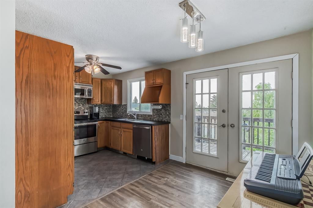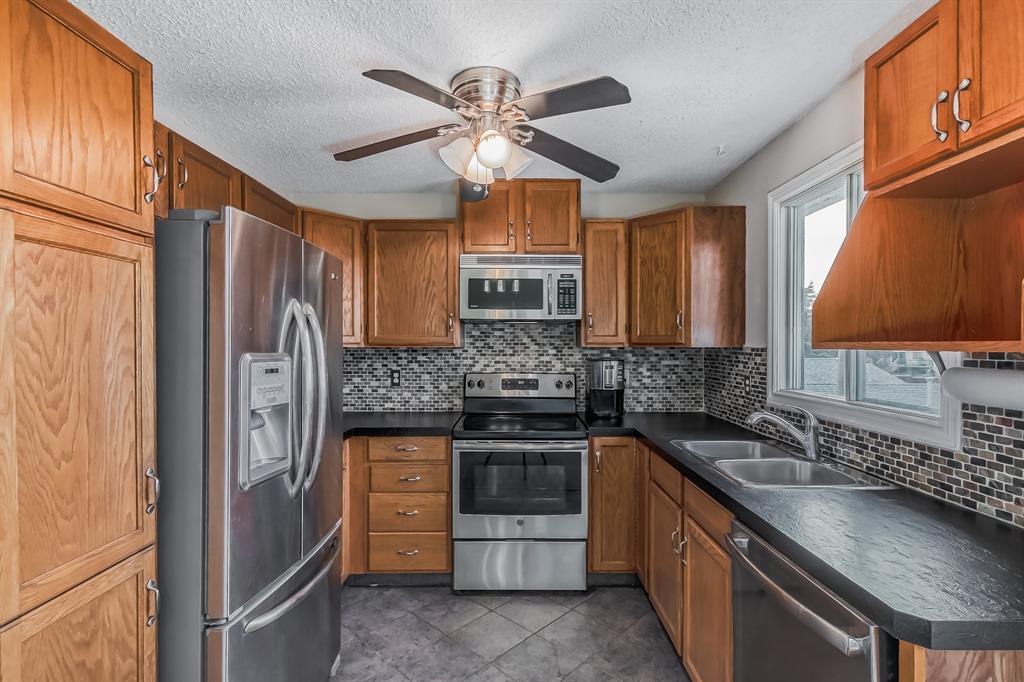 Welcome to 104 Macewan Drive in sought-after Macewan Glen! This terrific bi-level home is in great condition, featuring a large yard and an OVERSIZED double garage. The main floor boasts a spacious living room with south-facing windows, filling the space with abundant natural light. The kitchen offers ample cabinetry and updated stainless steel appliances. Adjacent to the kitchen, the dining area leads out to a two-tiered deck, perfect for outdoor entertaining. The main level also includes a generous master bedroom with an updated ceiling fan, a second bedroom, and a large 4-piece bathroom. The lower level of this residence is ideal for relaxation and entertainment, featuring a big family room with a cozy wood-burning fireplace. Two additional bedrooms, a flexible area, and an updated 3-piece bathroom provide versatility and convenience. Conveniently located just minutes away from Nose Hill Park, schools, and major roadways, this home offers easy access to outdoor recreation, educational facilities, and stress-free commuting. The backyard is a true retreat, featuring a two-tiered deck, a welcoming patio, and a grassy area for various outdoor activities. Furthermore, there is a HUGE oversized garage measuring 25.3'x21.11' that provides ample space for your vehicles and any extra toys, with easy alley access. Don't miss the opportunity to see this must-see home. Call today to schedule a viewing and experience the charm, functionality, and desirable location of this remarkable residence. (id:22211)