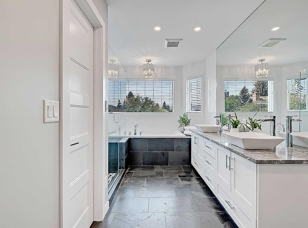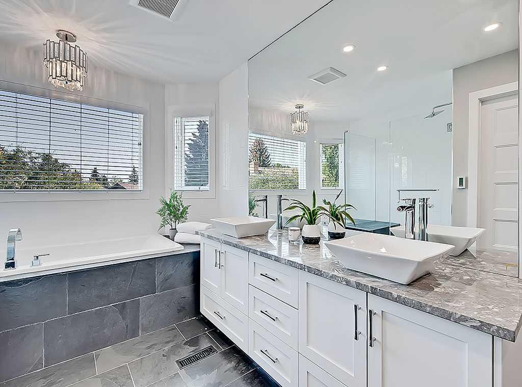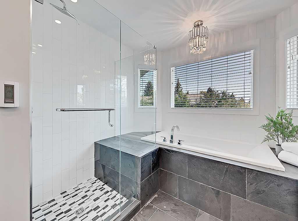 Welcome to 107 Edcath Place Nw, located in the well-established NW community of Edgemont, this fully finished two-Storey has seen substantial updating over the years, including new kitchen & bathrooms (2019), electrical panel (2015), furnaces & water tank (2016), stamped concrete patios, exposed aggregate driveway, irrigation system, central air, all new trees and landscaping including putting green (2020), vinyl windows, front & rear exterior doors, all new paint throughout & fridge (2023). As you enter, the main floor is well appointed with large sunken great room, formal dining space, separate family room with wood burning fireplace, large kitchen with center island, quartz countertops, stainless steel appliances including an induction range, and breakfast nook overlooking the absolutely epic south facing backyard complete with stamped concrete patio & hot tub, fruit trees & garden, fully fenced dog run and storage sheds. Upstairs offers a bonus room/den area, 2 full bathrooms and 3 bedrooms including large primary retreat with 5 pc ensuite, double sinks, soaker tub, walk in shower, heated slate floors and walk-in closet. The basement is fully finished with an additional 2 bedrooms, nicely renovated 3 pc bath with stand-up shower and epoxy floor, and huge rec space with wood burning fireplace. Located in a quiet cul-de-sac on a massive 8000 square foot lot, close to the ridge and walking paths. Turn-key properties like this rarely come available. (id:22211)