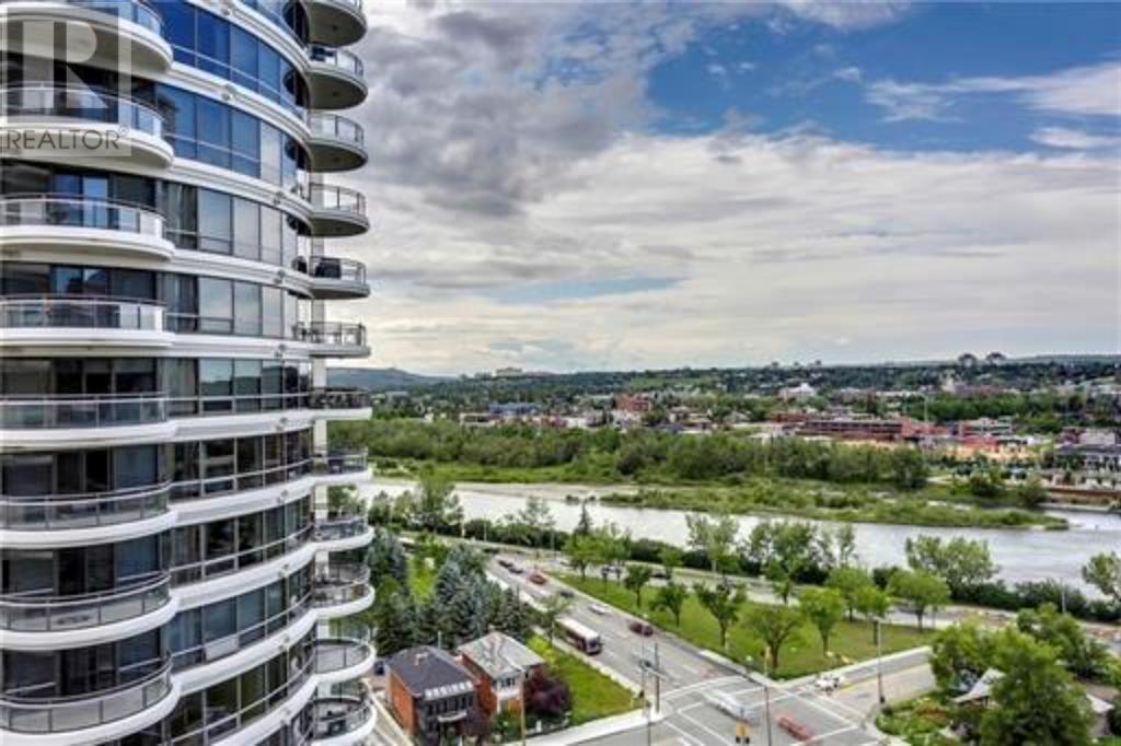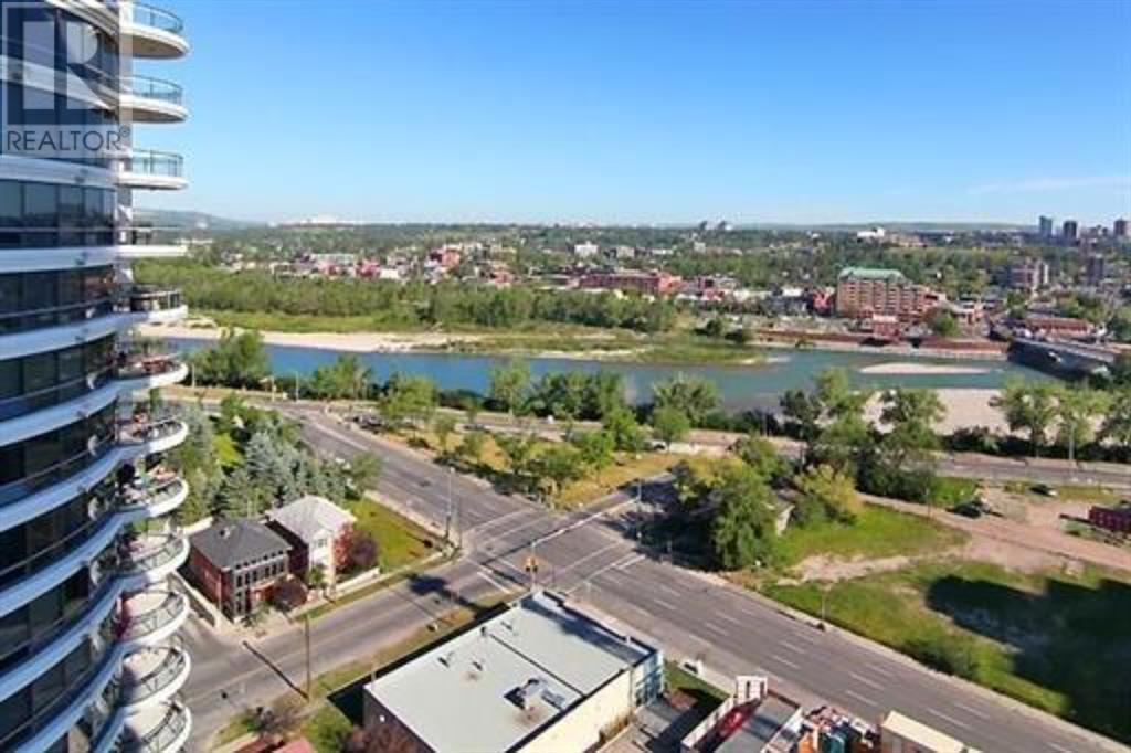 Legant 2 Bedroom + den 18th floor condo in the McLeod, Rivewest located in popular Downtown West end. One block to LRT and Bow River, Solid concrete construction with floor to ceiling window. 2 balconies and views of the Bow River and mountains. Breathtakingly beautiful sunsets, Open floor plan with gas fireplace in living room. Gourmet kitchen with granite countertops and under cabinet lighting. Master bedroom with 4 pcs ensuite and 2 closets. 2 full bathrooms with heated tiled floors .Recently painted with new hardwood flooring. Slate tiles. 2 side by side parking stall and visitor parking in secure heated underground parkade. Secure bike and private storage rooms, Excellent amenities include large indoor heated pool, hot tub, new gym, party room with kitchen. A part time Concierge and controlled access security system with low condo fees make this condo a safe and great investment (id:22211)