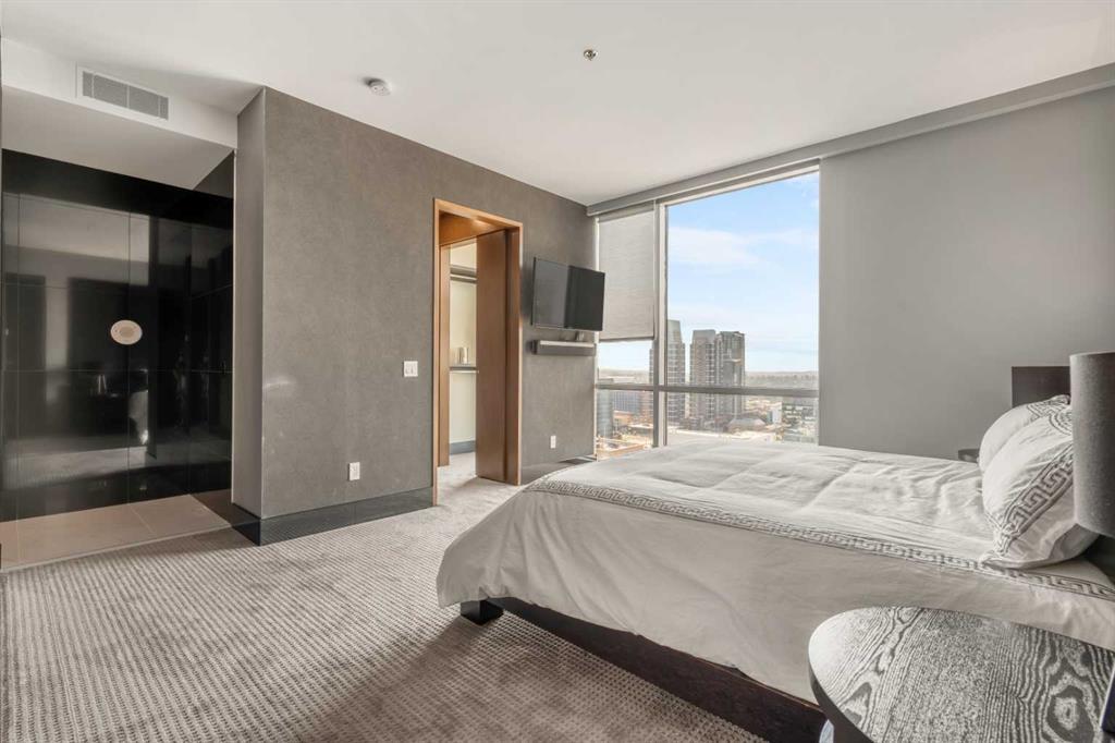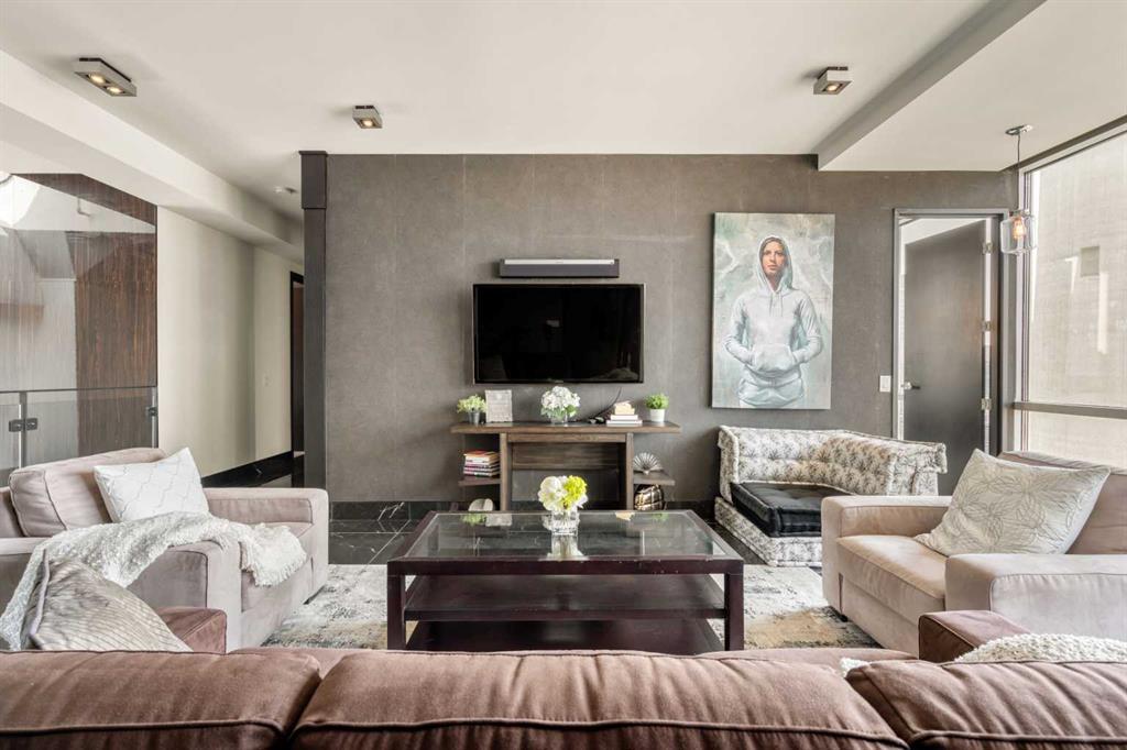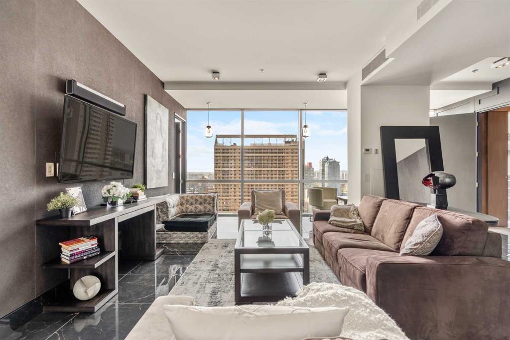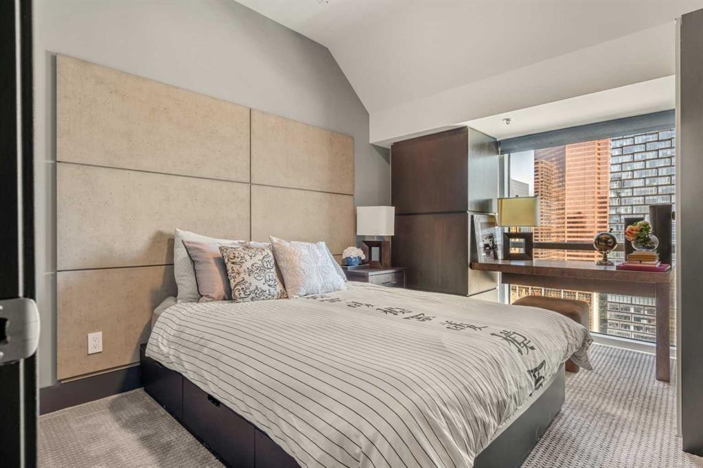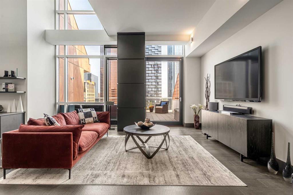 With a twist of the handle you can open the door to a life of modern magnificence + effortless exclusivity. Welcome to the Penthouse - one of the most coveted addresses in the city. Nestled at the foot of the Calgary Tower in the downtown core, the location is truly second to none. Indulge your senses and walk out to the expansive outdoor terrace, chinook breeze blowing, the dazzling illuminated skyline staring back - you are on top of the world. Inside you will discover a two level layout, flooded with natural light via the large windows on both sides. Stand in awe at the 21 foot vaulted ceilings extending above the main floor living area. A space designed for entertainers and a distinguished kitchen for the dramatics. Quartz counters, integrated Miele appliances, gas range, custom cabinets, cappuccino maker + wine fridge. Let's head upstairs to the picturesque wall of windows looking out to the Calgary tower and secondary living area - an amazing additional space to cater to your lifestyle. Retreat to the outstanding primary bedroom + magazine worthy ensuite bathroom. Soaker tub, walk-in shower, dual sinks, storage cabinets + fully tiled fashion runway like hallway that leads to the walk-in closet. The second bedroom enjoys those magical city views and the third room consists of a space saving murphy bed and built-in desk. The upper floor full bathroom revels in the south views and just adds to the high-end experience for visiting guests. This very private + boutique complex offers onsite concierge services to simplify your daily routine. Enjoy access to Le Germain Hotel amenities including RnR Wellness Spa, fitness centre, valet parking, restaurants, room service, catering, conference rooms, housekeeping and dry cleaning. Additional perks include two underground parking stalls, secure storage area, car wash, pet shower + bike room. World renowned architectural firm Lemay Michaud joined forces with Groupe Germain to create this gorgeous landmark. A life of style, sophistication + spectacular opulence. This is your chance to call it home. Check out the full lifestyle tour video on YouTube! (id:22211)
