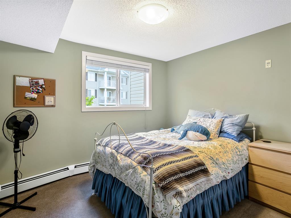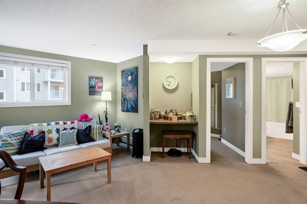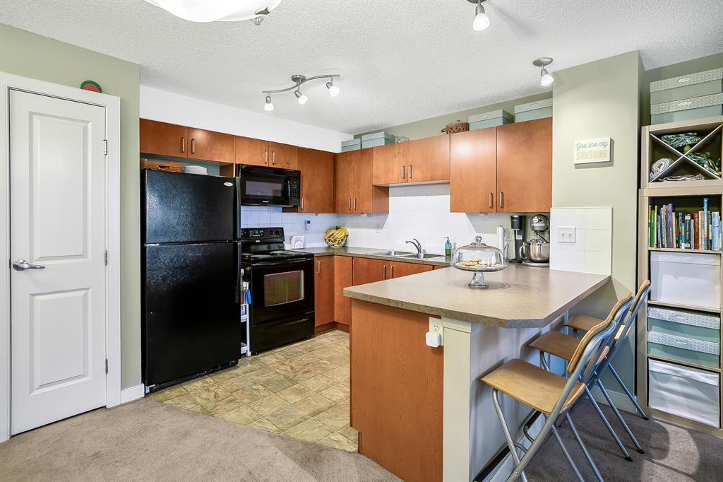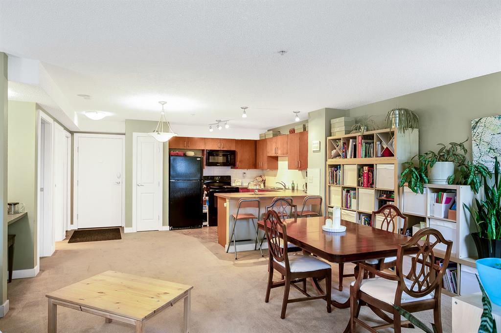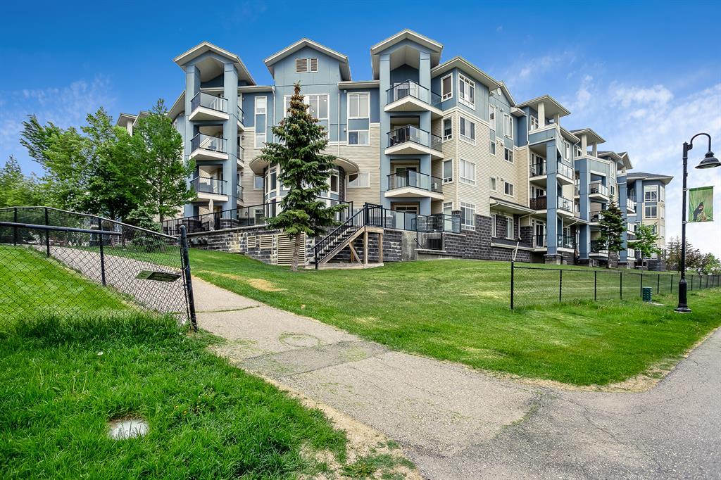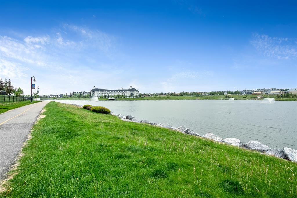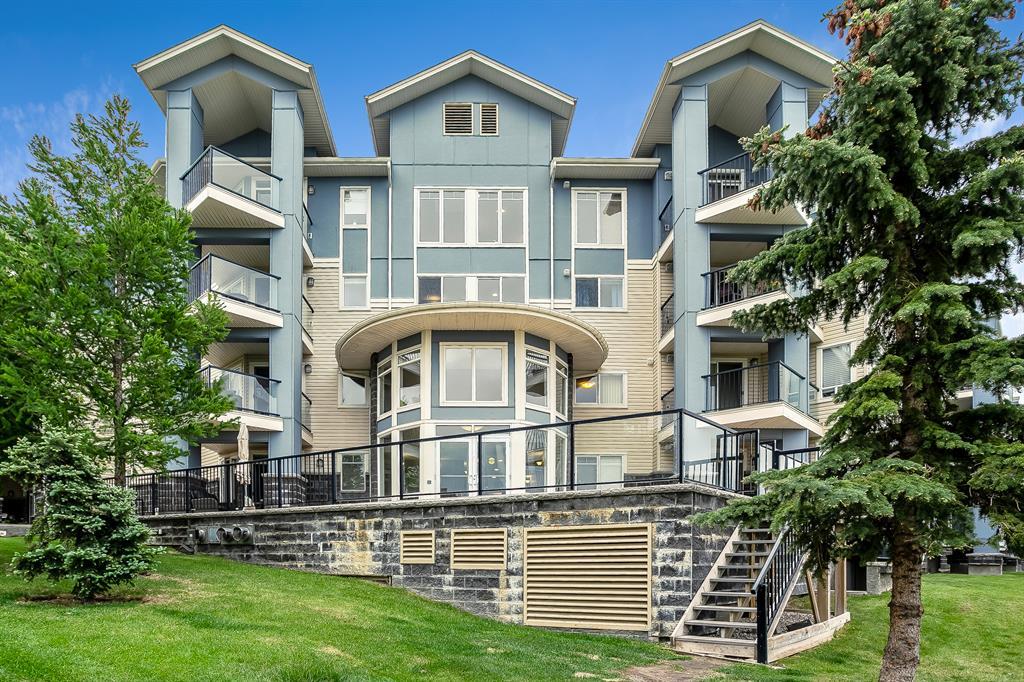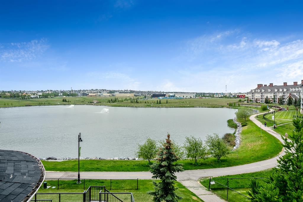 Unobstructed picturesque views from this spacious and well appointed 1 bed 1 bath unit. Enjoy relaxing inside or out on your large west facing patio overlooking the pond surrounded by walking trails and green space and conveniently leading to every amenity one could hope for, from schools to parks and playgrounds, groceries, medical clinics, hardware stores all conveniently located within a short walking distance.Located in a well established neighborhood in North Calgary known for its convenient access in and out of the community, to public transit and a short commute to both the downtown core and the Calgary Airport. This is a prime location. Well maintained spacious west facing unit well designed and laid out, allowing for ample storage and featuring in suite laundry, an underground title parking stall as well as a massive storage unit. Unit is located within close proximity to the elevator (1 unit in) and the oversized underground parking stall with a massive adjacent storage room has easy access to the elevator as well. Ample visitor parking Quiet and well maintained pet friendly building (with board approval). (id:22211)