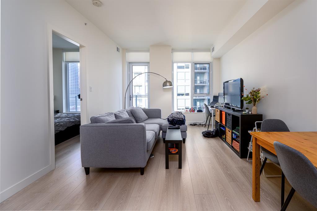 Welcome to your new home in the heart of Calgary's bustling Chinatown district! This stunning eleventh floor condominium in the prestigious Waterfront Parkside building offers the ultimate urban living experience. Step inside and be greeted by an abundance of natural light streaming through the large floor-to-ceiling windows offering views of the Bow River. This open-concept space provides the perfect place for entertaining. The fully-equipped kitchen features sleek stainless steel appliances, quartz countertops, ample storage space and breakfast nook; making meal prep a breeze. The bedroom boasts large windows and 4 piece ensuite bathroom complete with a tub/shower combination. Your new home also comes complete with 1 assigned underground parking stall, storage locker and in-suite laundry! Plus, with access to the included first-class amenities such as a fitness center, sauna/steam room, recreational room and 24-hour concierge service, you'll enjoy the ultimate in luxury living. This condo is located in a prime location just steps away from world-class restaurants, shopping, and entertainment, you'll have everything you need right at your doorstep. Don't miss your chance to own this exquisite one bedroom, one bathroom condo in the Waterfront Parkside building. Schedule your viewing today! (id:22211)