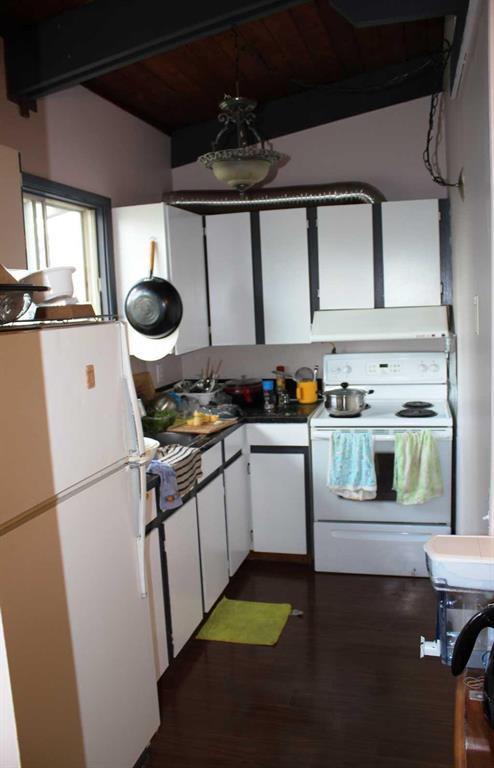 Great investment property or home for first time buyers in the well-established community of Southwood. Close to schools, shopping centers, restaurants, LRT, Bus station. Lovely open floor plan, two bedroom bi-level half-duplex home. No condo fees! The main floor, with a vaulted beam ceiling, offers a living space, kitchen, dinning area and 4 pc bathroom, with the back door leading to a rear deck and fenced backyard. The primary and 2nd bedroom are located on the lower level, along with laundry and additional storage. The parking pad in the front yard offers space for 2 vehicles. (id:22211)