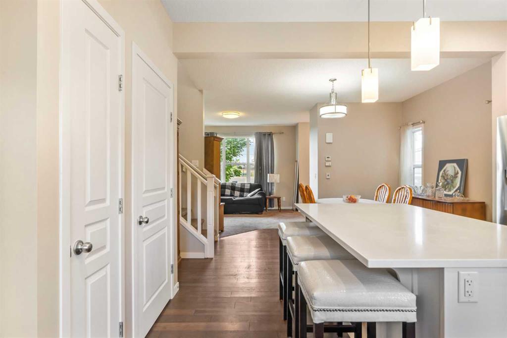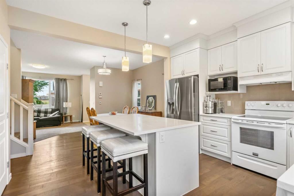*UPDATE* (OPEN HOUSE CANCELLED. SELLER ACCEPTED UNCONDITIONAL OFFER.) OPEN HOUSE!!! SUNDAY JUNE 11 (12-2PM) Welcome to this beautiful well-maintained gem in fantastic Cranston community. This energy efficient home has been rated with 83 ENERGUIDE RATING and has lots of UPGRADES when it was built in 2011. The open floor plan in the main floor includes the carpeted living room and HARDWOOD floors in the dining area and kitchen. This house has HUGE WINDOW in the living room and EXTRA SIDE WINDOWS for more natural and bright lights in the dining room. The kitchen has an UPGRADED CROWN MOULDING white kitchen cabinets and STAINLESS STEEL fridge that has water line and ice maker for your convenience. The sink is oversized with wired and plumbed ready for a future garburator overlooking the backyard garden. The NEW DISHWASHER is also waiting for you. Second level will take you to the primary bedroom with 3 piece ensuite and a walk in closet. Two more good sized bedroom with a shared four-piece bathroom suite and a NEWLY replaced exhaust fan. This house also have an HRV SYSTEM for a better air circulation and a TANKLESS WATER HEATER. The 8'1 FEET CEILING BASEMENT allows for the finishing of the new owner, the washer and dryer are also located there. Roughed in central vac for future use too. The backyard has trees for your privacy and gas line for your summer BBQ's. The OVERSIZED 20x22 double detached garage has 220 conduit in place for future development of your shop and a 5ft cement apron backing onto a paved alleyway where you can legally park a car or a trailer. This awesome community has 5 SCHOOLS: Sibylla Kiddle (K-4), Cranston (K-6), Our Lady of the Rosary (K-9), Christ the King (K-9), Dr. George Stanley (5-9). CRANSTON COMMUNITY HALL gives you an access to: Gymnasium, Multi purpose rooms & Banquet hall. Outdoor rink, Pleasure Pond, Taboggan Hill & Crokicurl Surface. Splash Park, Playground and Mobile Skate Park, Tennis/Pickleball Courts & Basketball Nets. You'll never want to leave Cranston because it also has an easy access to Deerfoot trail and Stoney Trail and very close to South Health Campus, YMCA, Cineplex, shopping areas, banks and restaurants. Book for viewing! This spectacular gem won't last in the market! We are hoping to review all the offers on June 15 Thursday at 7PM. (id:22211)