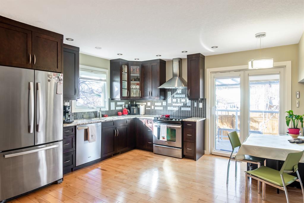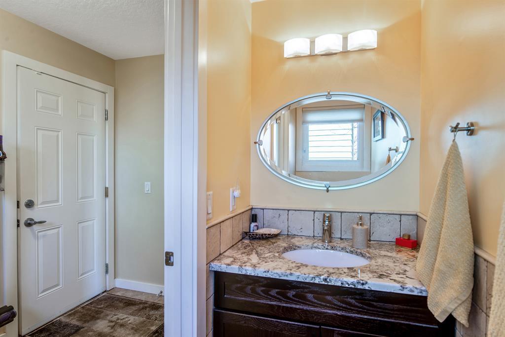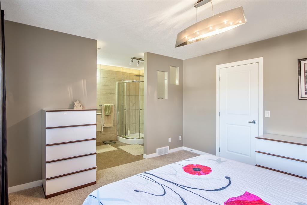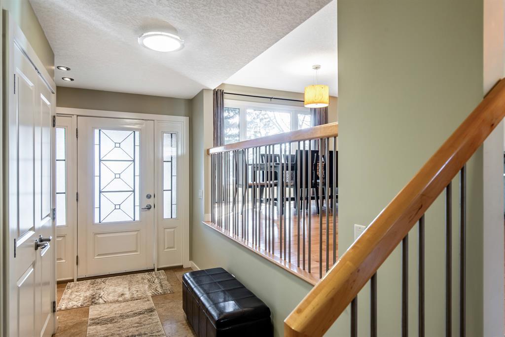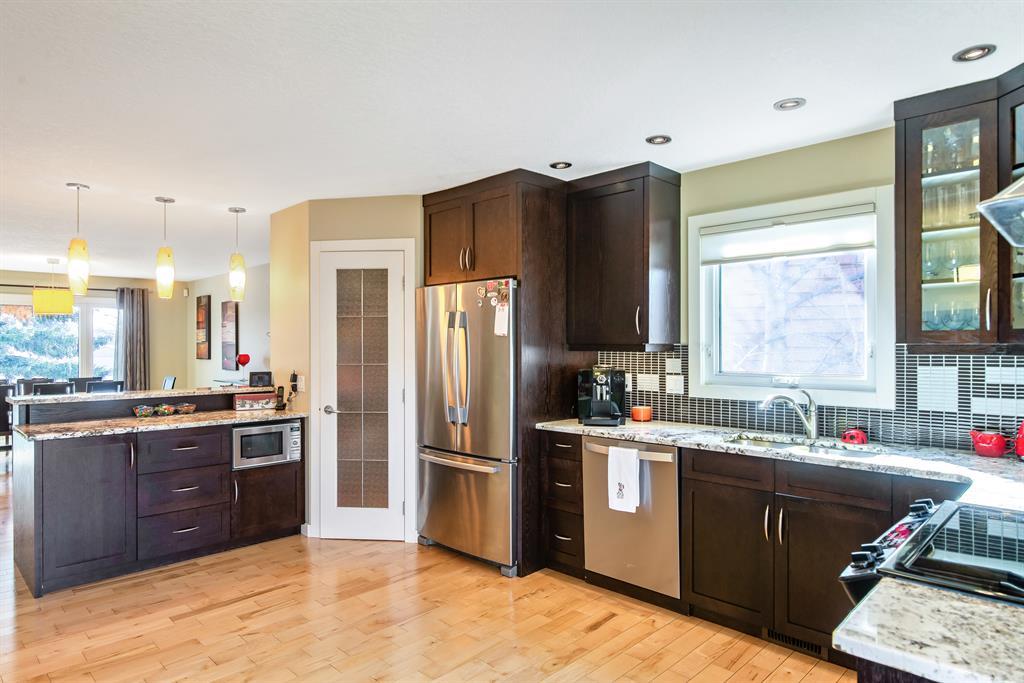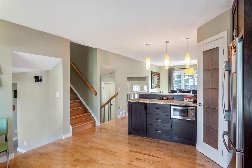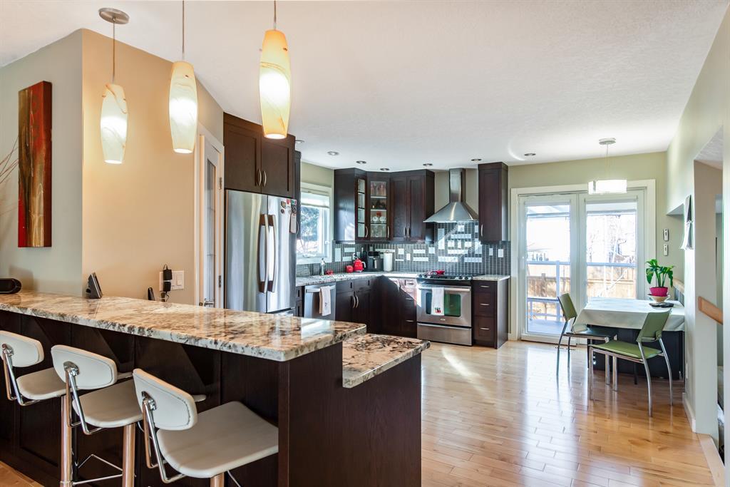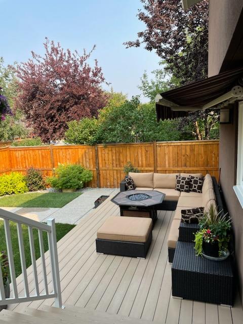Welcome home. A fully renovated interior and exterior gem, this IS the one. In a quiet cul-de-sac close to Fish Creek park. All of your show home quality plus boxes will be checked on your wish list. From the front covered porch enter the glass front door with side lights the width of the front entrance, a light stone hall floor. Dinning area floor and stairs are a light hardwood with matching wood topped metal spindle railings. This hardwood floor extends in to the kitchen, where you will find granite counters, a four place eat at peninsula with storage cabinets and a build in Microwave, walk-in pantry, ceiling height kitchen cabinets, trendy back splash, recessed lighting, under mount kitchen sink, and an exhaust hood. Descend from the kitchen to living room with a stone fire place insert with circulation fan to heat to entire house, more recessed lighting. Lower level half bath with granite counter. Laundry in the hall/mud room. Enter from the hall into a tiled single car garage. Hardwood stairs lead to the second floor with more amazing renovations. Three bedrooms 2 with california walk in closets. Ensuite of the master, beautifully detailed tile walls, rail lighting, glass shower walls, contemporary rain shower, and rain glass inserts in the wall. Main bathroom is stone tiled with, a bidet, stone counter top and under mount sink with Italian taps, soaker tub with Italian tub spot, insert shelves for your bathing accessories and candles. Rainbow lighting system for your light therapy with your spa. Basement is also fully finished with hardwood floor, bedroom and an ensuite. Ten foot ceilings and ceiling fans. Tiled utility/furnace /storage room. Back deck and patio deck are set up for entertaining. glass railing and roof top the deck with a roll down sun curtain and an awning over the aggregate patio for comfortable outdoor gatherings. Aggregate walkway leads from the fenced backyard to the front of the garage driveway. Back and front yard have a variety of perennials. Decks are low maintenance composite. The exterior of the house is finished with acrylic stucco and additional Insulation was applied during the that process. All windows have been replaced. Adjustable patio door to the back deck. High Efficiency furnace ( 2019) Hot Water on Demand (2015) Security system is on a contract which can be renewed by the new owner / buyer if they prefer to continue the service. This is a one of a kind home. Nothing to do but move in. More pictures to come. (id:22211)