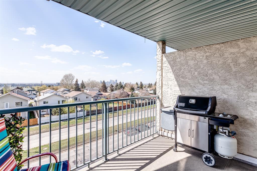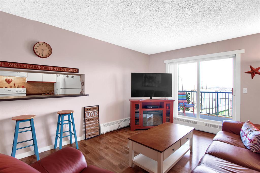 BACK ON THE MARKET DUE TO BUYER'S FINANCING FELL THROUGH---Fabulous location for this top floor 2-bedroom 1 bathroom condo ready for a quick possession. This sunny unit features an open concept living area complete with 2 bedrooms with a large closet with custom built ins and one full 4 pc bathroom. The functional kitchen provides fabulous workspace for the chef, large living room with access to the WEST facing balcony. The living space is perfect for gatherings the condo has a very convenient bonus of a laundry room + separate storage room. Off the living room through a large set of glass sliding door you'll find your private outdoor balcony with plenty of room for a BBQ and seating. Parking spots and great visitor parking. Great location near Deerfoot for ease of commute and super close to shopping and transit, and downtown! This well managed complex offers reasonable condo fees and is a must to see. Great rental or first-time buyer. A must to see, Call Today! (id:22211)