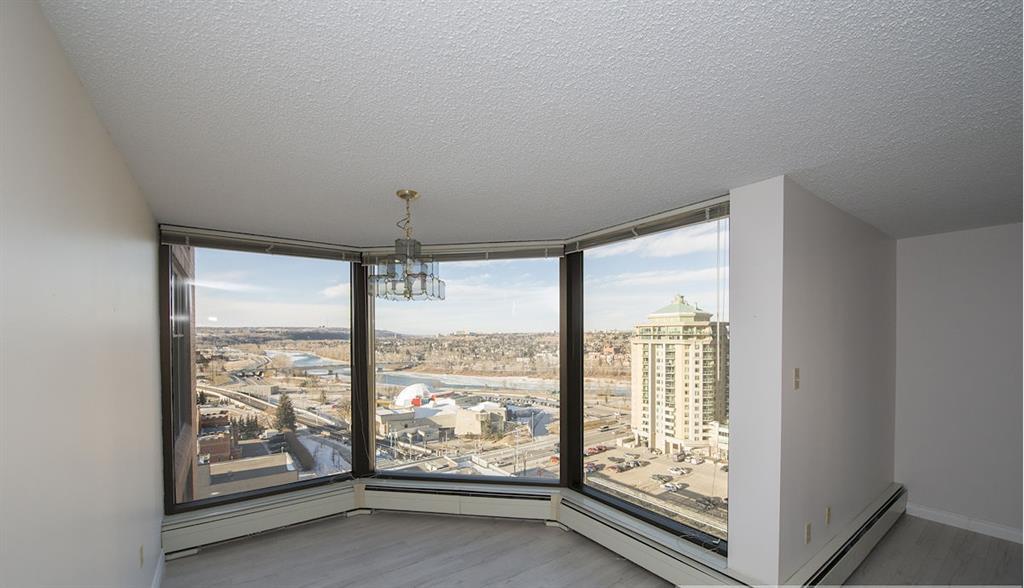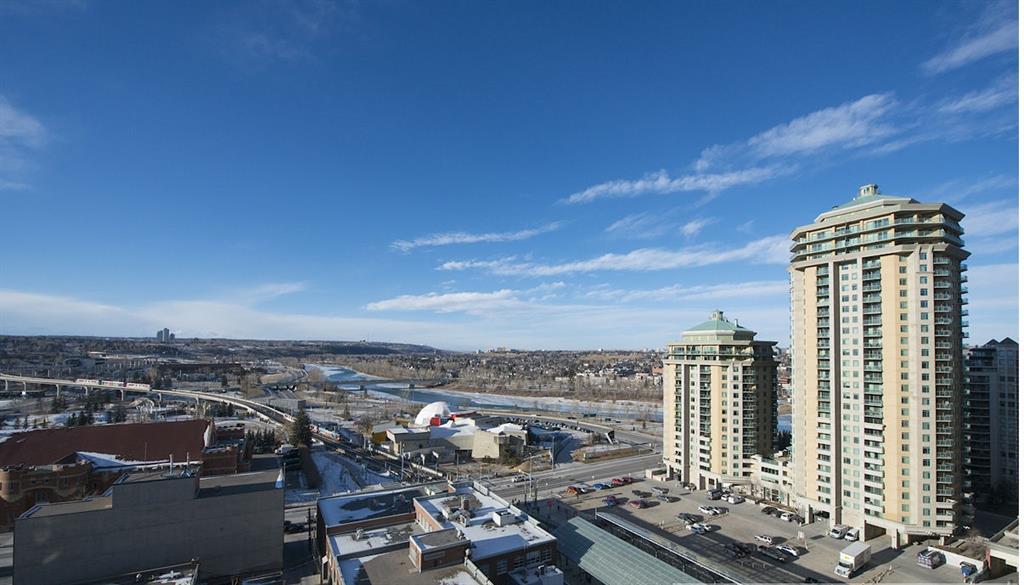 Welcome to this Sixteenth Floor, 1450+ sq. ft. luxury quiet -CONCRETE- Downtown condo. This home has two very spacious bedrooms, two bathrooms and a den. The unit has been updated over the years with new flooring and painted cabinetry. The kitchen has lots of cabinetry and stainless-steel appliances. It opens to the bright spacious, open concept living room and dining room. The Primary Bedroom is very extensive, and it has a 4 piece en-suite. The second bedroom, also large, is served by the 3-piece bathroom. The full laundry is in the unit and the W/D are fairly new. There are spectacular Mountain, City and River Views and the Oversized PRIVATE balcony overlooks the Bow River. This is a very well managed building with a 24-hour Security/Concierge service, health and fitness centre, swimming pool, Spa and steam room, racquet ball & squash courts. Heated underground parking. All these common areas have been recently upgraded. Westmount is located at the west end of DT, close to shopping, C-Train, theatres, Princess Island Park, Shaw Millennium Park and much more. (id:22211)