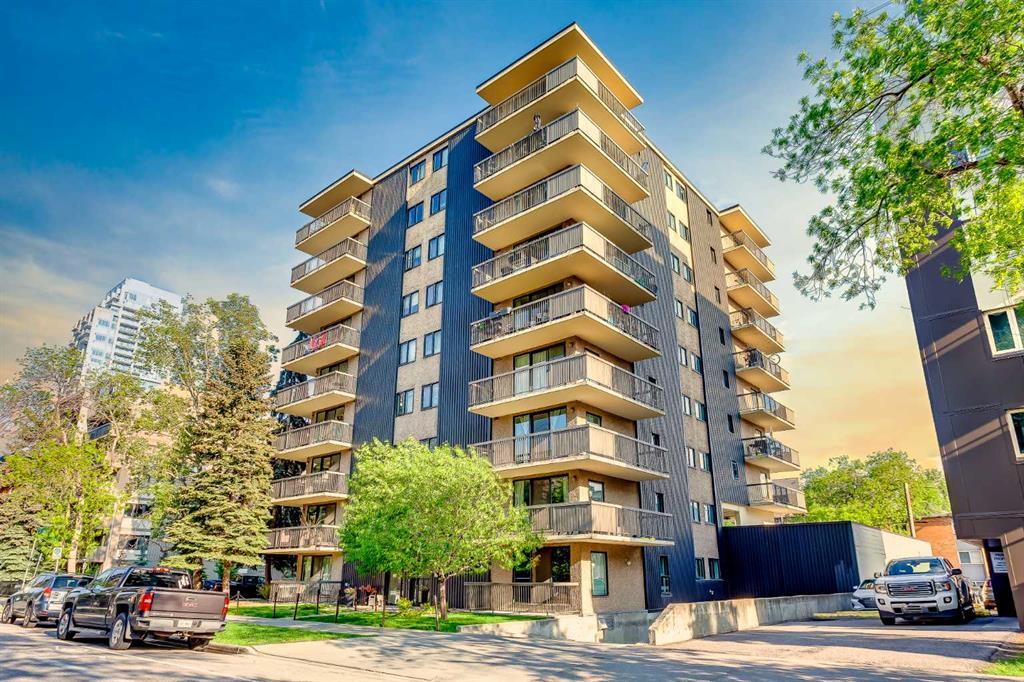 Prepare to be blown away by this stunning 2 bedroom, 1 bathroom corner unit located in the heart of the Beltline. With 779 SqFt of fully renovated space and a distinctive separate office, this modern gem offers a perfect blend of style and functionality.The kitchen boasts sleek stainless steel appliances, soft-close cabinetry, and exquisite quartz countertops with a waterfall edge, perfectly illuminated by under-cabinet lighting. The upgrades are evident throughout with laminate flooring that flows seamlessly, flat ceilings for a contemporary touch, a spacious walk-in closet in the primary bedroom, and custom Hunter Douglas blinds throughout. The secondary bedroom could easily accommodate a queen sized bed and has ample closet space. The best part about the separate office is that it allows you to actually utilize the second bedroom to the fullest potential, making this a uniquely practical unit!Enjoy the outdoors on the expansive 152 square foot wraparound balcony – a delightful extension of your living space. Located within walking distance of 17th Ave, this residence offers easy access to Calgary's finest shops while maintaining a serene and private ambiance. With in-suite laundry, additional storage, and covered secure parking, this property is sure to check all of your boxes! Don't miss this opportunity to experience urban living at its finest in a prime Beltline location.*Roof, elevator, and windows all replaced within last 10 years. Very well managed building.* (id:22211)