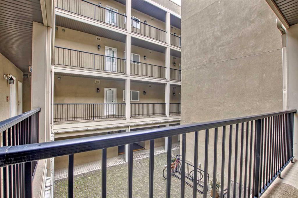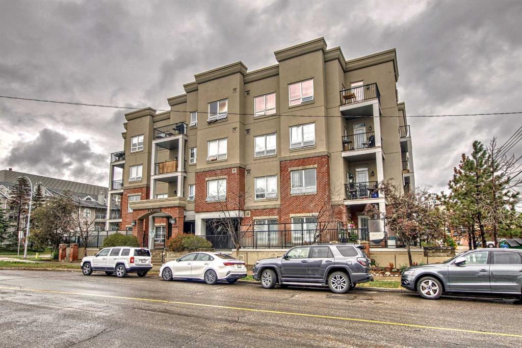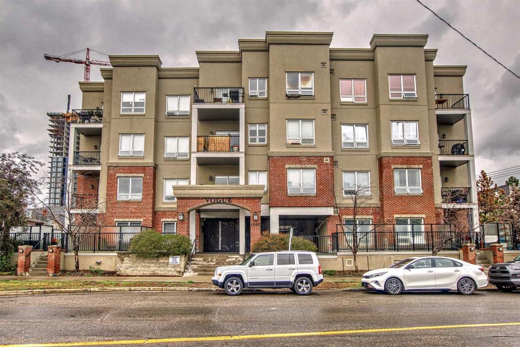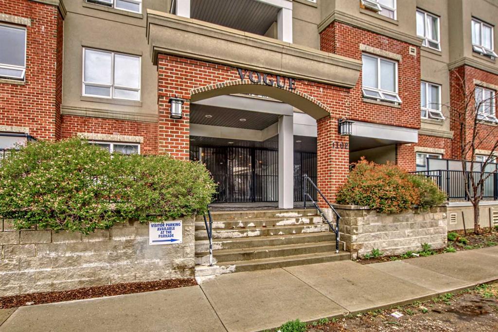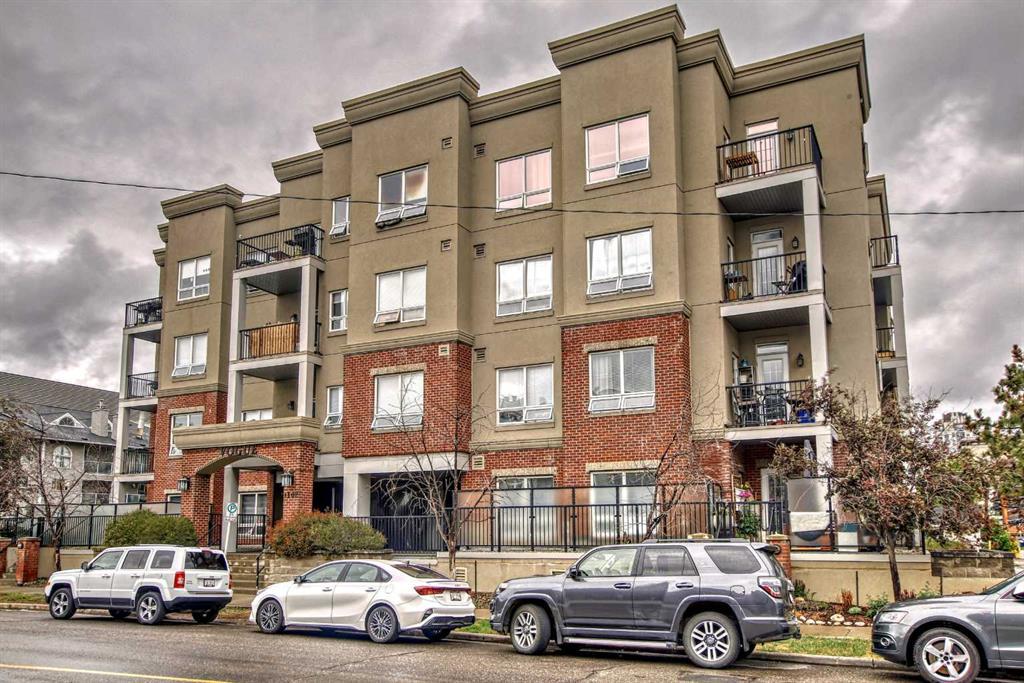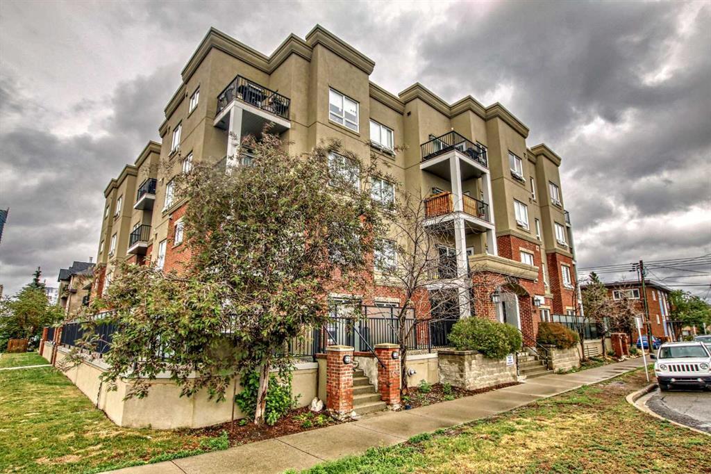 Welcome to this popular condo complex - The Vogue! Can't beat inner city living in this location - within walking distance to restaurants, shops, breweries, grocery stores, etc. Not much further away is the Bow River pathways, Kensington and 17th Avenue that's full of any kind of entertainment that you would want. Walking through the secured gates you will find a lovely cobblestone courtyard that's a perfect place for visiting. Once inside the home you will find a great kitchen with stainless steel appliances, granite counter tops and a sit up breakfast bar. This overlooks the living room with hardwood flooring and sliders to open up for fresh air. The primary bedroom is just off the living room and access to the full bathroom. For added convenience there is in-suite laundry and storage as well as a titled parking stall in the heated underground parkade. Perfect for first time home buyers or those that are tired of paying rent. (id:22211)
