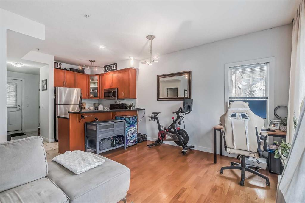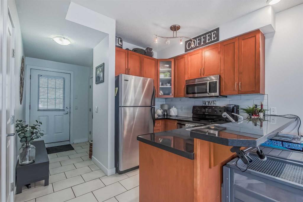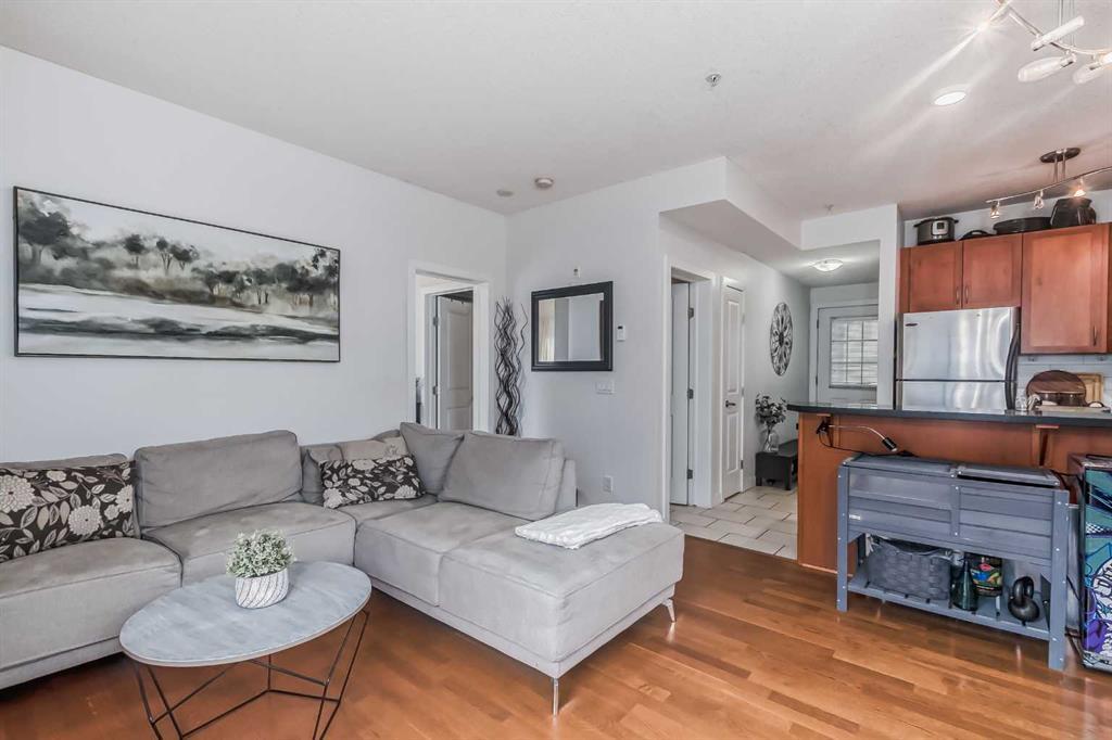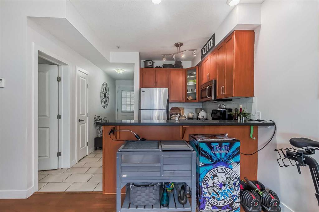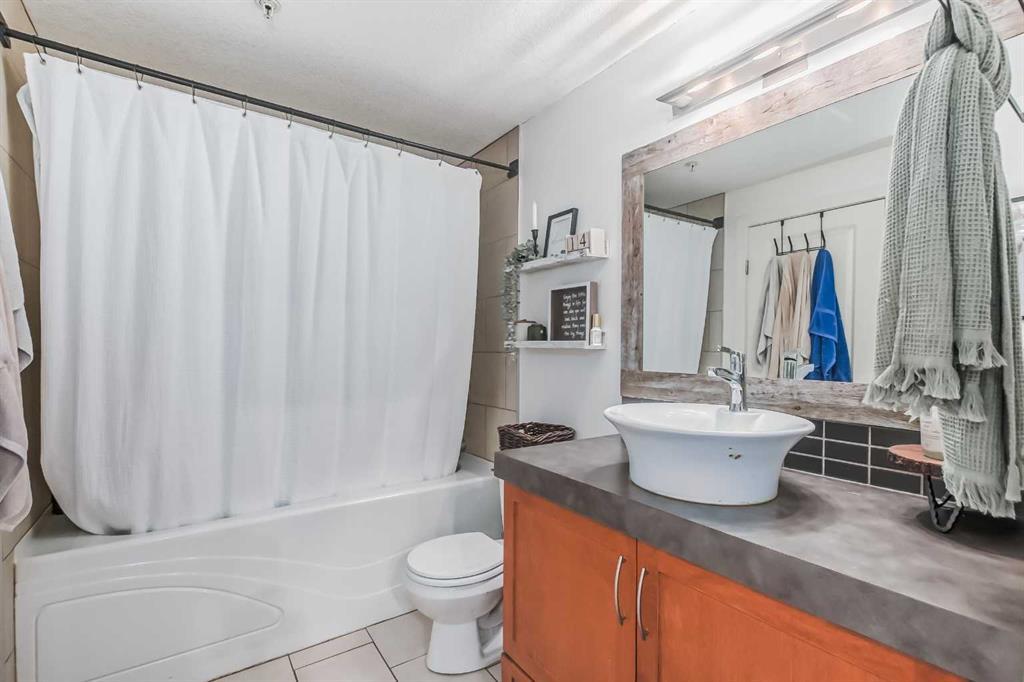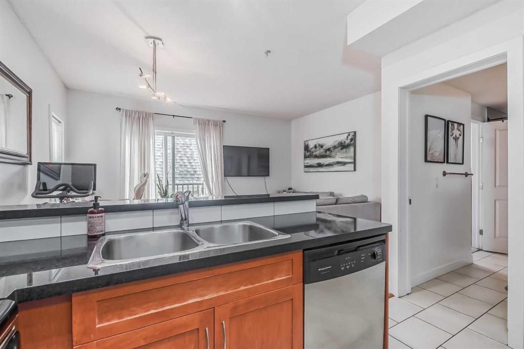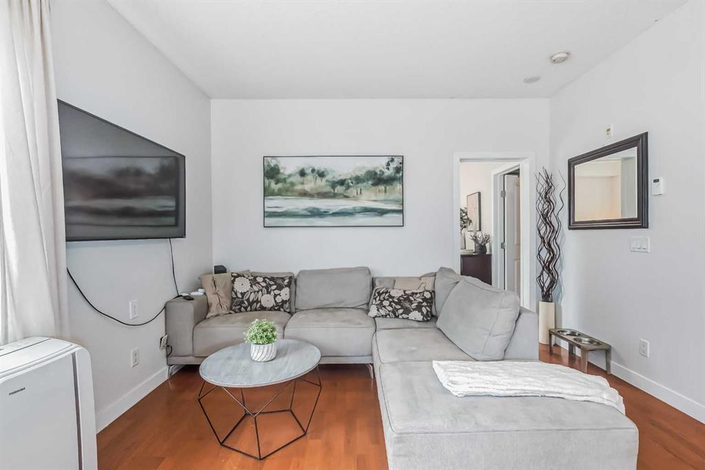Welcome to this popular condo complex - The Vogue! Can't beat inner city living in this location - within walking distance to restaurants, shops, breweries, grocery stores, etc. Not much further away is the Bow River pathways, Kensington and 17th Avenue that's full of any kind of entertainment that you would want. Walking through the secured gates you will find a lovely cobblestone courtyard that's a perfect place for visiting. Once inside the home you will find a great kitchen with stainless steel appliances, granite counter tops and a sit up breakfast bar. This overlooks the living room with hardwood flooring and sliders to open up for fresh air. The primary bedroom is just off the living room and access to the full bathroom. For added convenience there is in-suite laundry and storage as well as a titled parking stall in the heated underground parkade. Perfect for first time home buyers or those that are tired of paying rent. (id:22211)