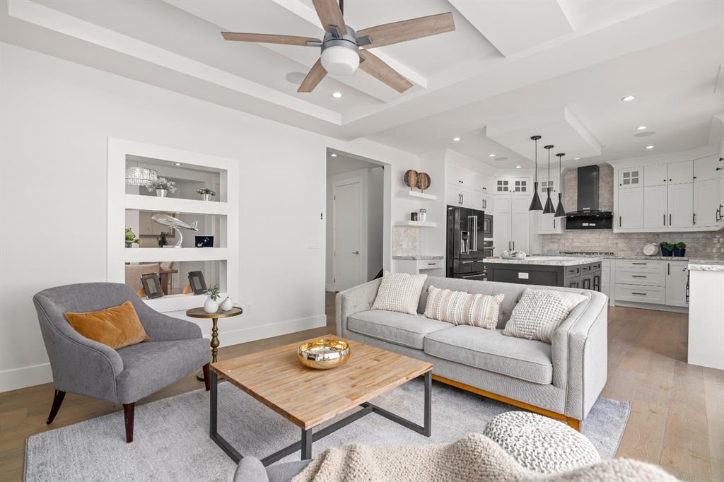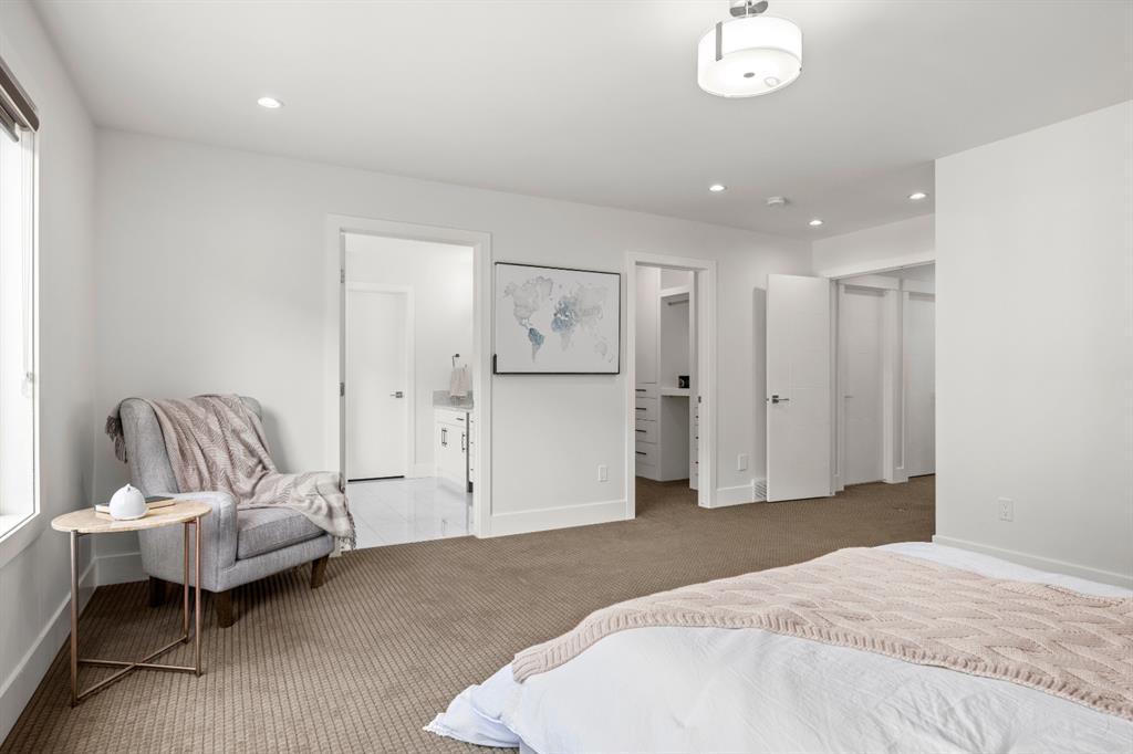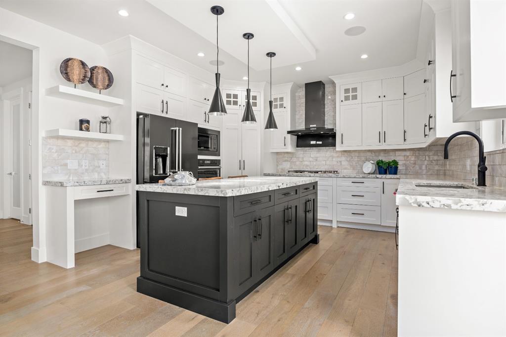 This beautiful and sophisticated home is EXCEPTIONALLY WELL MAINTAINED with a ton of UPGRADES, 4 ABOVE GRADE BEDROOMS plus a 2 BEDROOM FINISHED ILLEGAL BASEMENT SUITE and an immaculate designer’s style. Nothing left to do but move right in! Situated on a QUIET CUL-DE-SAC with stunning curb appeal that immediately impresses. The interior is meticulously crafted with NEUTRAL HUES, ENGINEERED HARDWOOD FLOORS, STONE COUNTERTOPS throughout, FLAT PAINTED CEILINGS, built-in SPEAKERS, CUSTOM WOOD SHELVING, DESIGNER LIGHTING and much more! The expansive tiled foyer greets guests with a casual elegance that continues throughout the open and airy main floor. Culinary creativity is inspired in the CHEF’S DREAM KITCHEN featuring stone countertops, a plethora of full-height cabinets, SPECIAL EDITION STAINLESS STEEL KITCHEN AID APPLIANCES, a GAS COOKTOP, undercabinet lighting, a large breakfast bar island, a pantry for extra storage and a handy tech desk for homework or catching up on emails. Oversized windows stream natural light into the adjacent living room inviting you to put your feet up and relax in front of the FLOOR TO CEILING BRICK ENCASED FIREPLACE flanked by built-ins. Come together over a delicious meal in the timeless dining room with coffered ceilings and designer lighting adding a causal elegance. This level is completed by an enclosed office space, a powder room conveniently off of the entry and a mudroom with built-in storage to hide away the seasonal clutter. Gather in the upper level VAULTED BONUS ROOM overlooking the street for some downtime - this extra space is a great multipurpose room to enjoy hobbies while the kids play or watch a movie, read a book or enjoy some music. The MASTER IS A RELAXING RETREAT with plenty of room for KING-SIZED FURNITURE, a huge WALK-IN CLOSET with custom wood shelving and a LUXURIOUS ENSUITE featuring DUAL SINKS, a JETTED SOAKER TUB and a full tile SEPARATE SHOWER. All 3 additional bedrooms are very spacious, each has its own wal k-in closet and share the opulent 5-PIECE FAMILY BATHROOM with dual sinks. Also on this level is a HANDY UPPER LEVEL LAUNDRY ROOM with sink and storage. The indulgent upgrades continue into the FINISHED BASEMENT including a full kitchen, large rec room, 2 additional bedrooms and a lavish 4-piece bathroom making it a perfect retreat for extended family members or older children still living at home but need more privacy. Unwind or host summer barbeques on the GROUND LEVEL CONCRETE PATIO in the beautifully landscaped and private yard. The front facing DOUBLE ATTACHED GARAGE IS FULLY INSULATED and complete with an oversized door and hose bib. All this and an UNSURPASSABLE LOCATION within walking distance to Kenneth D. Taylor and Our Lady of Grace Schools and mere minutes to Evanston Towne Centre’s shops and restaurants. Parks and the extensive pathways that wind around the environmental reserve in this extremely family-friendly community are also nearby. (id:22211)