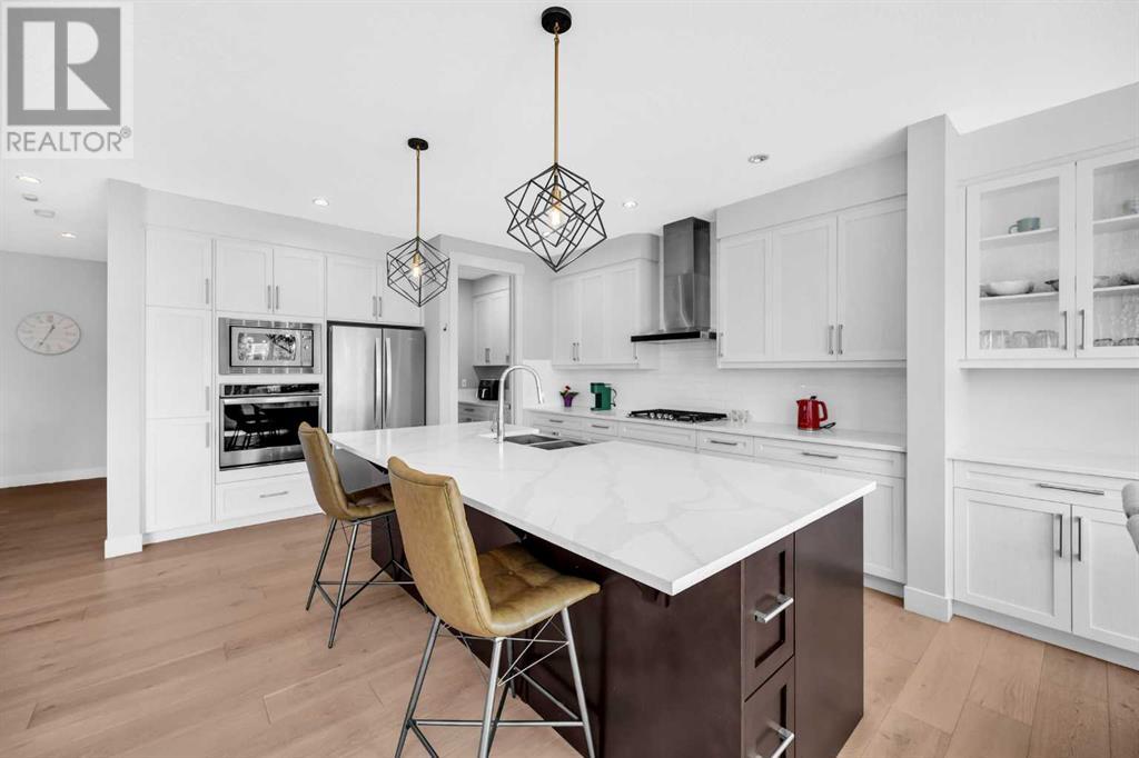 3,200 SQFT OF DEVELOPED SPACE | WALKOUT BASEMENT | BACKING ONTO GREENPATH I STEPS TO UPCOMING K-9 SCHOOL Welcome to your home!! - a perfect blend of luxury, convenience, and a fantastic location. Main Floor:As you enter, you're greeted by a welcoming foyer with elegant ceramic tile flooring .The spacious living room under the COFFERED CEILING, with a cozy FIREPLACE is perfect for warming those quiet evenings or entertaining gatherings. The LUXURY VINYL PLANK flooring adds a touch of sophistication. Moving into the kitchen, you'll love the ample counter space of the OVERSIZED ISLAND, the sleek look of CABINETS TO THE CEILING, and the functionality of the gas cooktop, built-in microwave,oven, and a BUTLER'S KITCHEN with a SECOND SINK for extra prep space. The dining area, with its BUILT-IN CABINETS and OVERSIZED WINDOWS, offers a perfect spot to enjoy meals while overlooking the serene green path. Step outside onto the deck, where you can unwind with MOUNTAIN VIEWS and the tranquility of nature.Upper Floor:The EXPANSIVE Primary Bedroom invites you to relax in luxury, with a 5-piece ensuite featuring HEATED FLOORING, DOUBLE VANITY, a large SOAKER TUB, and a spacious walk-in closet. Imagine the comfort of two additional large bedrooms with enough space for KING-sized BEDS for your dear ones. The Bonus Room, with its COFFERED BEAMS and second FIREPLACE, is perfect for entertainment. The laundry room, well-equipped with CABINETS, and an additional FLEXI ROOM add convenience. A full 4-piece bathroom with DOUBLE VANITY completes this level.Walkout Basement:Expand your living space with a finished rec room, with WET BAR, perfect for movie nights or game days. An additional bedroom and a 4-piece bathroom provide additional living quarters.Other Upgrades:CUSTOM BLINDS, 9 FEET CEILINGS, 8 FEET DOORS, WIRING FOR HOT TUB, EXPOSED AGGREGATE PATIO, ACCENT WALLS, METAL SPINDLES ON STAIRCASE RAILING, CENTRAL VACUUM, AIR CONDITIONER, EPOXY FLOORING and INSULATION IN GARAG E.Beyond Your Doorstep:Just steps away from the famous Legacy Ponds, a 300-acre environmental reserve, a smaller shopping center featuring a gym and an upcoming K-9 school - this exceptional location places you at the heart of a thriving community. The expansive Township shopping center, just minutes away, offers additional shops, restaurants, and fitness centers to ensure all your daily needs are within reach.Don't miss this opportunity to own a piece of paradise! Contact us, or your realtor today to schedule a viewing and make this dream home yours! (id:22211)