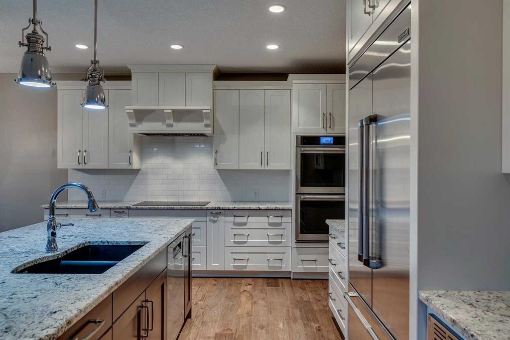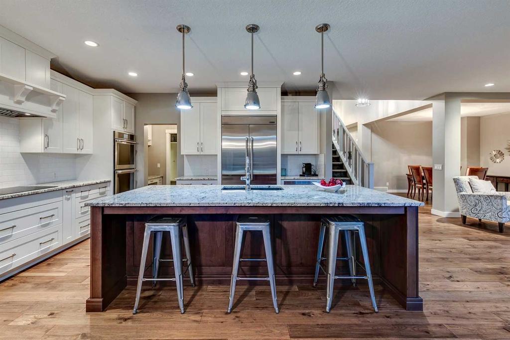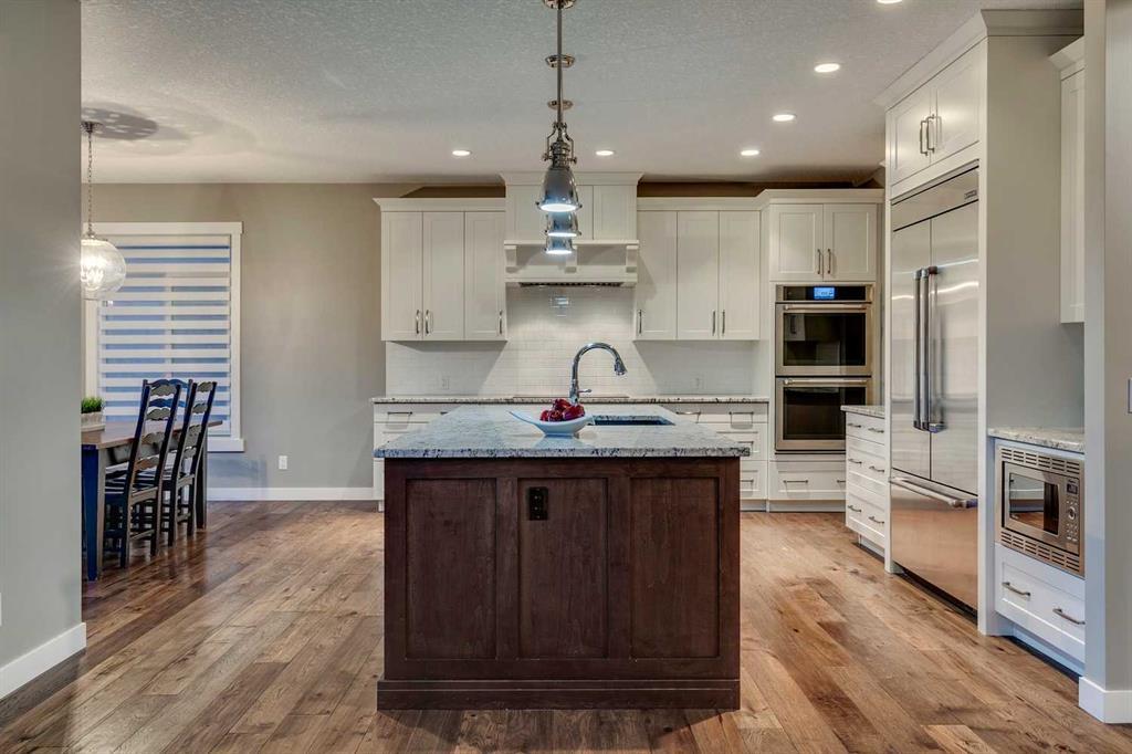 Welcome home on a large corner lot which has 5 bedrooms, Central AC x2, an oversized Triple Garage (with outdoor mud room), massive Bonus Room, two Home Offices and lots more! Gorgeous hardwood floors welcome you into the main level which includes a front office, formal dining room, wonderful living room with gas fireplace, stunning Chef’s kitchen, butlers pantry, mud room with built-ins and a 2pc bath. Large windows allow for plenty of natural light and have wonderful views! The kitchen features a large centre island with breakfast bar, high end appliances, lovely white cabinetry, full pantry & home management center (built-in desk, cupboards, 6 mail slots, drawers, cork board and filing drawers)! Head on upstairs where the spacious design continues into the HUGE bonus room with a second home office behind, the amazing primary suite with a 5pc ensuite and his & hers closets, 2 more bedrooms each with their own walk-in closet (one has it’s own 4pc ensuite!), and a good sized laundry room. The fully developed basement has lots of space to entertain and relax… large rec area, 2 more large bedrooms and another 4pc bath. Outdoor living includes a HUGE deck PLUS plenty of yard space AND it has private access to the walking path behind... You will love the lifestyle Riverstone offers with the perfect blend of city life and amenities AND lovely nature and outdoor living. The Bow River is just a short stroll away and you will be able to enjoy bird life and nature at it's finest. This is truly a must see home… Don’t miss out! (id:22211)