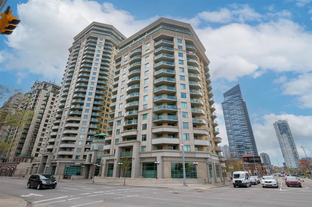 Highly desirable location! This 1 bedroom 1 bath second floor corner unit offers all you need for downtown condo living. Situated in the West End with VIEWS of the BOW RIVER. Enjoy tons of sun on your private NW facing balcony. Take advantage of the many amenities this building offers including pool table room, table tennis room, fitness facility and outdoor common area patio! Heated underground titled parking stall. Central location steps away from the Bow River pathways, LRT station, amazing restaurants & shopping! This opportunity can’t be beat! Book your private showing today. Some images have been digitally staged. (id:22211)