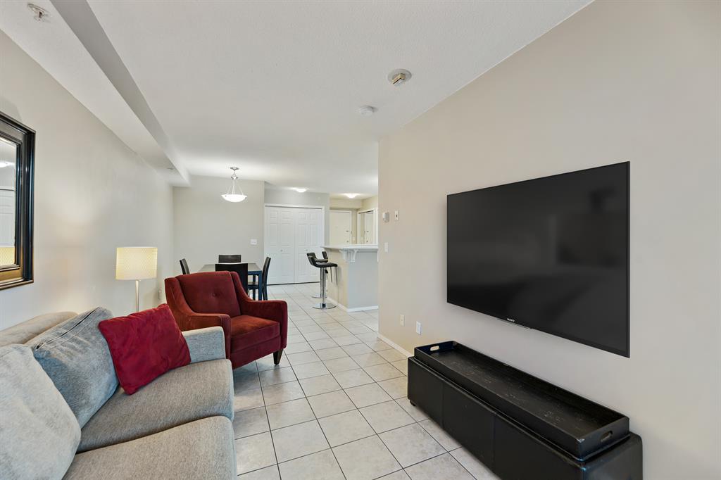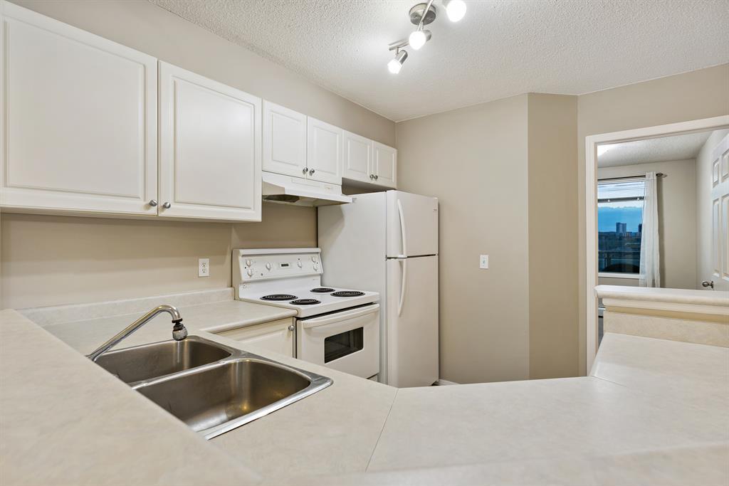 LIVE IN THE CENTER OF IT ALL - 8th FLOOR, Clean + SPACIOUS UNIT comes with a RARE, DOUBLE VEHICLE SIZED, Secure, Titled, Underground, + HEATED PARKING STALL large enough to fit "TWO VEHICLES". NO it is NOT a MISS PRINT...........TWO VEHICLES actually fit into the 1 STALL!!! It is SUPER UNIQUE. WELCOME to the DISCOVERY POINTE a Great High-Rise in a Central LOCATION!!! This unit has a WELCOMING Spacious FOYER w/DOUBLE Closets + is Decorated in NEUTRAL tones, has an open concept LARGE kitchen w/open shelving, + a Raised Island Eating Bar, w/MATCHING appl, White cabinetry, adjacent to the Spacious Dining area. A Primary Bedroom offers a Convenient closet + GREAT Views on to the Balcony . A Spacious Living room leads out to the NORTH Facing 16'2 X 5'7" Covered BALCONY facing the River + River Valley w/GREAT VIEWS! A Convenient Stacked Laundry + 4 pc Bath complete the Great Layout. Bright + open concept floor plan, perfect for the first/time home buyer or a great investment property. The building is secured with FOB entry + full time security personnel. Secured BICYCLE storage! Check out the Well-Equipped Fitness Centre, Roof Top Terrace, Lounge, + Party Room. Located just steps to the Downtown West/Kirby LRT Station, the Bow River Pathway System, shopping, and fantastic restaurants. Come experience all that this elegant sanctuary has to offer. SO CLOSE to TRANSIT, 17th Ave INCREDIBLE Restaurants + SHOPPING. Make sure you BOOK your SHOWING TODAY as these type of parking options are HARD to FIND!!! (id:22211)