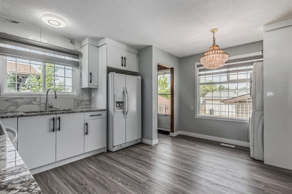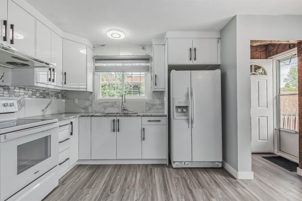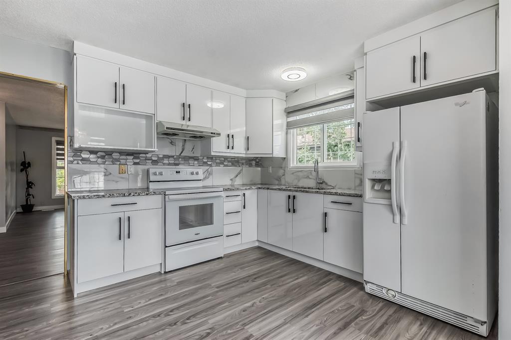 Location, location, location! Welcome to this stunning, fully renovated, detached 5 -bed house with an illegal suite, nested in the community of Falconridge. As you enter, the upper floor of this residence presents an open, inviting and spacious living and dining space. The modern kitchen boasts luxurious granite countertop that provide ample space for meal preparation and entertaining guests. The white modern cabinets allow plenty of storage. Tucked away on the same level are three generously sized bedrooms, and a 4- piece bath. The master bedroom features a wide closet and 3-pc ensuite bath. Venture downstairs to discover the illegal basement suite, designed with comfort in mind. Boasting a big size living room with a cozy wood fireplace, kitchen, two bedrooms and a 4pc bath. This space offers flexibility for various living arrangements, whether you decide to use it as a mortgage helper (live up and rent down), guest quarters, or extra space for your growing family. Close to many local amenities, transit, shops, schools, groceries and restaurants - all making this nice home a must to see. Don't wait – call today and book a showing with your favourite agent! (id:22211)