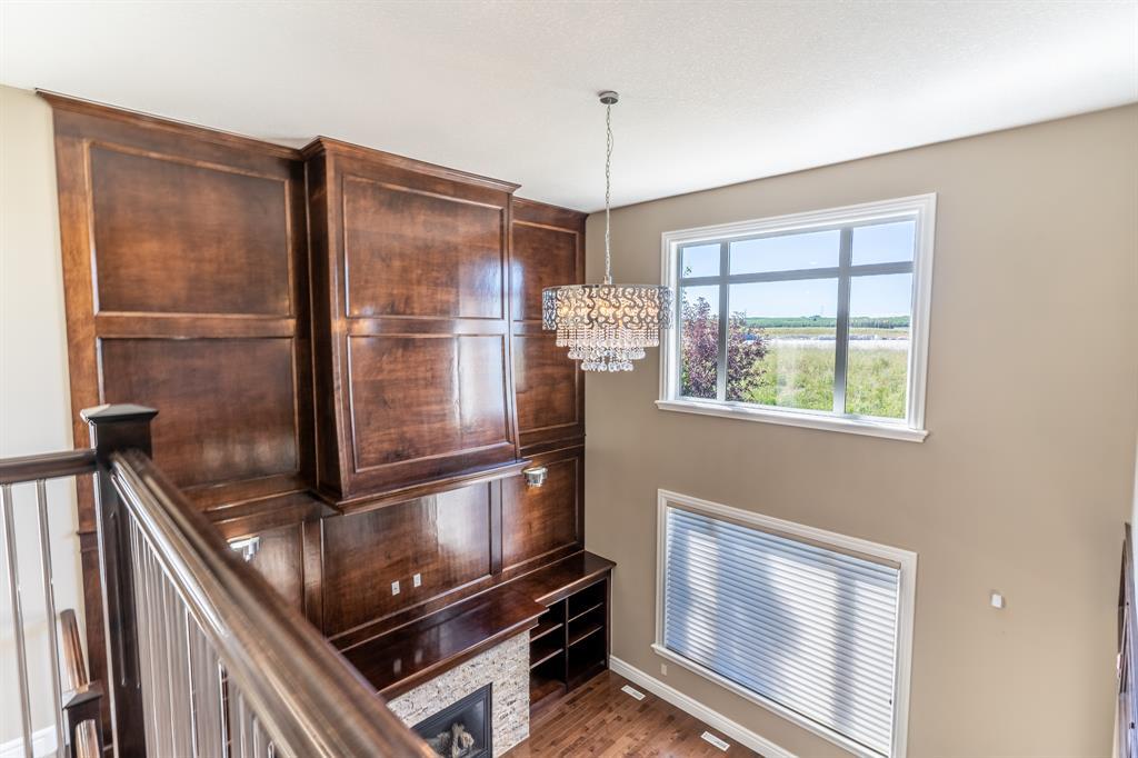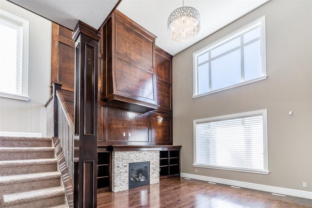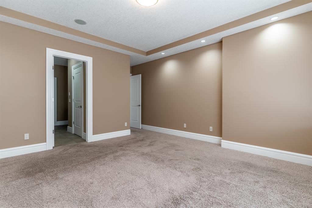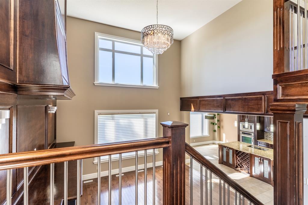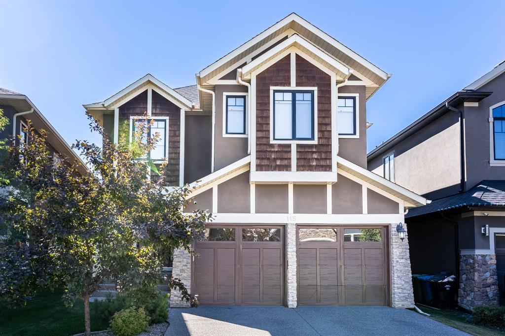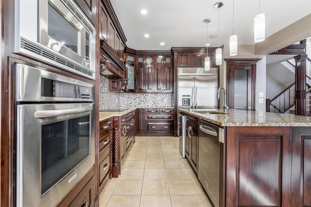 Welcome to your stunning new estate home located in the sought-after Wentworth Hill SW neighborhood. The exterior of the house is truly impressive, with stone pillars, metal clad Low-E windows, and an exposed aggregate driveway that leads to your twin door double garage. This spacious home boasts 4 bedrooms and 2.5 bathrooms and was previously a show home, featuring luxurious touches throughout.Step inside, and you'll find yourself in a well-appointed space adorned with upgraded trim, baseboards, crown moulding, and custom woodworking. LED lighting and ceiling speakers are tastefully spread throughout the home, creating a welcoming ambiance. The bright and open floor plan seamlessly combines areas for relaxation, cooking, entertaining, and even working from home, thanks to the main floor study.The kitchen is a true masterpiece, with extravagant custom cabinets, beautiful granite countertops, and stainless steel appliances. A central island with a wine rack and beverage cooler adds a touch of elegance, while the tile backsplash and glass top stove with a built-in microwave and oven complete the modern look.The great room is a highlight of the home, boasting a soaring 20ft ceiling, oversized windows, and a skylight that floods the space with natural light. Hardwood floors, a chandelier, and a striking two-storey wood mantel surrounding the gas fireplace add to the grandeur.The spacious master bedroom and ensuite bathroom are a private retreat within the home. The master suite features separate double enclosed closets, his and her sinks with granite countertops, a luxurious soaker tub, and a stunning 5-faucet tile shower.Three additional bedrooms are complemented by a deluxe media room, a full bathroom with floor-to-ceiling tile, and a convenient top floor laundry room.Stepping outside, you'll discover a backyard designed for relaxation and entertainment. An oversized vinyl deck, protected by a glass railing, provides the perfect space for outdoor gathering s. A natural gas BBQ hookup is available for grilling enthusiasts, and a pergola offers a shaded area to enjoy the evening sunsets.Welcome to your new home, where luxury, style, and comfort come together in perfect harmony. (id:22211)
