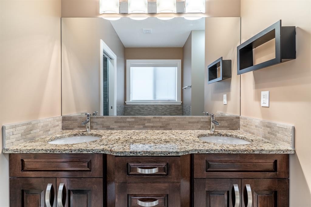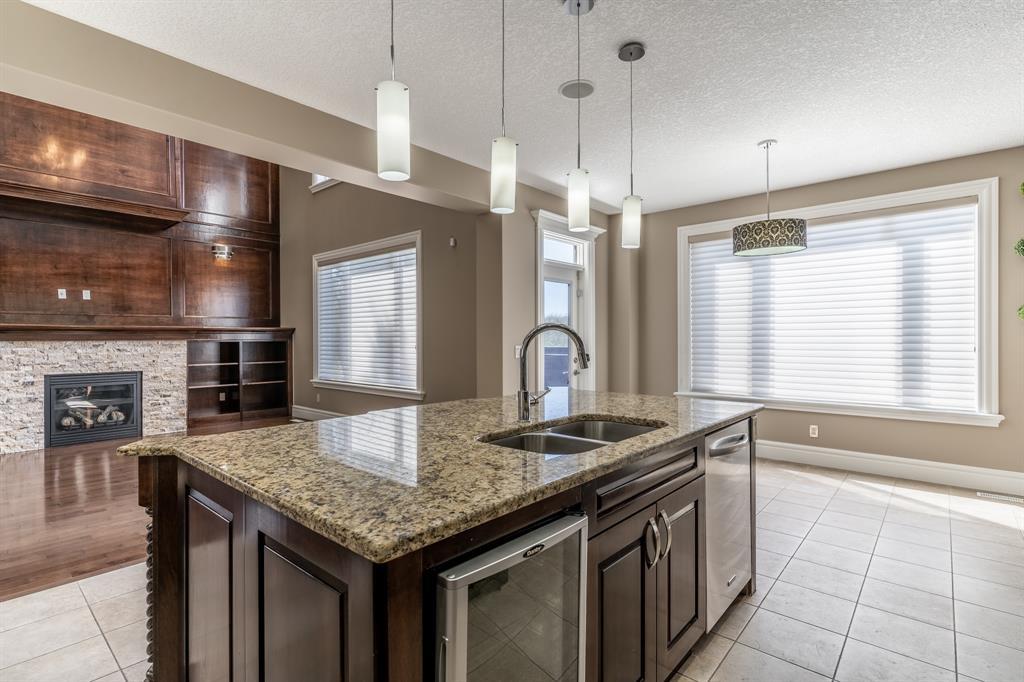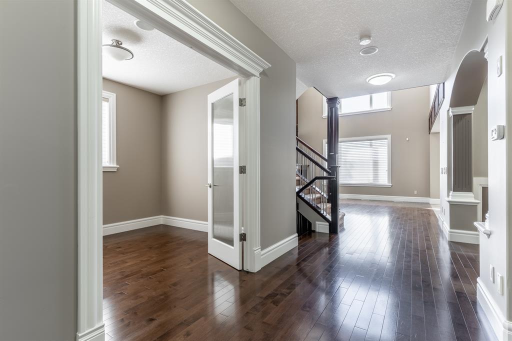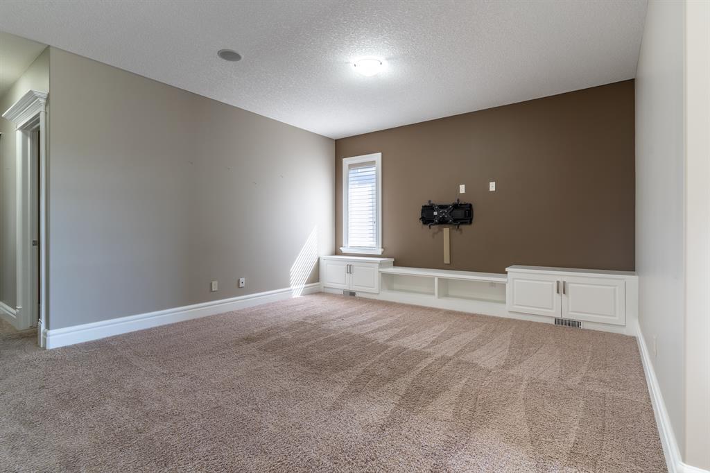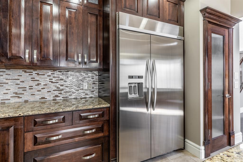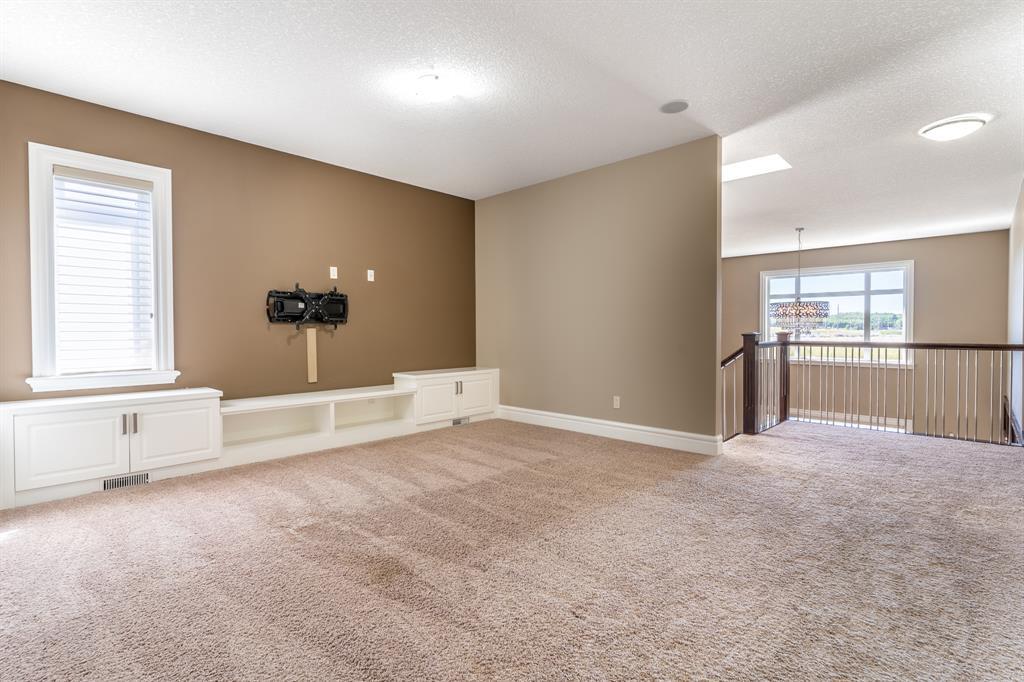 Welcome to your stunning new estate home located in the sought-after Wentworth Hill SW neighborhood. The exterior of the house is truly impressive, with stone pillars, metal clad Low-E windows, and an exposed aggregate driveway that leads to your twin door double garage. This spacious home boasts 4 bedrooms and 2.5 bathrooms and was previously a show home, featuring luxurious touches throughout.Step inside, and you'll find yourself in a well-appointed space adorned with upgraded trim, baseboards, crown moulding, and custom woodworking. LED lighting and ceiling speakers are tastefully spread throughout the home, creating a welcoming ambiance. The bright and open floor plan seamlessly combines areas for relaxation, cooking, entertaining, and even working from home, thanks to the main floor study.The kitchen is a true masterpiece, with extravagant custom cabinets, beautiful granite countertops, and stainless steel appliances. A central island with a wine rack and beverage cooler adds a touch of elegance, while the tile backsplash and glass top stove with a built-in microwave and oven complete the modern look.The great room is a highlight of the home, boasting a soaring 20ft ceiling, oversized windows, and a skylight that floods the space with natural light. Hardwood floors, a chandelier, and a striking two-storey wood mantel surrounding the gas fireplace add to the grandeur.The spacious master bedroom and ensuite bathroom are a private retreat within the home. The master suite features separate double enclosed closets, his and her sinks with granite countertops, a luxurious soaker tub, and a stunning 5-faucet tile shower.Three additional bedrooms are complemented by a deluxe media room, a full bathroom with floor-to-ceiling tile, and a convenient top floor laundry room.Stepping outside, you'll discover a backyard designed for relaxation and entertainment. An oversized vinyl deck, protected by a glass railing, provides the perfect space for outdoor gathering s. A natural gas BBQ hookup is available for grilling enthusiasts, and a pergola offers a shaded area to enjoy the evening sunsets.Welcome to your new home, where luxury, style, and comfort come together in perfect harmony. (id:22211)