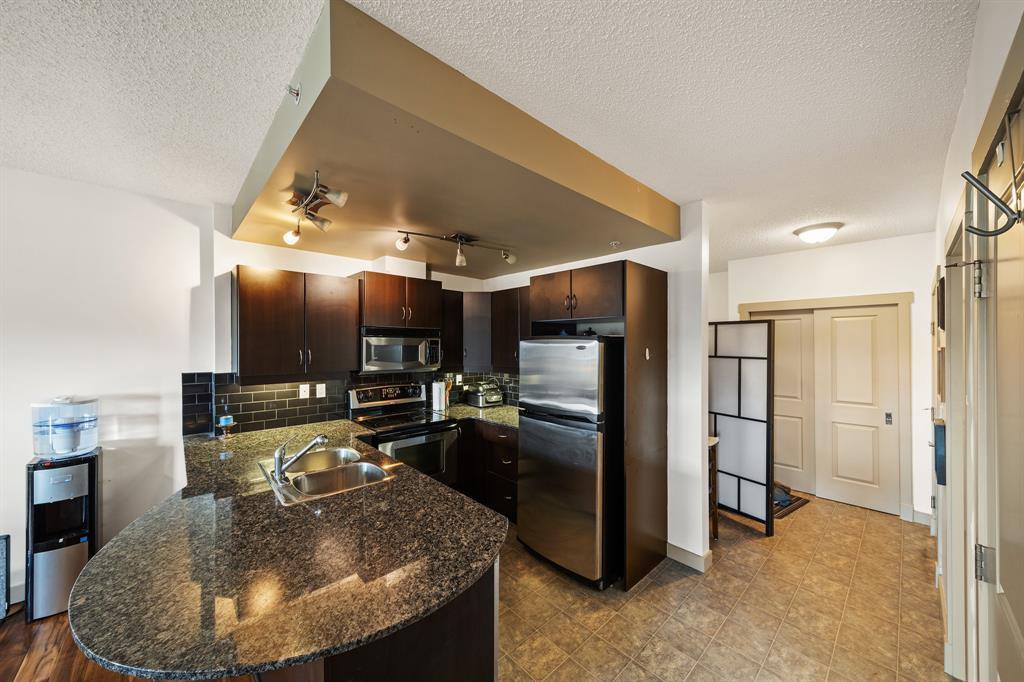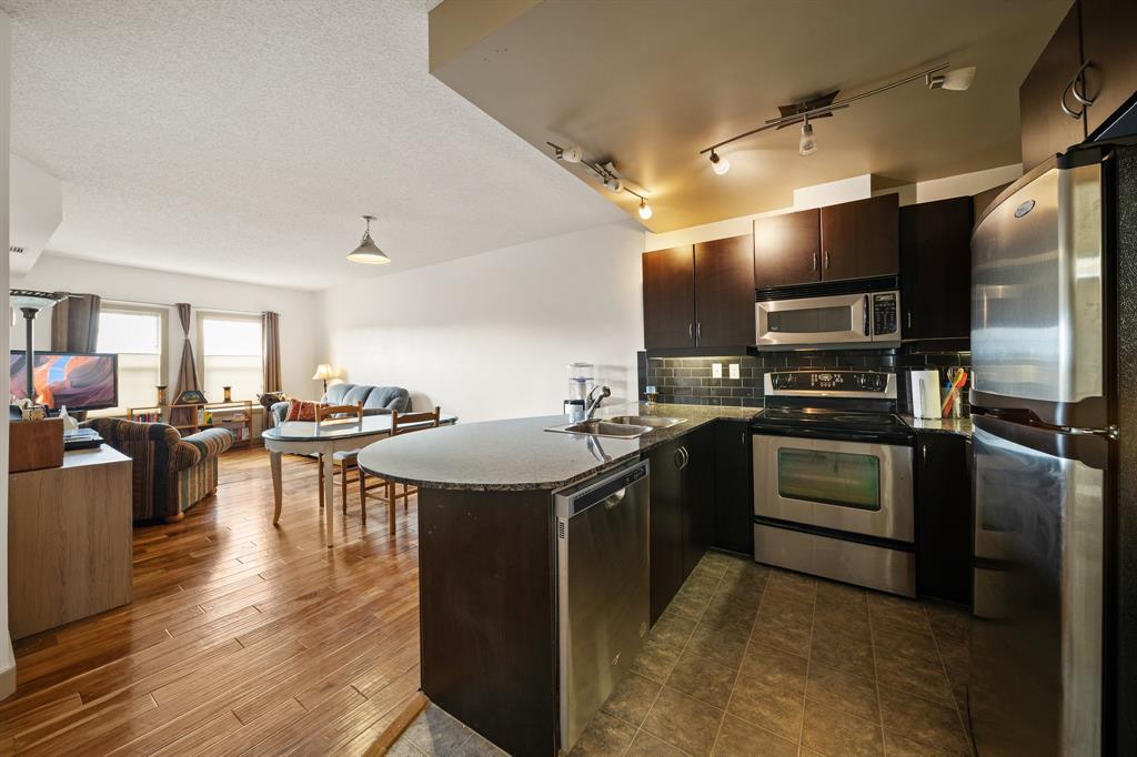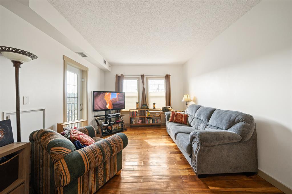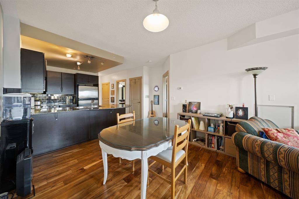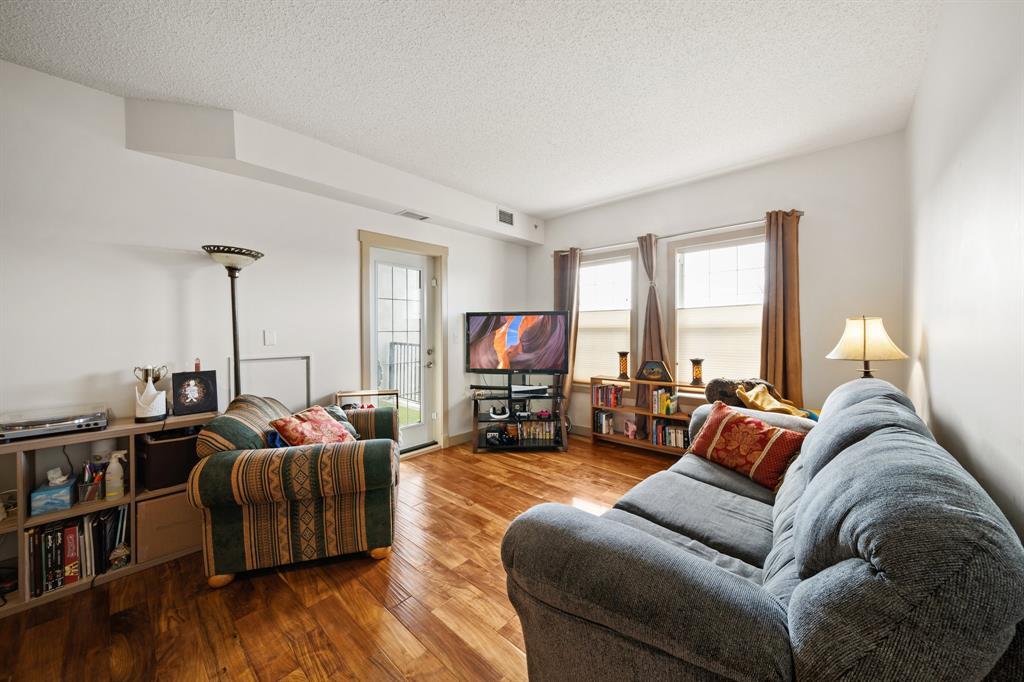 ONE BEDROOM + DEN Apartment Condo in beautiful CONCRETE Building in Lake Bonavista. BACK ON MARKET DUE TO FINANCING. This gorgeous third-floor unit showcases a modern open concept layout, with the living room boasting engineered hardwood floors & access to the private covered balcony. The kitchen is outfitted with granite counters and stainless steel appliances, along with a stylish breakfast bar. The ample living room area flows easily out onto the sunny west facing deck/balcony for those summer night barbecues. The bedroom is light & bright with large windows, giving it a very open feeling. This exceptionally convenient unit offers the comforts of Central Air-Conditioning and is ideally located in this pet-friendly complex that is loaded with amenities including a large fitness center, 2 owner’s lounges, 2 guests suites, secure underground heated parking and storage, bicycle storage and a beautiful private courtyard. The FITNESS CENTER is among the best and largest you will find in any complex. The building features Solar panels and a Geothermal Exchange system for heating and cooling with each unit having its own heat pump. The location is ideal with two C-train stations nearby and a bus route outside the front door. South Centre mall, Avenida Centre, Trico Rec Centre, schools, parks and the public library are all within a short stroll of the condo. (id:22211)