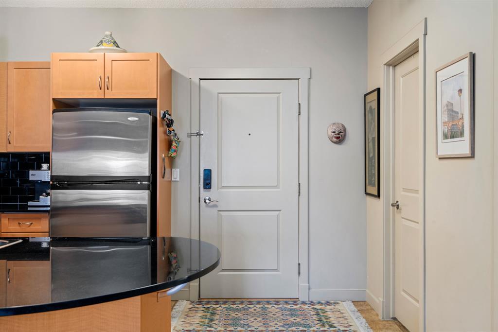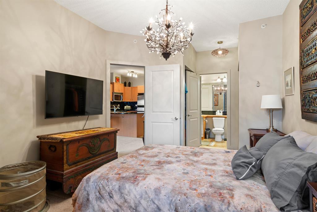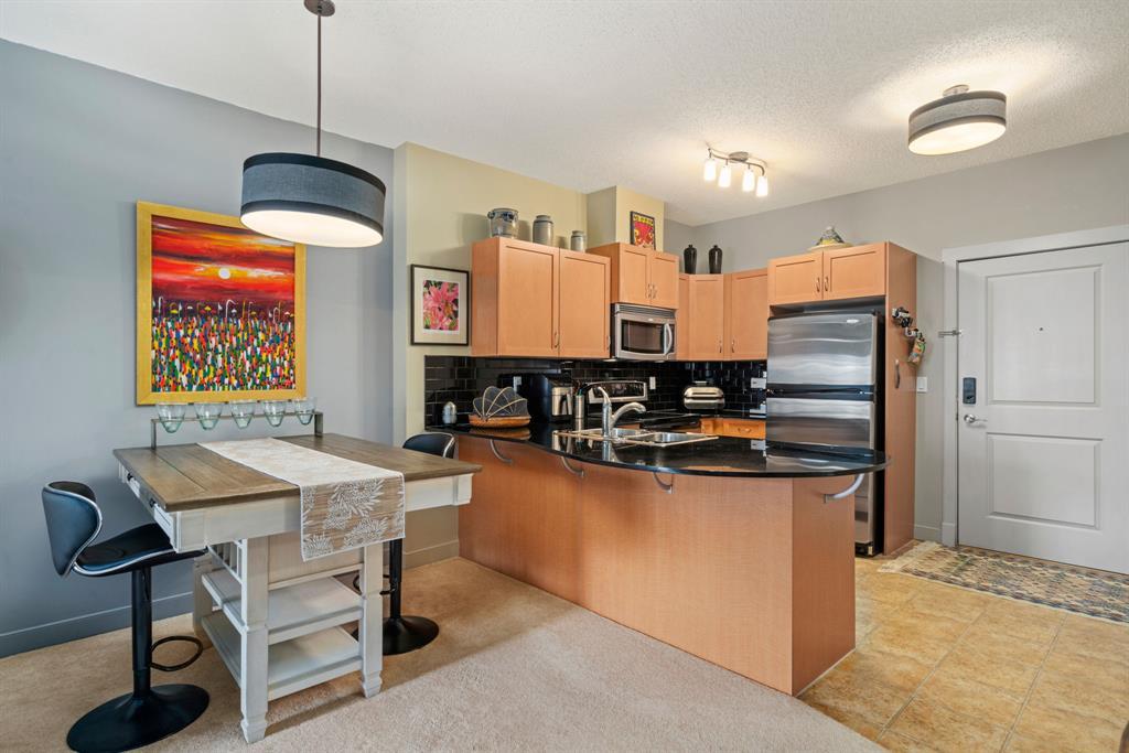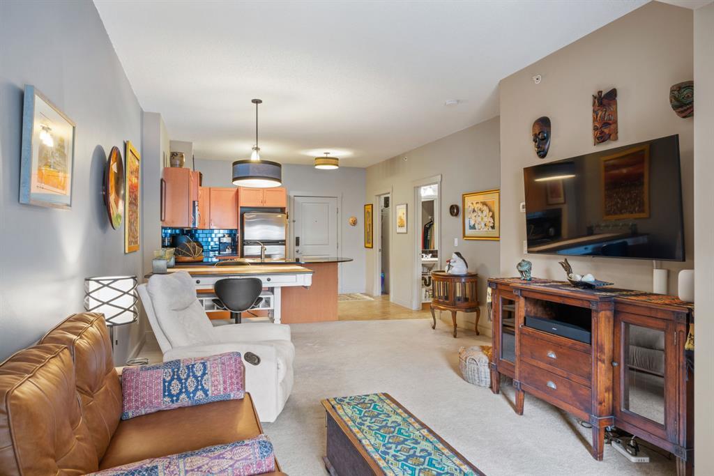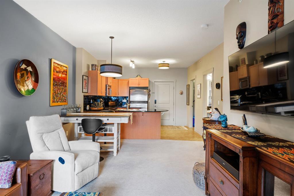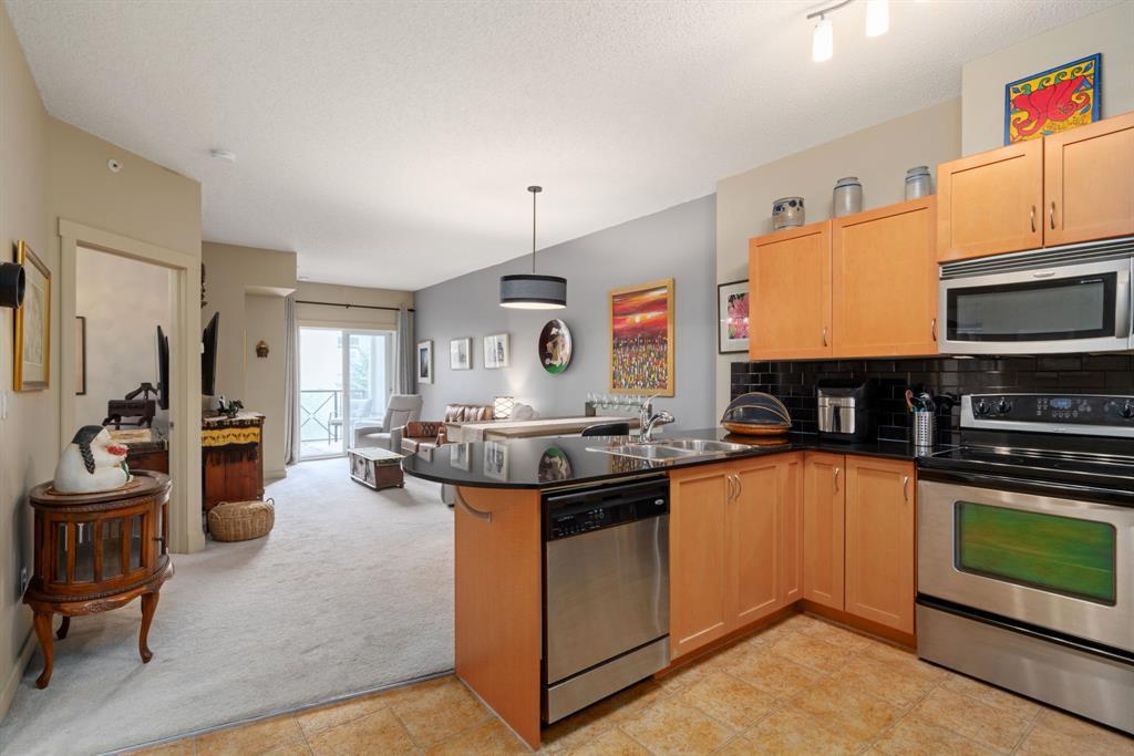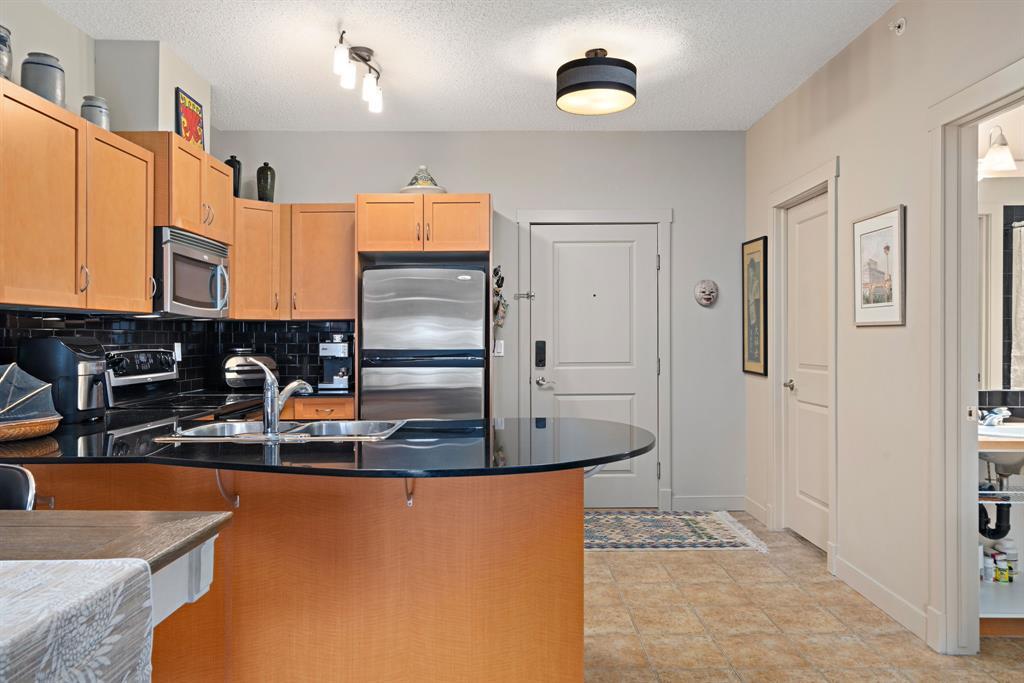 This bright and spacious condo unit features a modern open concept layout with 2 great sized bedrooms and 1 beautiful bathroom. Very well maintained, this unit features a beautiful South exposure that offers an abundance of natural sunlight and a great balcony to relax and enjoy the sunshine and fresh air. High 9' ceilings coupled with a great floor plan allows for a nice entertaining space and comfortable living. The contemporary kitchen is finished with custom maple cabinetry, granite countertops, beautiful stainless-steel appliances and center island, great for entertaining and making delicious meals! The spacious master bedroom boasts large double walk-through closets linked to a luxurious 4-piece bathroom. The unit is complete with a great sized 2nd bedroom, Central Air Conditioning, Geothermal, in-suite laundry, and storage. Included with the unit is one titled underground parking stall and assigned storage unit. Building amenities include a fitness facility, lounge area, party room, courtyard, playground, on-site management, 24-hour security and tons of visitor parking. Condo Fees includes all utilities (heat, water and electricity) and air conditioning! Unit is “Telus Fiber Optic” ready. Perfectly located, you're just minutes to shops, Southcentre Mall, public transit, restaurants and many more amenities! Don't miss out on this great opportunity - (id:22211)