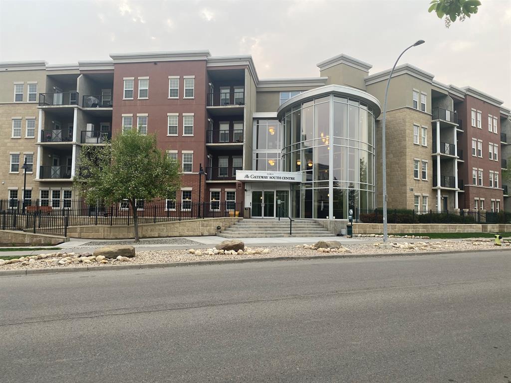 Modern and Spacious unit at Gateway Southcentre! This beautiful top floor condo features 2 bedrooms and a den, 2 full baths and a balcony that faces east overlooking the private courtyard. Many upgrades including a recently upgraded floors, 24" deep cabinets, granite counters, french doors to the second bedroom, his and hers sink in the ensuite and a gas barbecue hookup. There is an owner's lounge, fitness room, party room, and guest suite. Close to all amenities, easy access to public transportation. (id:22211)