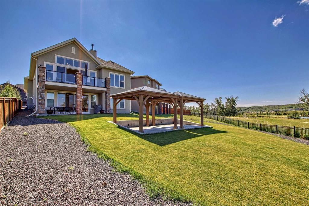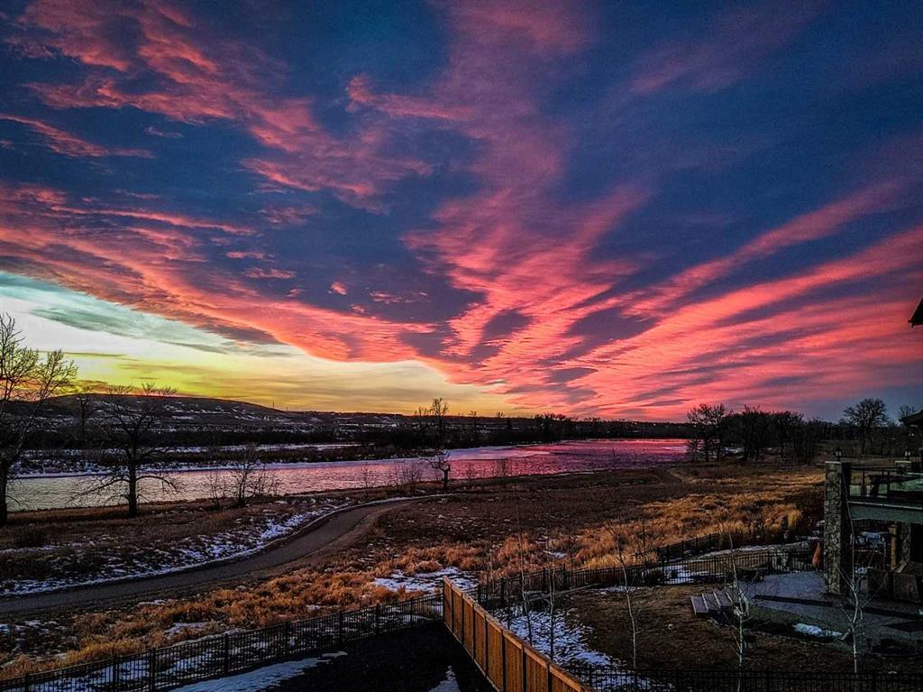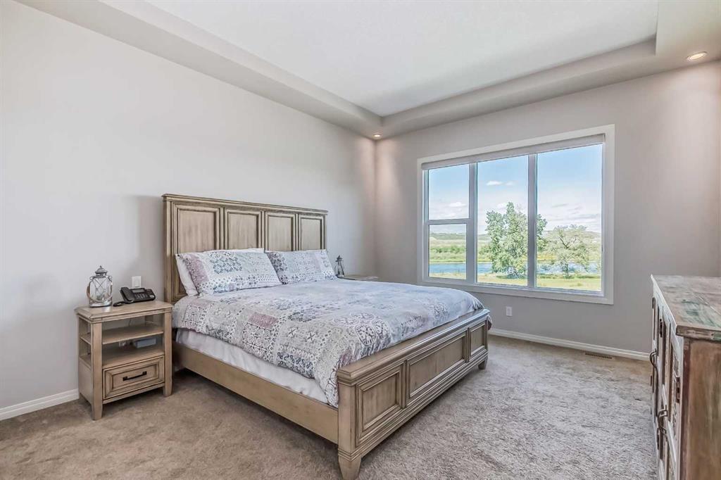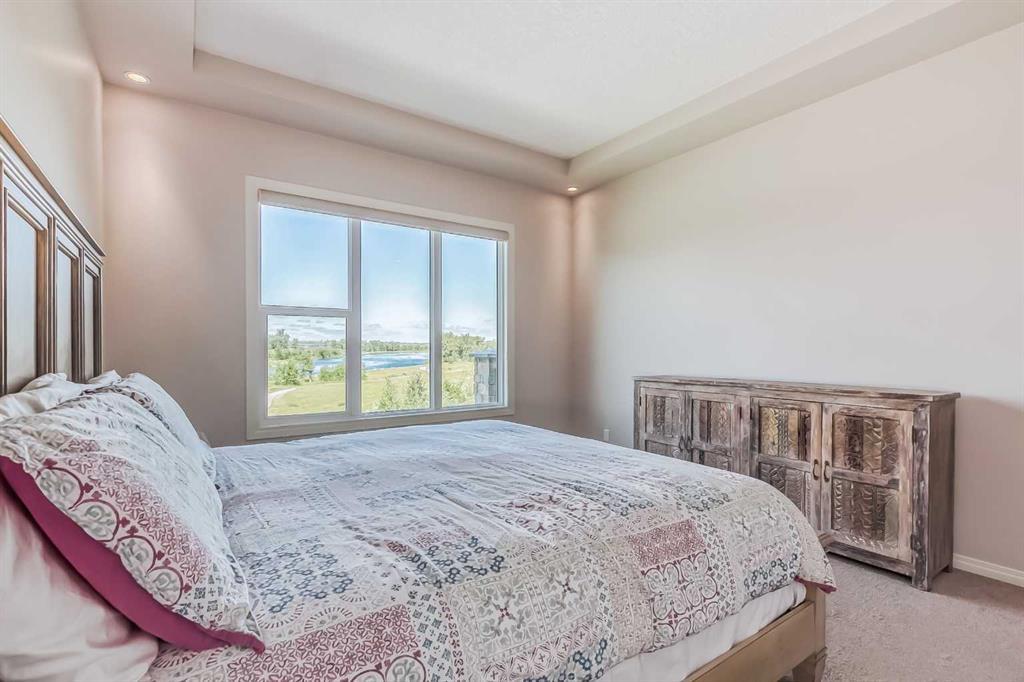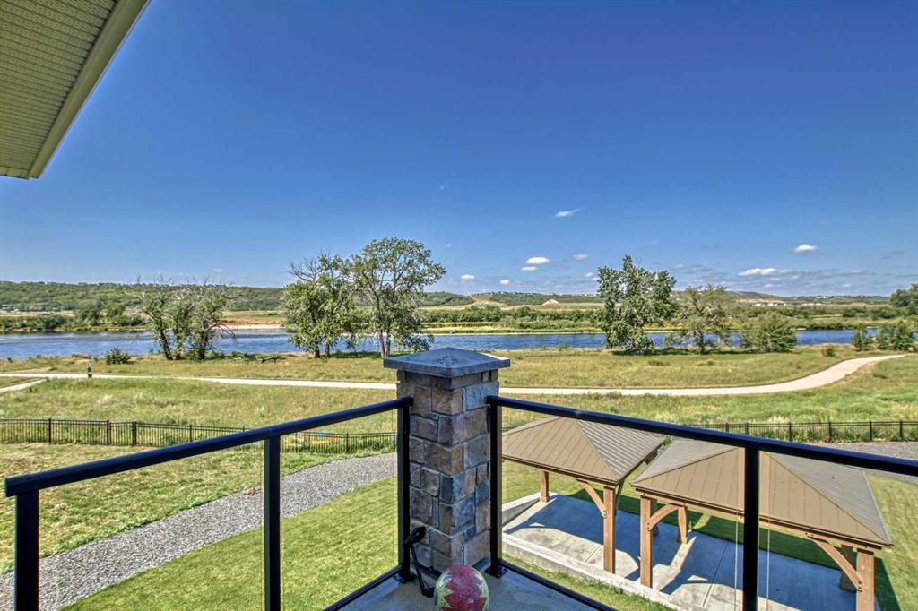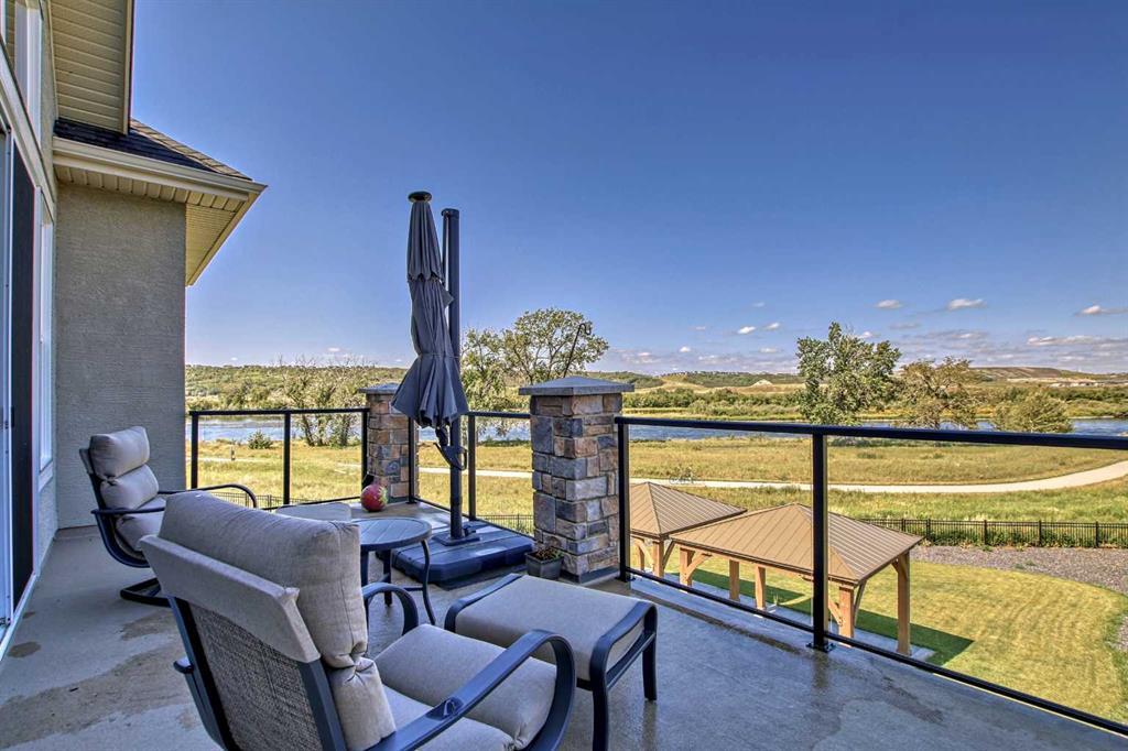 PRICE REDUCTION of $36,000!! **PANORAMIC RIVER VIEWS** SUNSET VIEWS - SEE PHOTOS** This ALBI custom-built Executive style walkout bungalow is located in one of Calgary's most desired neighbourhoods - Riverstone of Cranston. The Home is situated on about a QUARTER (1/4) ACRE LOT and is BACKING onto BOW RIVER showcasing STUNNING VIEW of the RIVER from almost every room in the home!! Get ready to make your mark in this stunning ESTATE BUNGALOW showcasing beautiful curb appeal, ton of UPGRADES, fully finished WALKOUT BASEMENT, plus a great size TRIPLE CAR GARAGE (~29’x22’). The Home comes with office/den room, a chef's dream kitchen with gas cooktop & built-in stainless-steel appliances, walk-thru pantry, large eating nook and dining area, a Living room with a HIGH VAULTED CEILINGS with cozy gas fireplace and a panoramic view of Bow River. The main floor master suite is beautifully designed with heated tile flooring in the gorgeous 5-PC ensuite. The upper deck overlooks the river and river valley, and is ready for your gas BBQ to entertain family and friends. The walkout basement has 9ft ceiling height and is fully finished with large family & games room, 3 large bedrooms including one converted into HOME GYM with mirrors covering the entire wall and upgraded flooring, separate 5pc bath & a huge storage room. The family room in the basement can be used as a movie theater room and it comes with 135" projector screen. The unobstructed views of the Bow River can be enjoyed from this family room and Bedroom(s) in the Basement as well. The Backyard is professionally completed and landscaped. The landscape consists of combination of gravel and lawn. The Concrete Patio(s) under the deck and in the middle of the backyard are great spots for entertaining family and friends, and even for having parties/events. The two (2) beautiful gazebos (12' x 12') situated in the middle of the backyard are included with the sale of the home. Other major upgrades/add-ons in the home include: H igh ceilings and 8ft tall doors throughout the main floor, Large triple/double pane windows and sliding doors to enjoy the Panoramic Views of the river, the home is wired for sound with built in speakers throughout main floor, water softner, Lawn sprinkler system, garburator. New central A/C in 2023. Call for viewing today!! (id:22211)