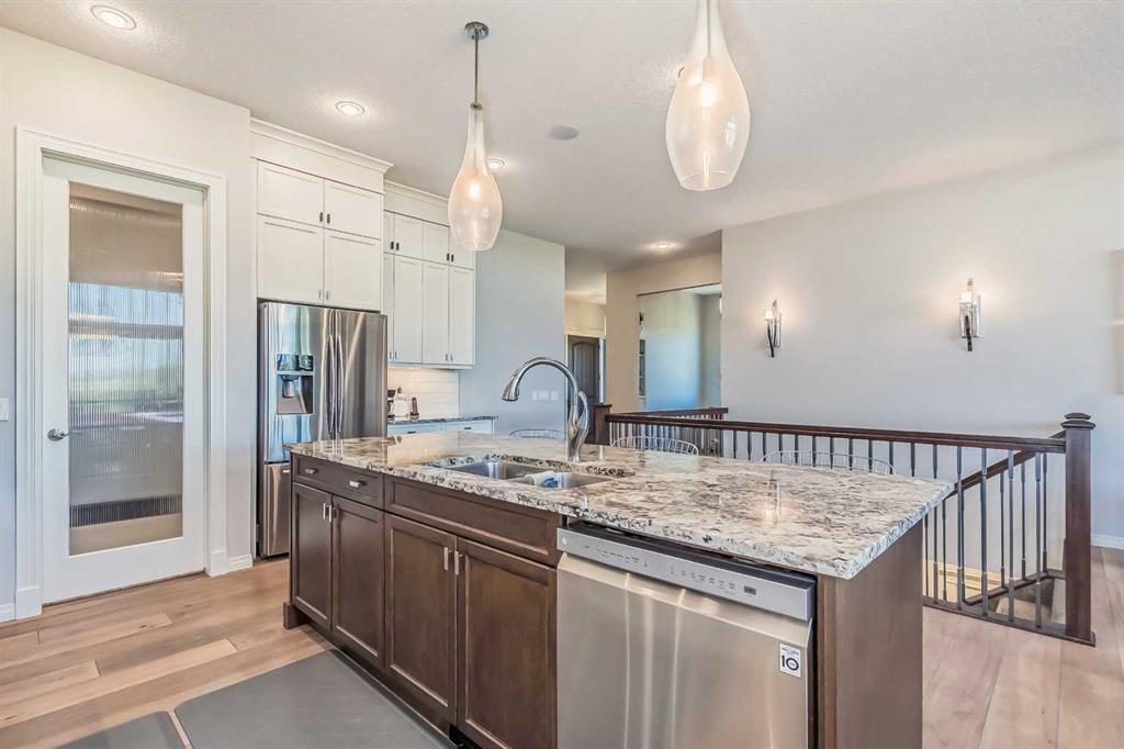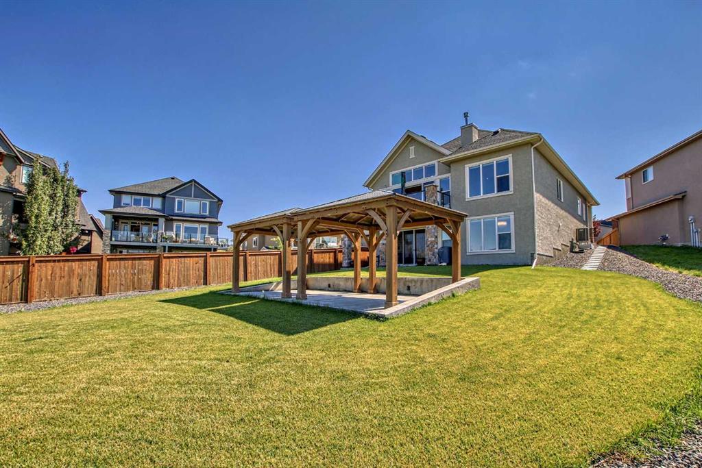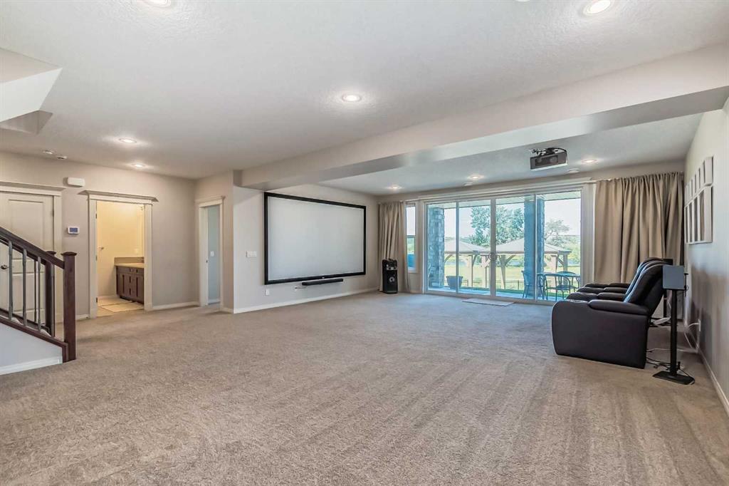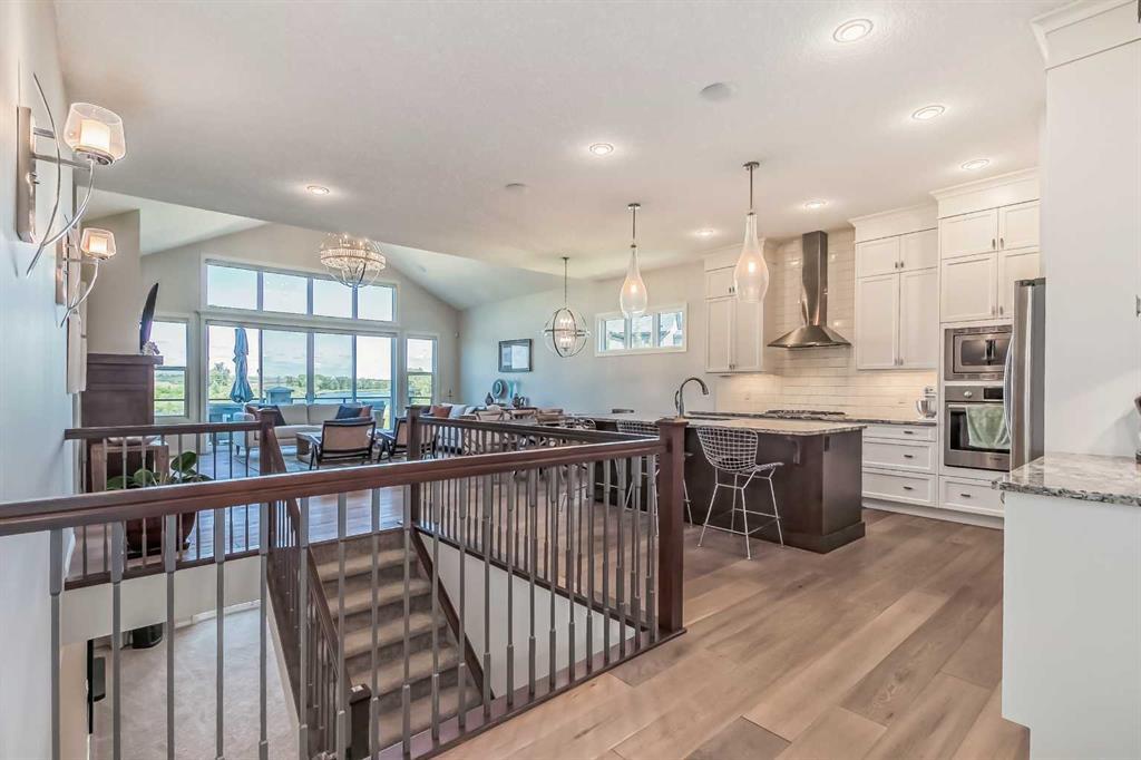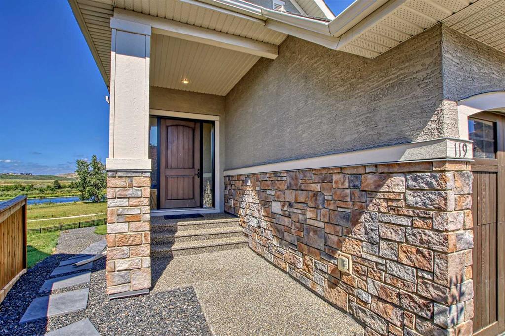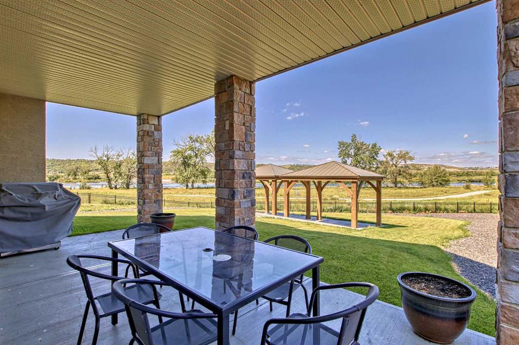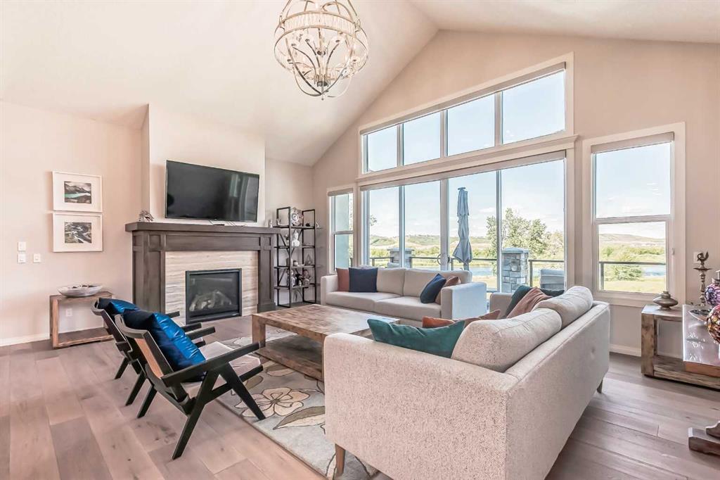 PRICE REDUCTION of $36,000!! **PANORAMIC RIVER VIEWS** SUNSET VIEWS - SEE PHOTOS** This ALBI custom-built Executive style walkout bungalow is located in one of Calgary's most desired neighbourhoods - Riverstone of Cranston. The Home is situated on about a QUARTER (1/4) ACRE LOT and is BACKING onto BOW RIVER showcasing STUNNING VIEW of the RIVER from almost every room in the home!! Get ready to make your mark in this stunning ESTATE BUNGALOW showcasing beautiful curb appeal, ton of UPGRADES, fully finished WALKOUT BASEMENT, plus a great size TRIPLE CAR GARAGE (~29’x22’). The Home comes with office/den room, a chef's dream kitchen with gas cooktop & built-in stainless-steel appliances, walk-thru pantry, large eating nook and dining area, a Living room with a HIGH VAULTED CEILINGS with cozy gas fireplace and a panoramic view of Bow River. The main floor master suite is beautifully designed with heated tile flooring in the gorgeous 5-PC ensuite. The upper deck overlooks the river and river valley, and is ready for your gas BBQ to entertain family and friends. The walkout basement has 9ft ceiling height and is fully finished with large family & games room, 3 large bedrooms including one converted into HOME GYM with mirrors covering the entire wall and upgraded flooring, separate 5pc bath & a huge storage room. The family room in the basement can be used as a movie theater room and it comes with 135" projector screen. The unobstructed views of the Bow River can be enjoyed from this family room and Bedroom(s) in the Basement as well. The Backyard is professionally completed and landscaped. The landscape consists of combination of gravel and lawn. The Concrete Patio(s) under the deck and in the middle of the backyard are great spots for entertaining family and friends, and even for having parties/events. The two (2) beautiful gazebos (12' x 12') situated in the middle of the backyard are included with the sale of the home. Other major upgrades/add-ons in the home include: H igh ceilings and 8ft tall doors throughout the main floor, Large triple/double pane windows and sliding doors to enjoy the Panoramic Views of the river, the home is wired for sound with built in speakers throughout main floor, water softner, Lawn sprinkler system, garburator. New central A/C in 2023. Call for viewing today!! (id:22211)