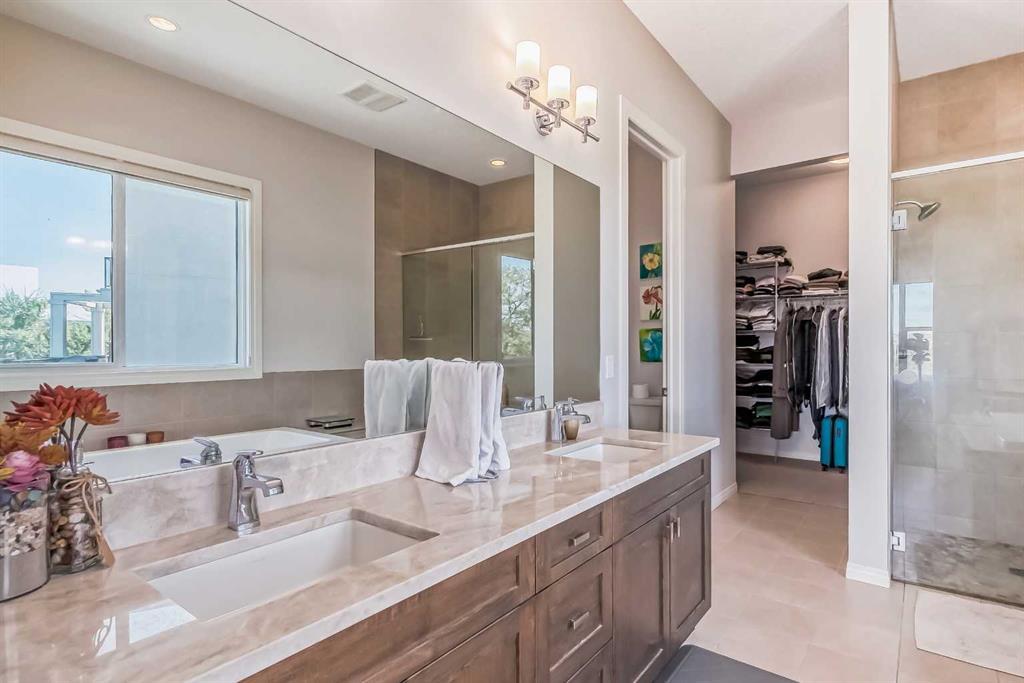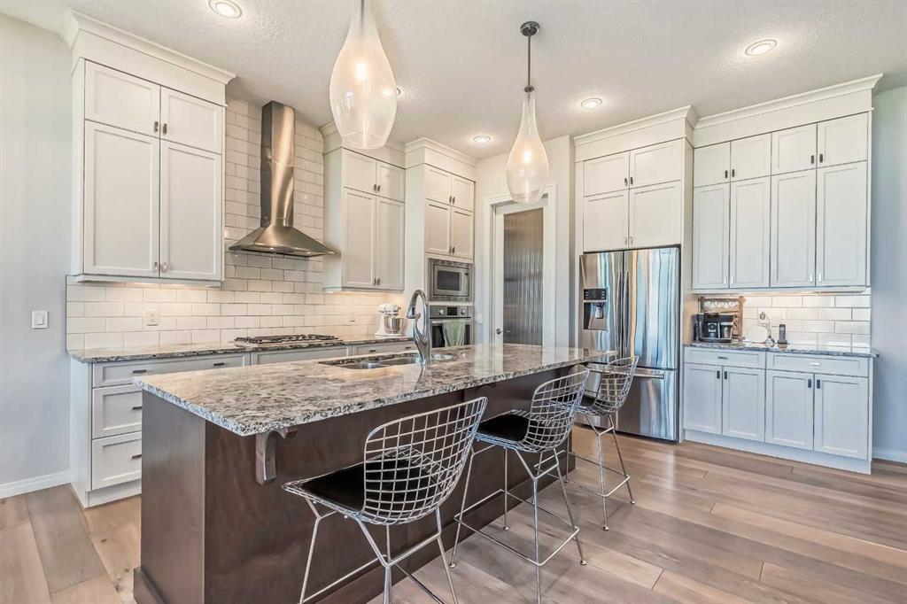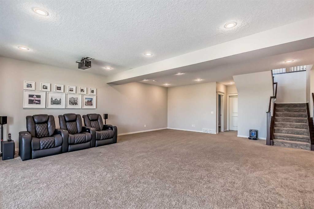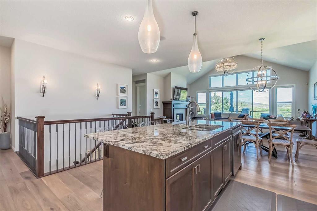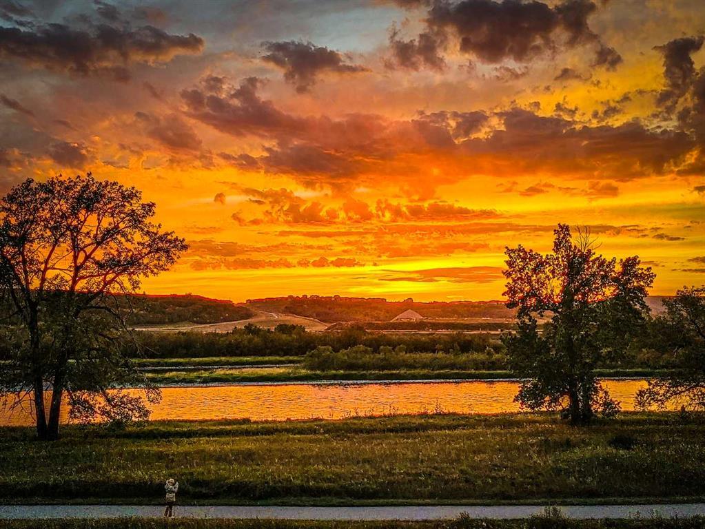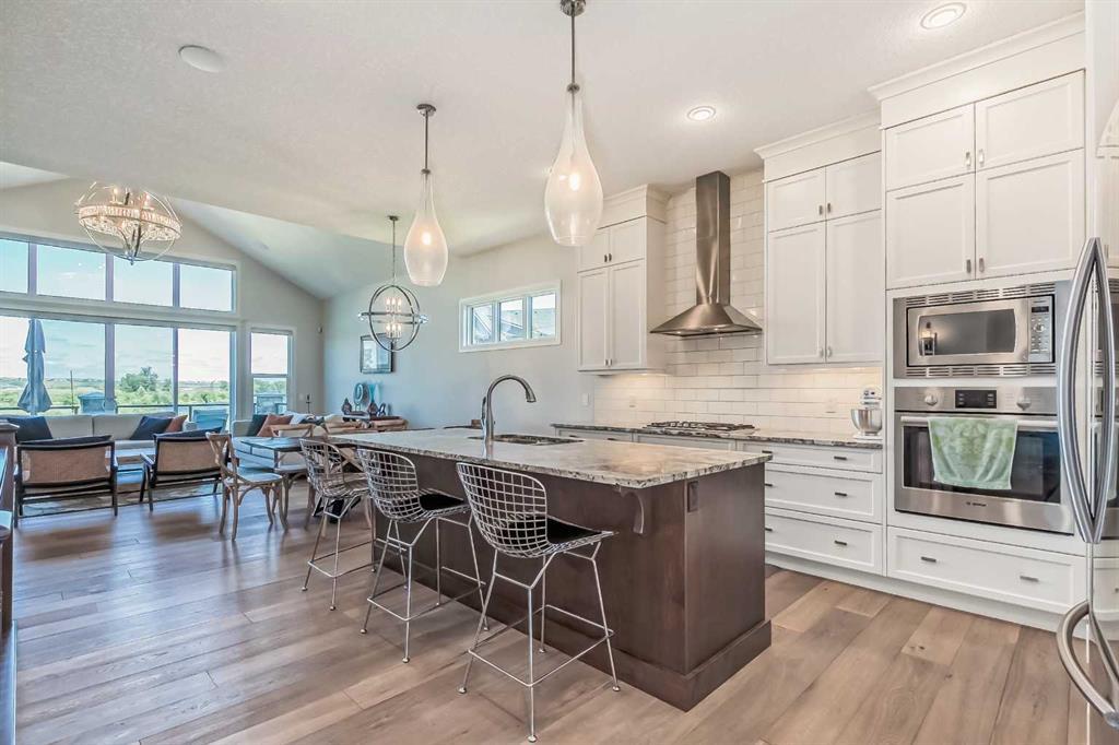 PRICE REDUCTION of $36,000!! **PANORAMIC RIVER VIEWS** SUNSET VIEWS - SEE PHOTOS** This ALBI custom-built Executive style walkout bungalow is located in one of Calgary's most desired neighbourhoods - Riverstone of Cranston. The Home is situated on about a QUARTER (1/4) ACRE LOT and is BACKING onto BOW RIVER showcasing STUNNING VIEW of the RIVER from almost every room in the home!! Get ready to make your mark in this stunning ESTATE BUNGALOW showcasing beautiful curb appeal, ton of UPGRADES, fully finished WALKOUT BASEMENT, plus a great size TRIPLE CAR GARAGE (~29’x22’). The Home comes with office/den room, a chef's dream kitchen with gas cooktop & built-in stainless-steel appliances, walk-thru pantry, large eating nook and dining area, a Living room with a HIGH VAULTED CEILINGS with cozy gas fireplace and a panoramic view of Bow River. The main floor master suite is beautifully designed with heated tile flooring in the gorgeous 5-PC ensuite. The upper deck overlooks the river and river valley, and is ready for your gas BBQ to entertain family and friends. The walkout basement has 9ft ceiling height and is fully finished with large family & games room, 3 large bedrooms including one converted into HOME GYM with mirrors covering the entire wall and upgraded flooring, separate 5pc bath & a huge storage room. The family room in the basement can be used as a movie theater room and it comes with 135" projector screen. The unobstructed views of the Bow River can be enjoyed from this family room and Bedroom(s) in the Basement as well. The Backyard is professionally completed and landscaped. The landscape consists of combination of gravel and lawn. The Concrete Patio(s) under the deck and in the middle of the backyard are great spots for entertaining family and friends, and even for having parties/events. The two (2) beautiful gazebos (12' x 12') situated in the middle of the backyard are included with the sale of the home. Other major upgrades/add-ons in the home include: H igh ceilings and 8ft tall doors throughout the main floor, Large triple/double pane windows and sliding doors to enjoy the Panoramic Views of the river, the home is wired for sound with built in speakers throughout main floor, water softner, Lawn sprinkler system, garburator. New central A/C in 2023. Call for viewing today!! (id:22211)