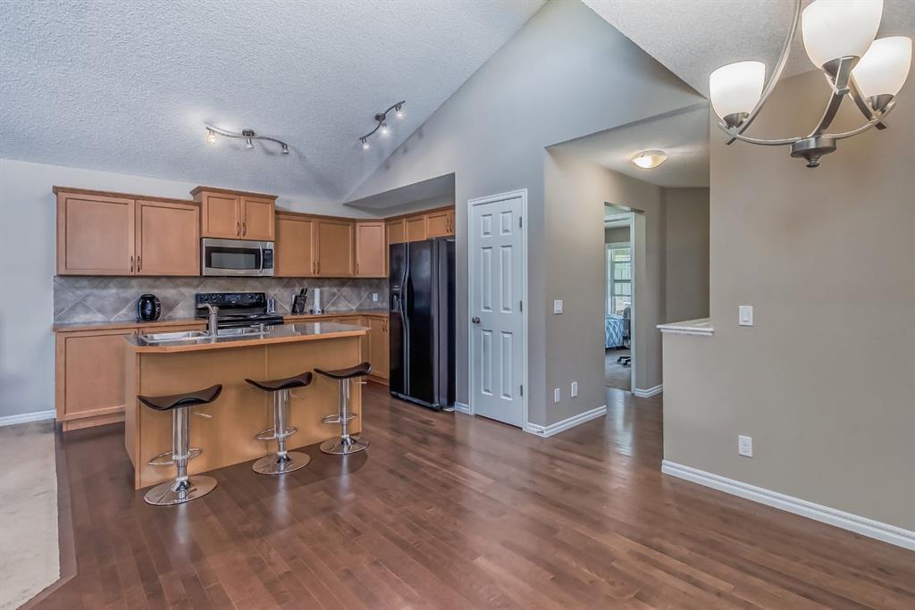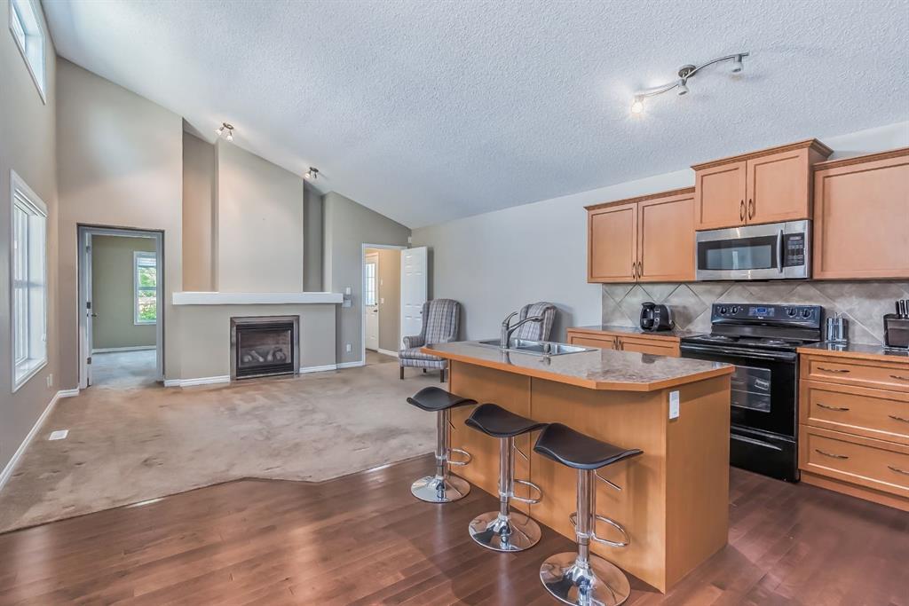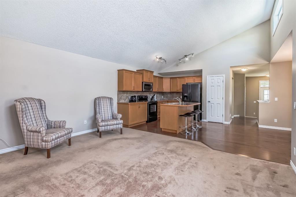 Welcome home! This Rare Bungalow "The Plateau", built by Beattie Homes offers a unique floor plan that allows future development to cater to how you see fit! Enter past the covered veranda w/ stone-accented pillars into a tiled foyer. The open concept living area features vaulted ceilings, gas fireplace w/ functional & decorative storage solutions above & a kitchen w/ raised panel cabinetry, full height tile backsplash, black appliances including a cooktop stove & over the range microwave, corner pantry & island with eating ledge. An abundance of Windows that allow natural light to flow throughout! Access to the deck is found off the breakfast nook. The main floor has widened doorways throughout making it easily accessible for moving, wheelchairs, strollers, & walkers. The master bedroom features a walk-in closet - 4 pc ensuite - extended nook which could be used as a nursery/office. The bright second bedroom on the main is perfect for privacy or be used as a den or home office. The Undeveloped lower level has the potential to host to a full bath, 2 bedrooms, storage room, laundry and spacious rec room and could easily accommodate any creative designs. Fully landscaped with a private back yard with a single garage completes this perfect home in Skyview! fd (id:22211)