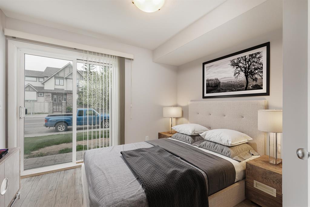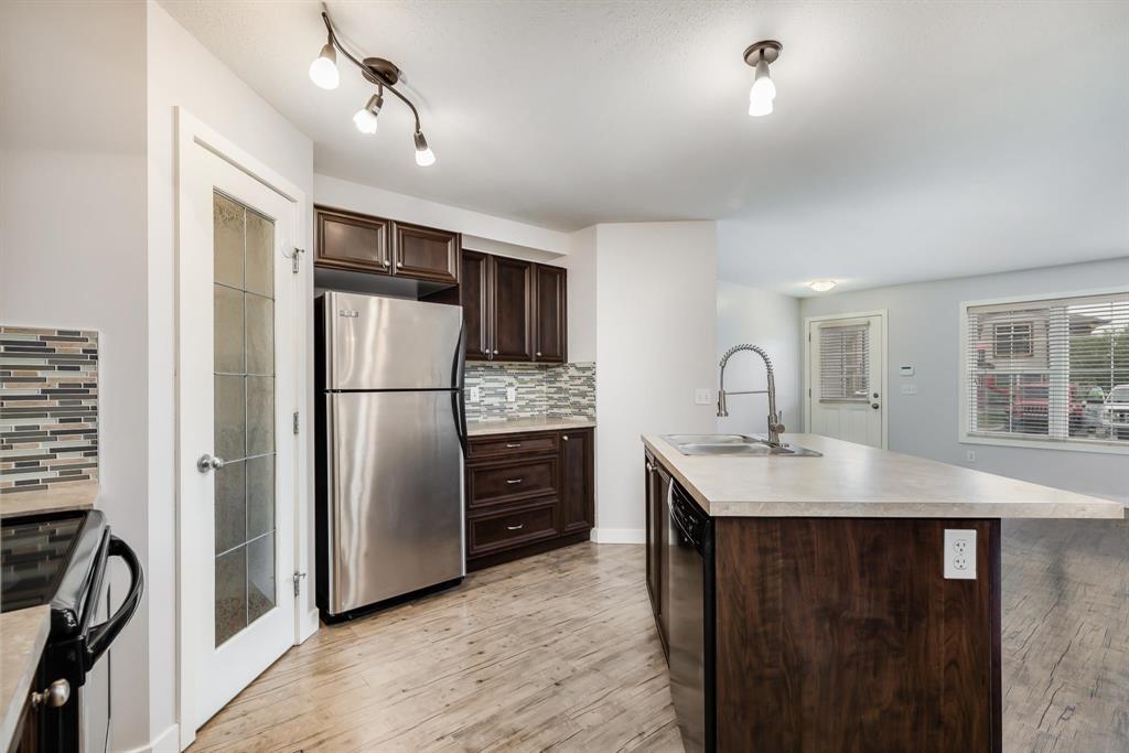This quaint "Panatella Landing" stacked townhouse complex is located in a very desirable family community. The main floor bungalow-style unit is beautifully maintained with a front porch that welcomes you into an open concept floor plan, featuring newer laminate flooring and is freshly painted through-out with warm neutral colors. The spacious Living room and Dining room make it great for entertaining! The Kitchen features maple cabinets with plenty of cupboard space along with new countertops including a new sink and faucet. Also featuring a large walk-in pantry, a center island and stainless-steel appliances with a newer dishwasher. The decorative archway leads to 2 private, bright Bedrooms. The Primary bedroom opens onto a sunny South-facing patio for those warm summer nights. A full 4pc Bathroom, extra in-unit storage and a handy separate laundry room complete this charming home. Parking stall 130 is at your doorstep with 2 parks just steps from the front and rear of this unit. Close to all amenities such as restaurant, shopping, Schools, transportation and much more...Come check it out! (id:22211)