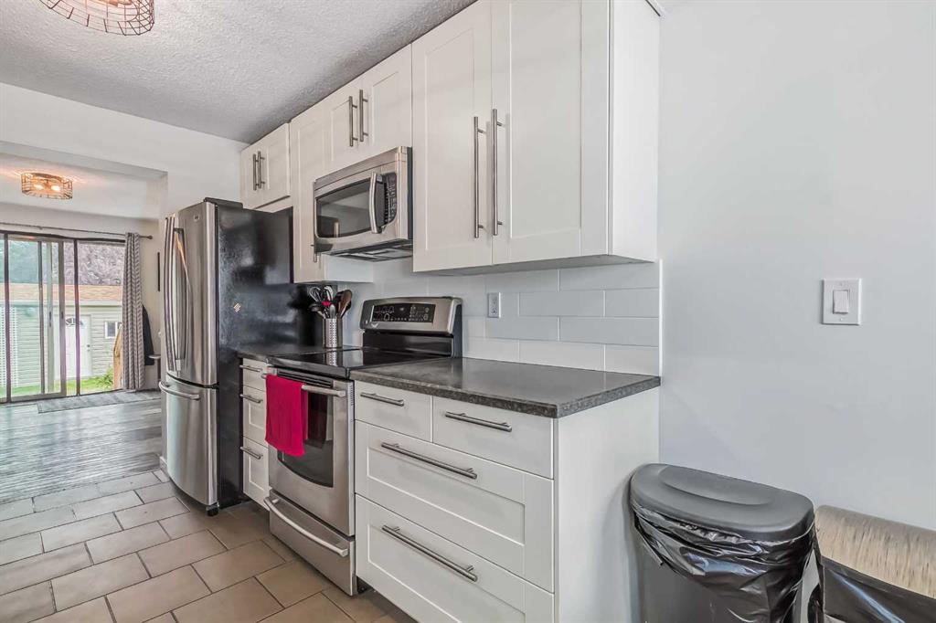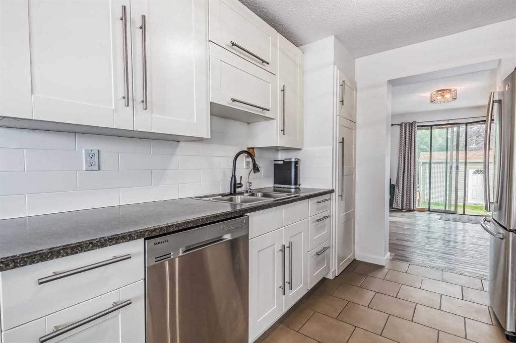 Here's a smart start, an updated 4 bedroom, 2 storey house in the family friendly neighbourhood of Woodbine with central air. Tile throughout entrance & kitchen then easy care Vinyl plank flows throughout the rest of the house. Updated kitchen with soft close white drawers and cabinets, stainless appliances and large expanses of counters. Bayed out dining area off the kitchen. Large living & dining room opens up to the back yard complete with new deck and large shed for your bikes and lawn equipment. Upstairs are 3 good sized bedrooms and an updated 4 pc bathroom with deep soaker tub. Basement has a small family room and a large bedroom/den (window does not meet egress). Mentionable items include; new roof shingles 2017, rear deck 2022, central air conditioner, NO poly B plumbing, electrical is all copper, mid efficient furnace and newer Hot water tank. (id:22211)