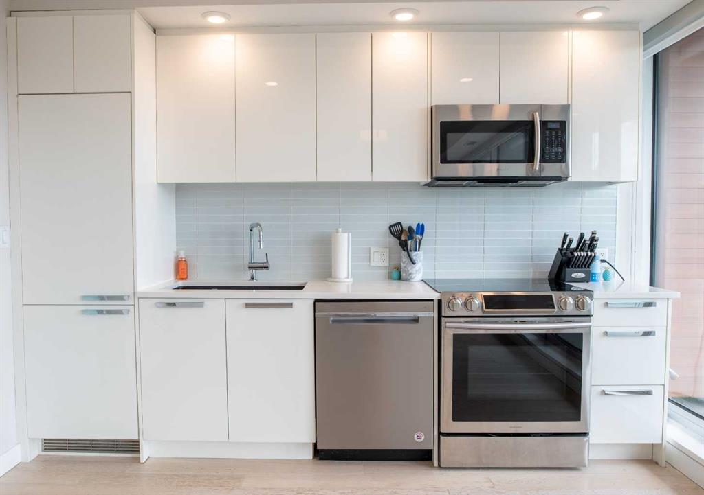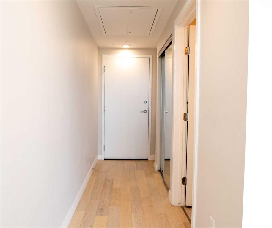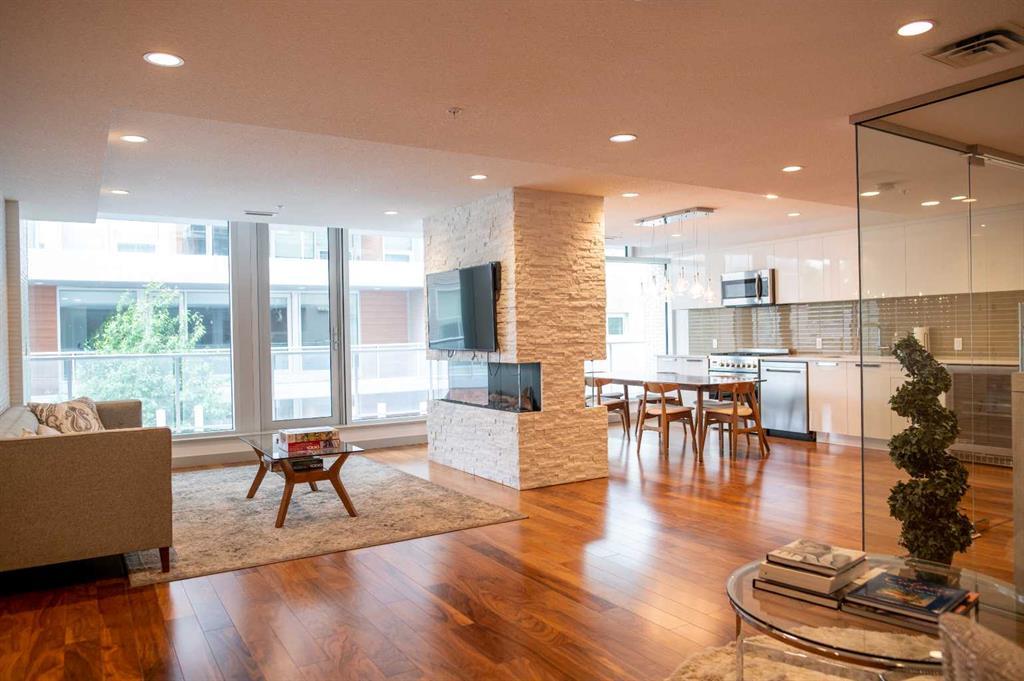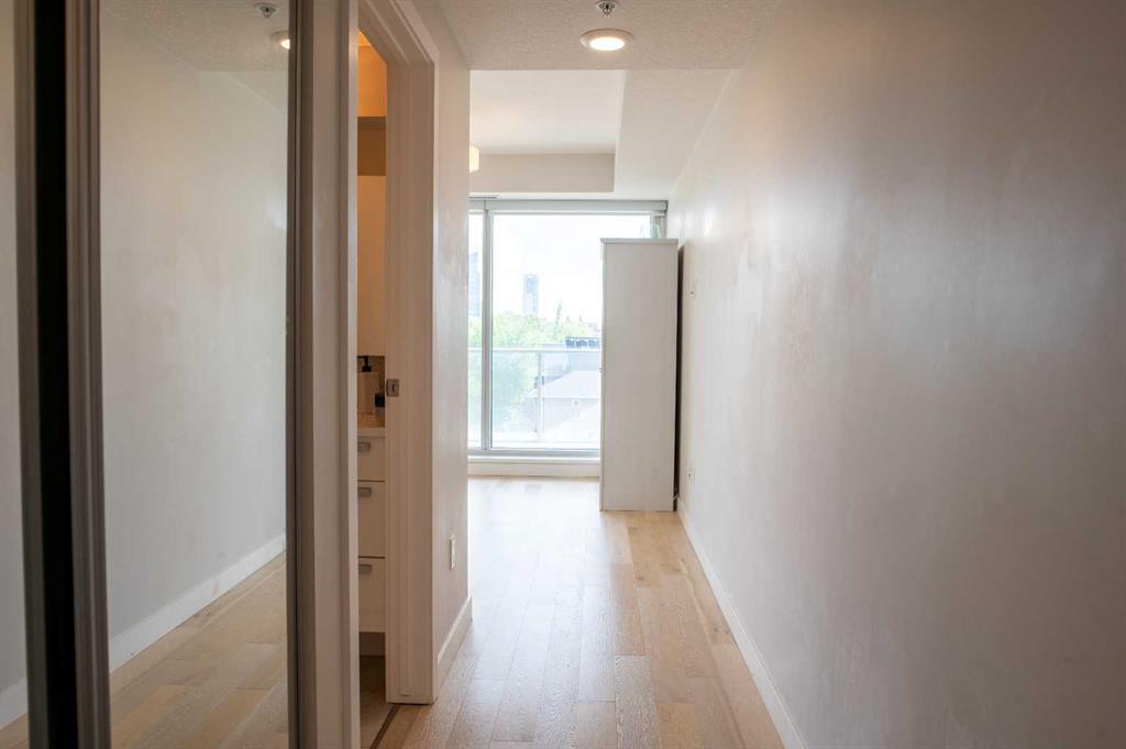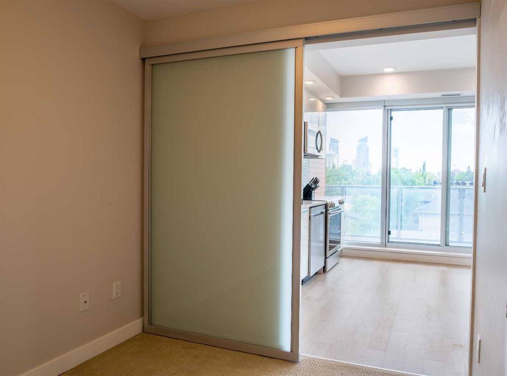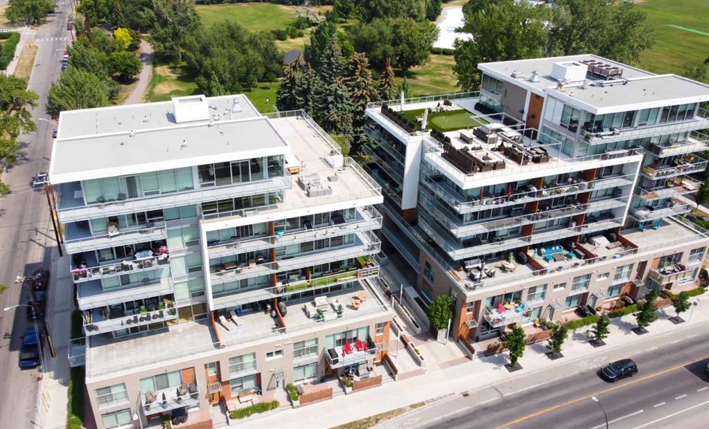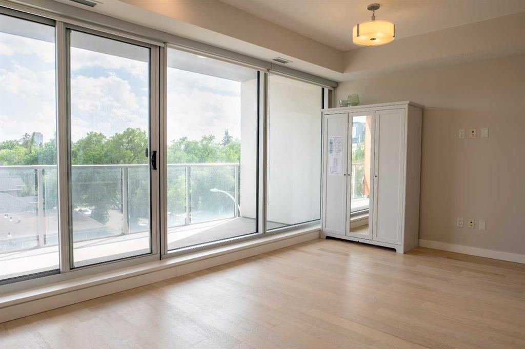 South Facing Unit, Views of Downtown, Backs onto Riley Park, Walking Distance to Kensington & Built in 2017! It doesn't get much better than this! Arguably one of the best locations in Calgary, this Hillhurst apartment is within walking distance to trendy restaurants, close to SAIT, in the heart of downtown Calgary & provides a lifestyle that can't be beat. With Riley Park as your backyard, go with the flow & make everyday different by enjoying the various amounts of amenities outside your doorstep. This 4th floor unit is conveniently located right across from the elevators, enabling quick an easy access in & out of the building. The unit itself is pretty much brand new & features quality upgrades that creates a premium feel. These upgrades include: Quartz countertops, Luxury vinyl flooring, European style built-in Refrigerator & Freezer, Air conditioning, Fully tiled shower, Tons of recessed lighting & much more! The galley kitchen is positioned along the back wall next to the primary bedroom; Both spaces provide ample storage & can efficiently be used. While this well utilized layout with 9 Ft ceilings (in the living room) is something to be admired, the most extravagant element to this apartment is the full wall of windows that are facing south, focused towards the DT Calgary skyline! This south facing large balcony (6'6" x 20'10") is equipped with a gas line, so you can BBQ & soak up the sun with a view! There is an end of row titled parking stall, an assigned storage locker & underground bike storage that follows with the unit. The West EZRA building has a gym located on the 2nd floor, while the East EZRA building has a Lounge/Party room that is included with your condo fees. Come take a look to appreciate this awesome unit! (id:22211)