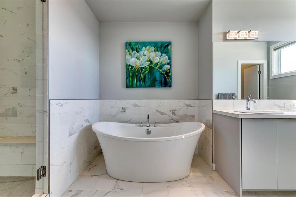 RIDGE LOT WITH NO BACK NEIGHBOURS! SPECTACULAR SPRAWLING VIEWS ACROSS TO THE BOW RIVER RIGHT OUT YOUR BACK DOOR! 2,433sqft ON TOP 2 FLOORS! BONUS ROOM! This stunning 2018 2-storey home is located in the fantastic neighbourhood of Walden, surrounded by nature and tranquil parks! The attached double garage features high ceilings & loads of storage solutions. Inside this special home, the main floor features a HUGE KITCHEN with an oversized (extended) island with quartz countertops, stainless steel appliances, tub sink, walk-in pantry, in-wall oven, and breakfast bar. The bright living room features vaulted 14' ceilings and phenomenal views o the open wilderness leading to the Bow River! Off the kitchen, you will find a dining room and office nook, as well as access to the back deck. A half bathroom & access to the garage complete the main floor. The second floor features a bonus room, 3 bedrooms and 2 full bathrooms. The primary bedroom is oversized and features 2 walk-in closets and a massive ensuite with beautiful freestanding soaker tub, large & beautifully tiled shower with seat, and dual sinks. The laundry room on the top floor features a rough-in for a sink and tile floors. The other full bathroom upstairs features a tiled tub/shower combo and stylish backsplash. The other 2 bedrooms upstairs are large! The fully fenced backyard features a firepit area and gate out the back of the property to what will one day be a formal walking path. Additional features: air conditioning, east-facing backyard, aggregate driveway, 9' ceilings on all 3 floors, basement bathroom rough-in. Book your showing today! (id:22211)