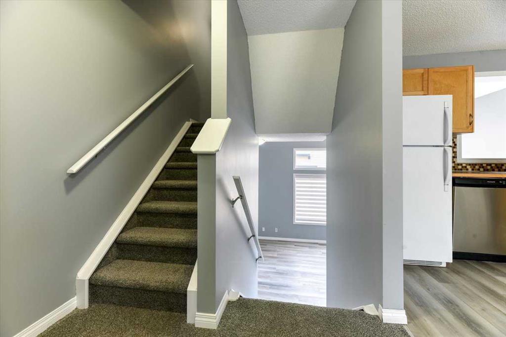 Don't miss this terrific, fully developed 4-level split townhome in Evergreen with a single attached garage. Ideally located close to Calgary's major traffic routes, public transportation, and shopping, there are no disappointments here. The property's interior features new colors, with brand-new paint, carpet, window coverings, and vinyl plank flooring. The floorplan boasts high open ceilings in the living area and a generous kitchen with a large dining area. On the upper level, you have two good-sized bedrooms each featuring full ensuite bathrooms. The basement is also fully finished and can be used as an office, a recreation/theatre area, or even a 3rd bedroom. This is an affordable opportunity to own a lovely home in a great neighborhood. Please note that this property is a 4-level split, ( not including the fully finished basement). In calculating the square footage for the interior total I have included the Entrance level, Main floor and 2nd Level as the Main Living area, and have included the bedroom Level as the Upper Level. Please refer to the supplements with the RMS specifications for reference. Thank you. (id:22211)