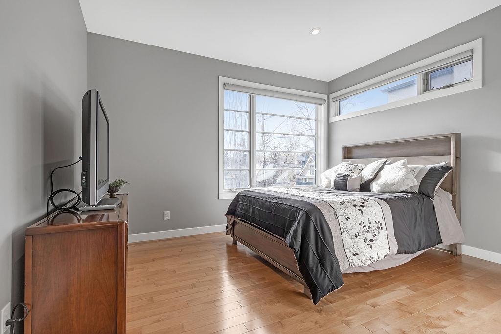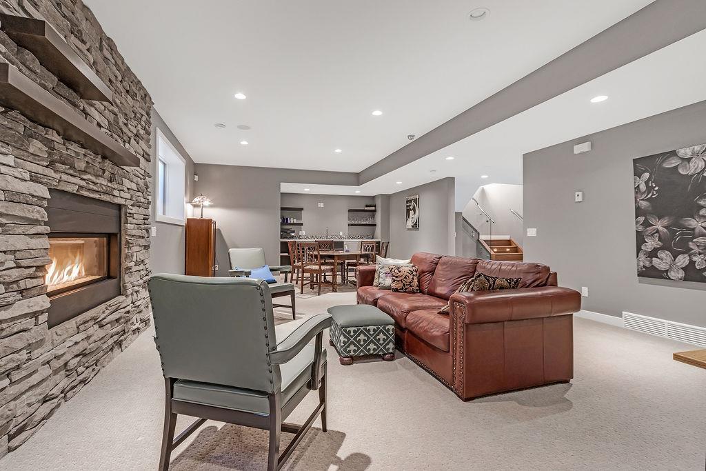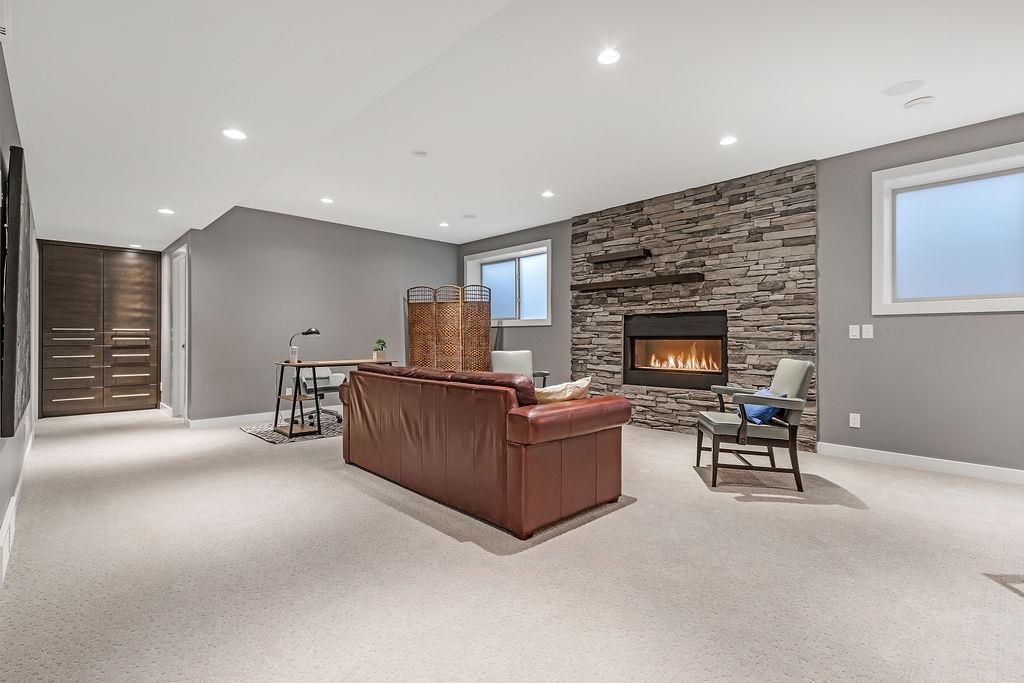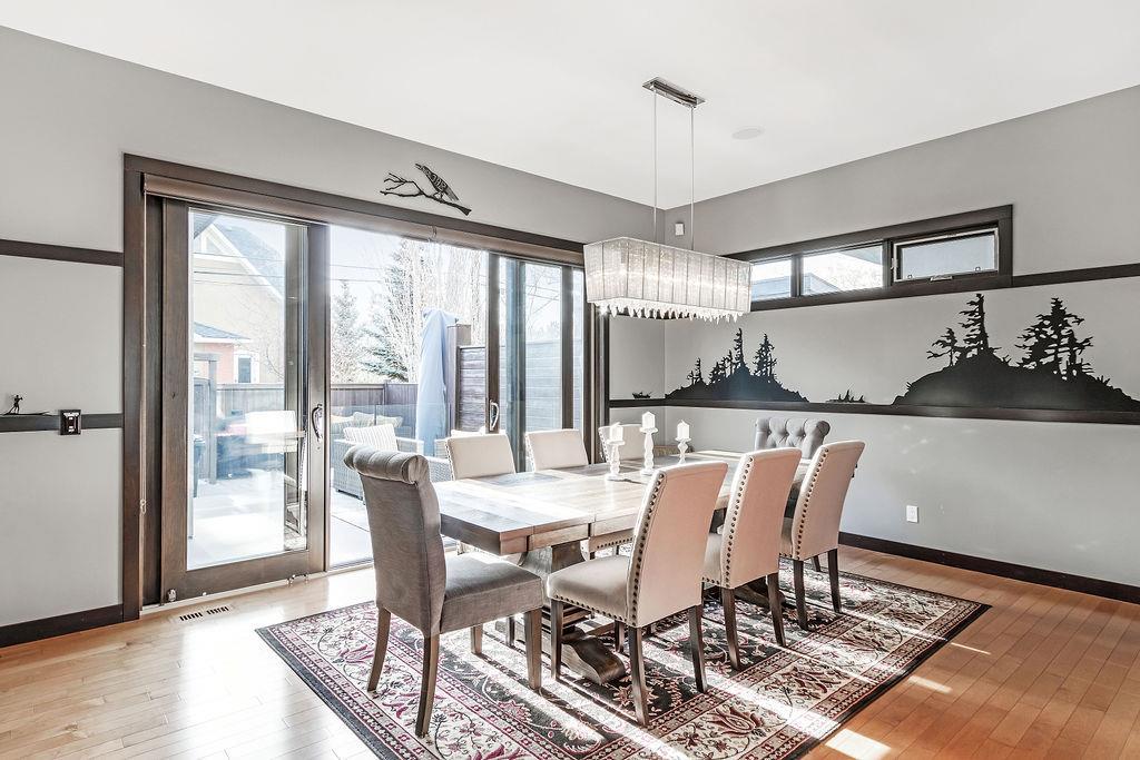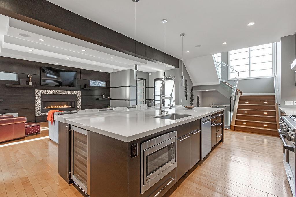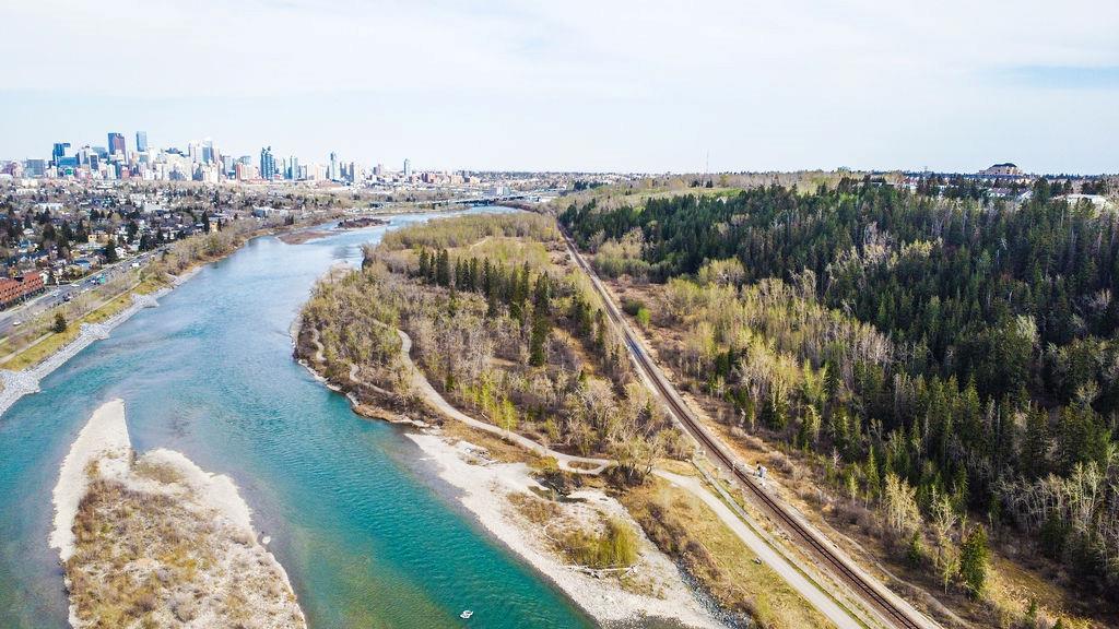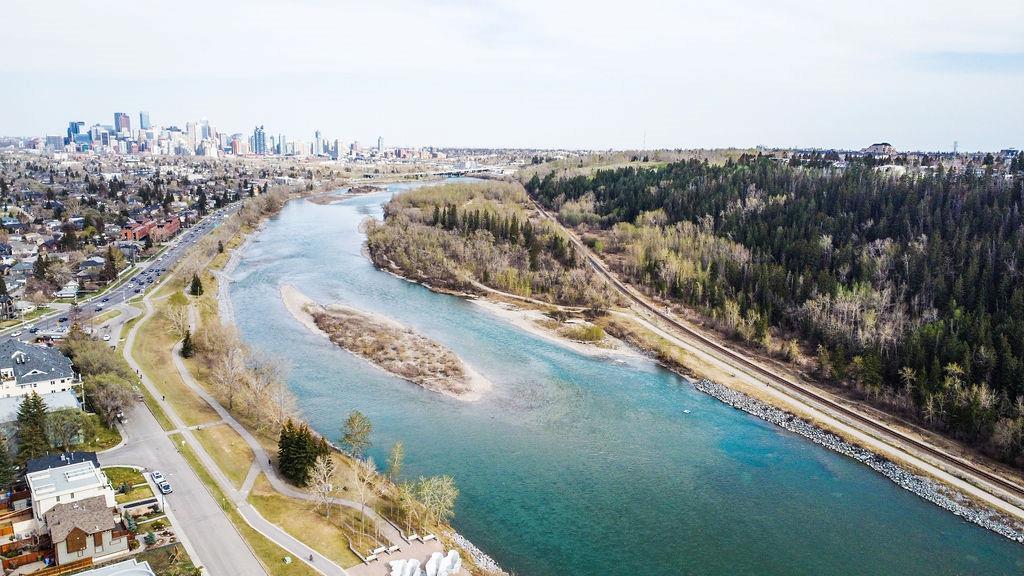 Live by the river! Location location location! Nestled in the quiet yet central Golden Triangle of Parkdale, this custom built masterpiece is just steps to the Bow River in a no-flood zone. The low-maintenance landscaping is perfect for the busy family that wants to enjoy the river atmosphere or even head out of town instead of mowing. The curb appeal of this custom home is only rivalled by the exquisite interior design. A Lindner Brothers built home featuring 10' flat ceilings that set the stage for an impressive open concept main floor with Chef's kitchen, entertainer’s dream island, large dining areas and great room with a stunning linear gas fireplace. Bright, double width patio doors lead to a sunny west concrete patio area with 2 gas outlets. Upstairs has an amazing master with vaulted ceilings, spa like ensuite with heated floors & walk in closet. Two more ample sized bedrooms, laundry room with sink, 3-piece bath with heated floors, balcony and multiple skylights complete this beautiful level. The lower level has a wide-open games/family room with gas fireplace, wet bar with built-ins, a spacious bedroom, 3 piece bath & incredible Theatre Room that is sound insulated with ambient lighting and acoustic panels. All floors have been insulated for sound separation. Built-in storage is abundant on all 3 levels. There are built-in speakers throughout the home & back patio, 2 A/C units, 2 furnaces & in-floor heat in the basement. With miles of riverfront grassy parkland just steps away, this attractive yet low maintenance property lets you focus on your passions. Just minutes to downtown, Market Mall, U of C, Foothills & Children's Hospitals, shopping & transit. (id:22211)