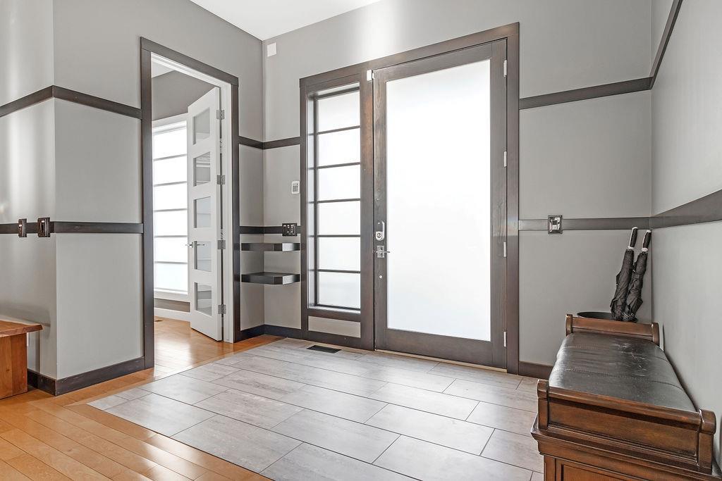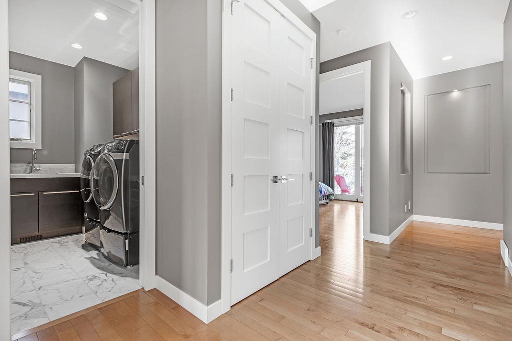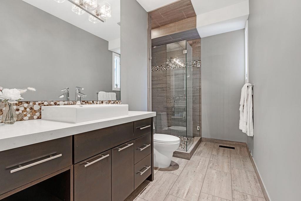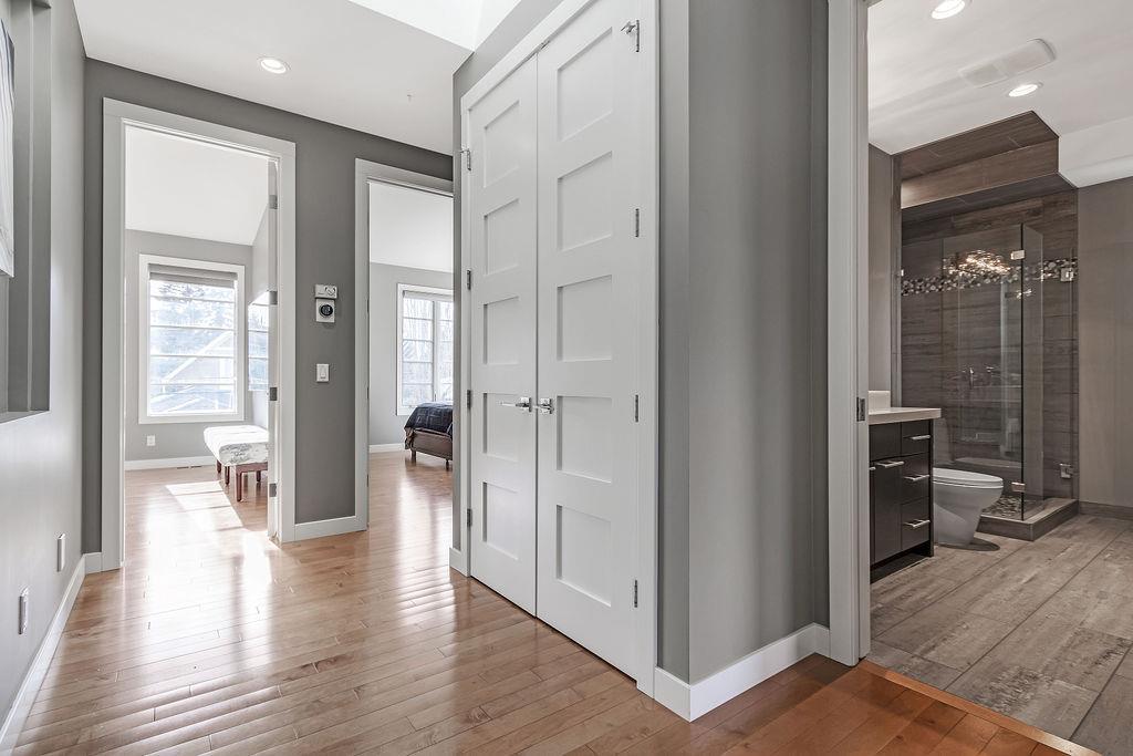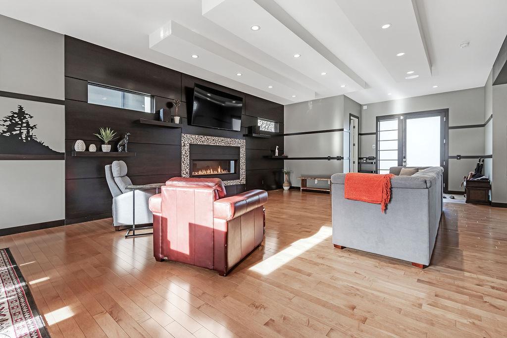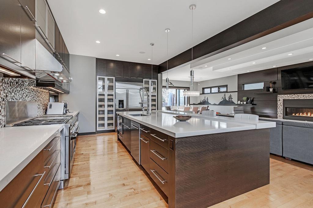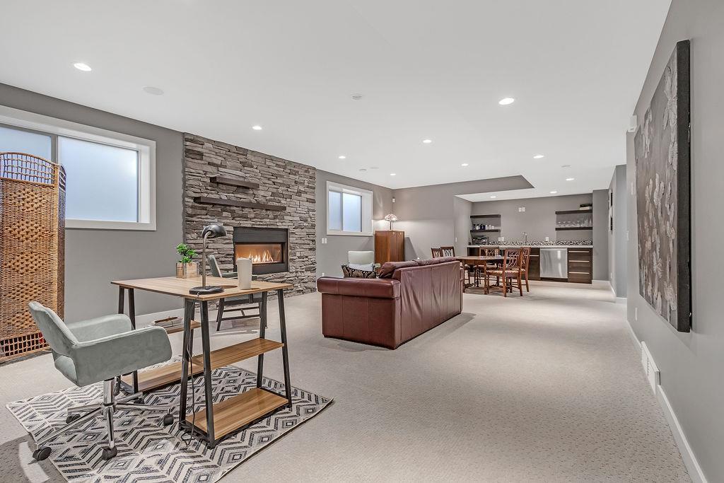 Live by the river! Location location location! Nestled in the quiet yet central Golden Triangle of Parkdale, this custom built masterpiece is just steps to the Bow River in a no-flood zone. The low-maintenance landscaping is perfect for the busy family that wants to enjoy the river atmosphere or even head out of town instead of mowing. The curb appeal of this custom home is only rivalled by the exquisite interior design. A Lindner Brothers built home featuring 10' flat ceilings that set the stage for an impressive open concept main floor with Chef's kitchen, entertainer’s dream island, large dining areas and great room with a stunning linear gas fireplace. Bright, double width patio doors lead to a sunny west concrete patio area with 2 gas outlets. Upstairs has an amazing master with vaulted ceilings, spa like ensuite with heated floors & walk in closet. Two more ample sized bedrooms, laundry room with sink, 3-piece bath with heated floors, balcony and multiple skylights complete this beautiful level. The lower level has a wide-open games/family room with gas fireplace, wet bar with built-ins, a spacious bedroom, 3 piece bath & incredible Theatre Room that is sound insulated with ambient lighting and acoustic panels. All floors have been insulated for sound separation. Built-in storage is abundant on all 3 levels. There are built-in speakers throughout the home & back patio, 2 A/C units, 2 furnaces & in-floor heat in the basement. With miles of riverfront grassy parkland just steps away, this attractive yet low maintenance property lets you focus on your passions. Just minutes to downtown, Market Mall, U of C, Foothills & Children's Hospitals, shopping & transit. (id:22211)