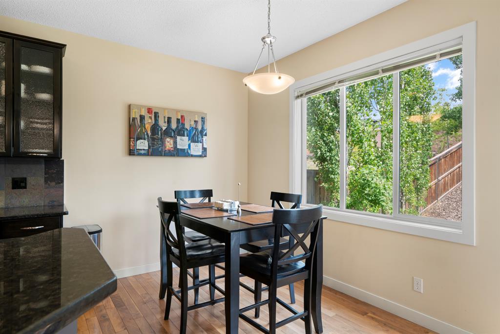 This open floor plan in this 2241 sq ft executive two storey residence located in the heart of prestigious Aspen Woods! Nestled on a quiet crescent just steps from Aspen Landing! This home offers 9’ ceilings on the main with desirable walnut-stained hardwood flooring and 3 very spacious bedrooms. The chef inspired gourmet kitchen features ebony stained raised panel, extra tall solid maple cabinets, a large island, granite counters, slate backsplash, stainless appliances including an upgraded gas range, walk-thru pantry and a phone desk. The oversized dining area overlooks the private rear yard. Adjacent is a family sized great room with cozy gas fireplace. The flex room can be used for a multitude of purposes from a home office, music room, formal dining and many other uses. The upper level presents an attractive bonus room, a primary bedroom complete with a relaxing 5-piece ensuite including double sinks, a relaxing corner deep soaker tub and a separate 4 foot by 3 foot shower, a walk-in closet, plus two additional bedrooms, a full bathroom and a convenient laundry room. There are upgraded custom California closets in all bedroom walk-in closets, the kitchen pantry and the mud room. AirVac Red Line central vac (made in Germany). The private professionally landscaped and fully fenced rear yard is 60 feet deep, features some of the most mature trees in the area and has no neighbours backing onto you. Your spacious deck has a gas BBQ hook-up, a sprinkler system is great for ease of maintenance giving you more time to enjoy the summer sunshine. The unspoiled lower level awaits your creative finish details and is perfectly laid out to accommodate a spacious 4th bedroom, full bathroom and a massive recreation/games room. Need exceptional space for your cars, motorcycles and toys, then you will truly enjoy the spacious, fully insulated and drywalled double attached garage with a concrete driveway easily accommodating a further two additional vehicles. This incredible loc ation is a short distance from top-tier schools including Webber Academy, Calgary Academy, Rundle College, Ernest Manning, Waldorf School, Guardian Angel K-6 school, Step by Step Montessori, and others. It is also steps from parks, playgrounds, Aspen Landing, shopping, restaurants, Aspen LRT, Westside recreation centre, major roadways and much more. (id:22211)